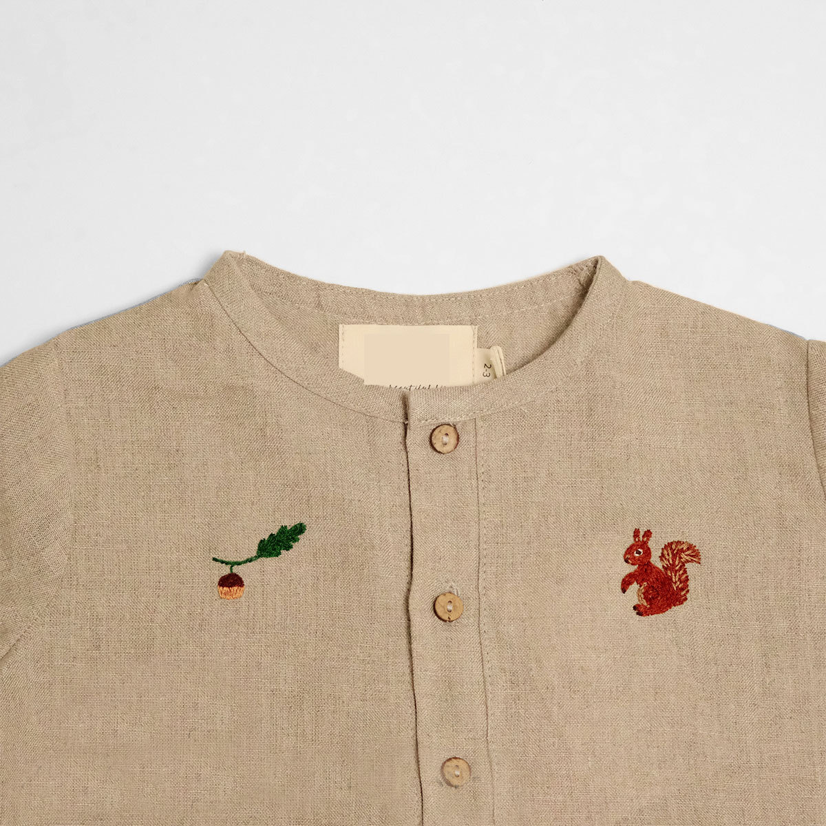 어린이용 면과 린넨 소재의 부드러운 반팔 상의, 피부 친화적인 2026년 북유럽 스타일 봄 여름 남녀 아기 동물 자수 티셔츠
