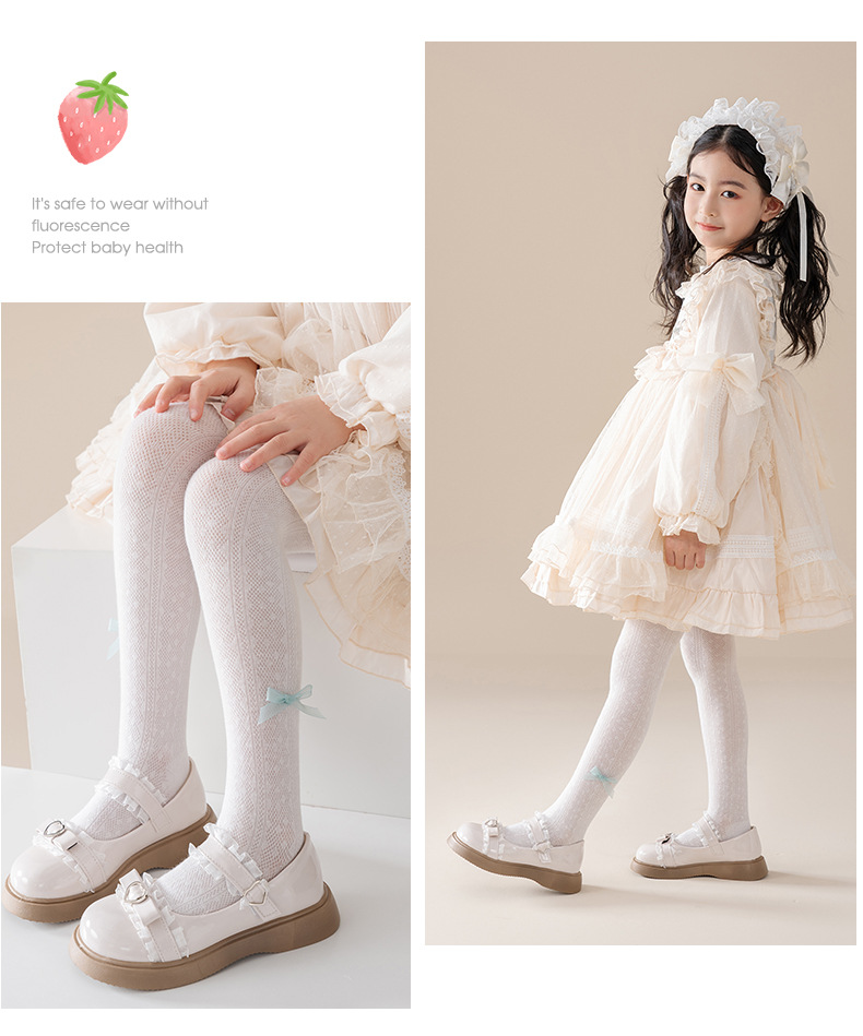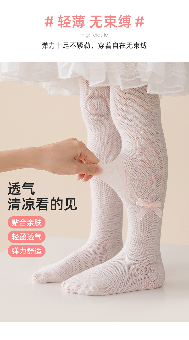 여름 새로운 얇은 중공 메쉬 어린이 양말 소녀 팬티 스타킹 외부 착용 모기 방지 양말 보우 레깅스