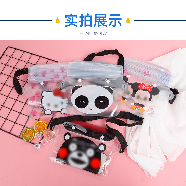 방수 휴대폰 가방, 크로스백형 수영 방수 허리 가방, PVC 래프팅 야외용 터치스크린 만화 패턴스토어 가기