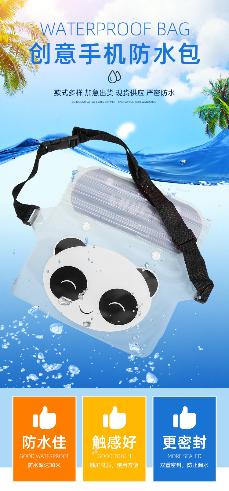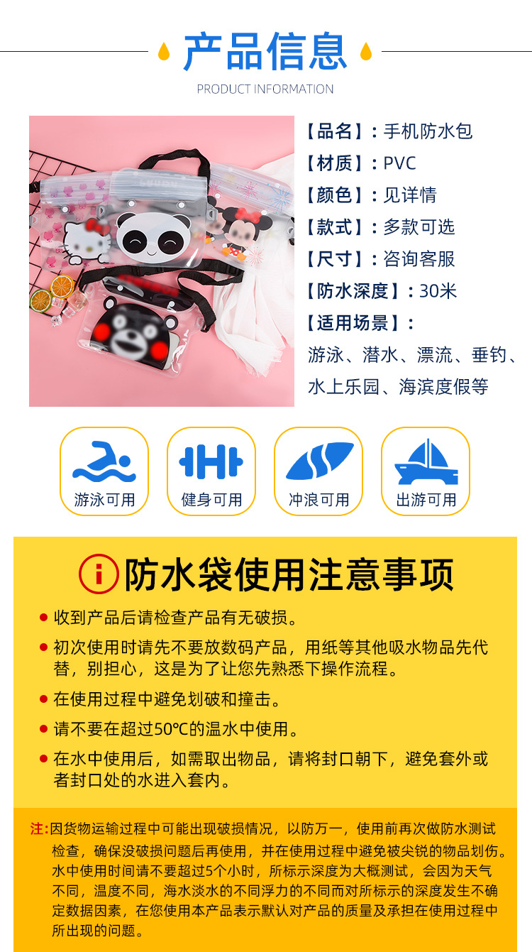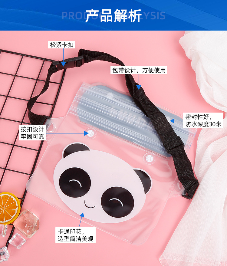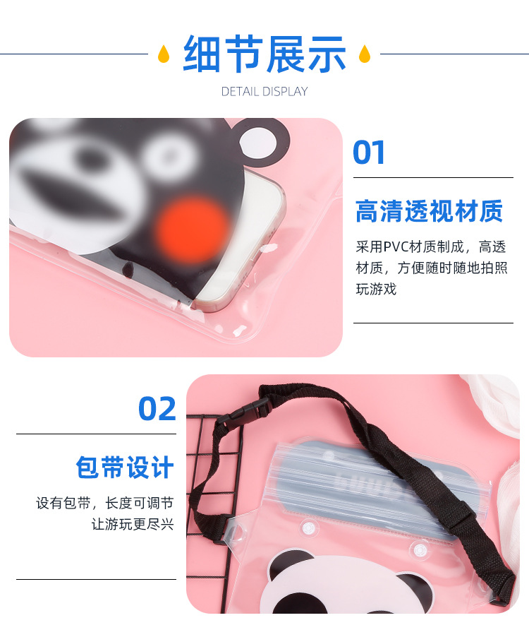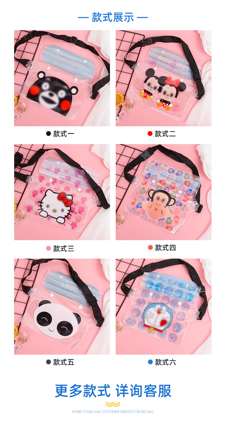 방수 휴대폰 가방, 크로스백형 수영 방수 허리 가방, PVC 래프팅 야외용 터치스크린 만화 패턴