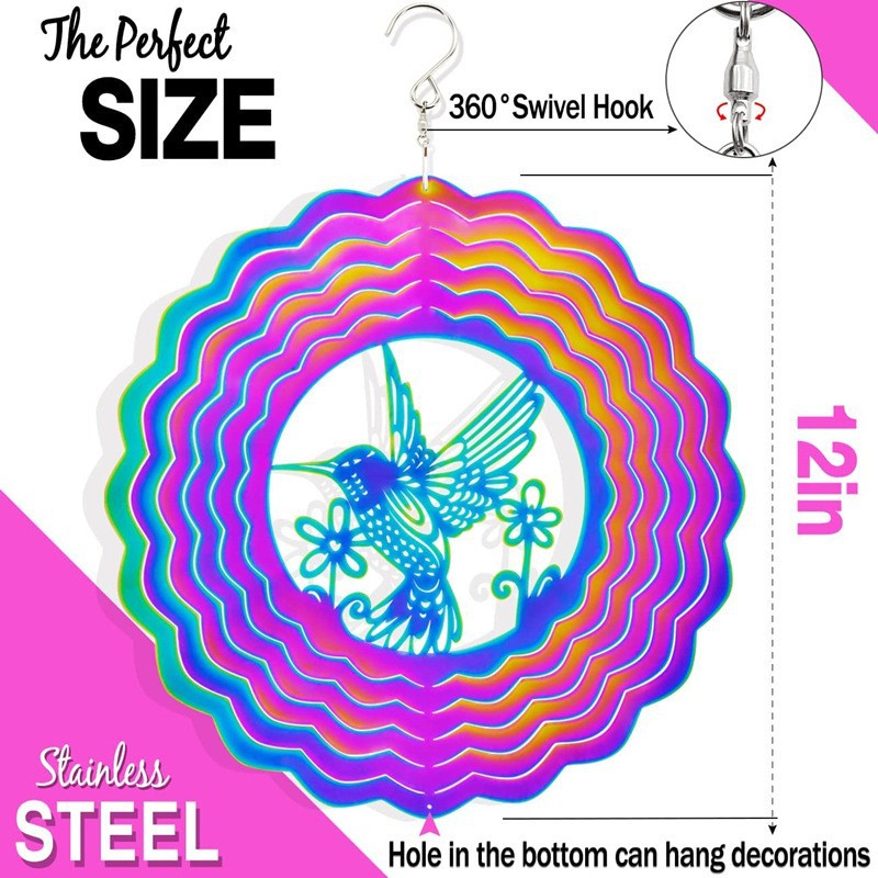 금속 12 인치 벌새 스테인레스 스틸 3D 바람 차임 바람 회전 야외 정원 장식 공급 Amazon AliExpress