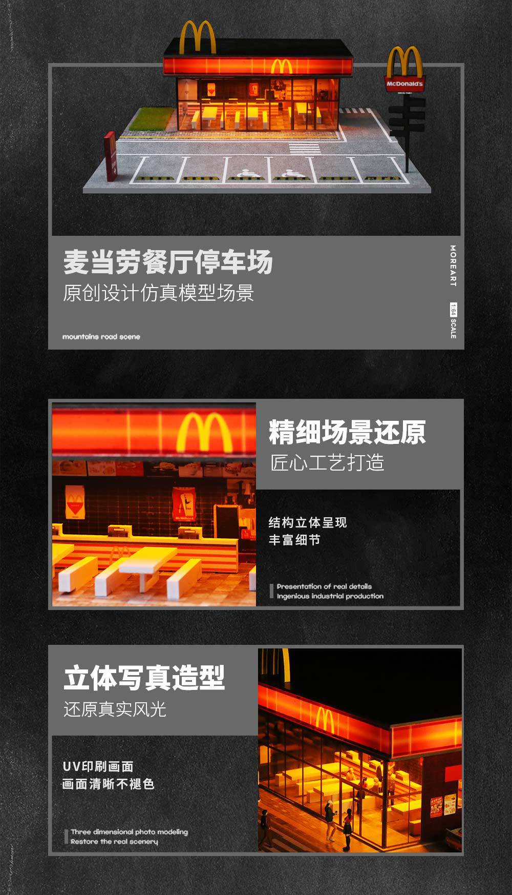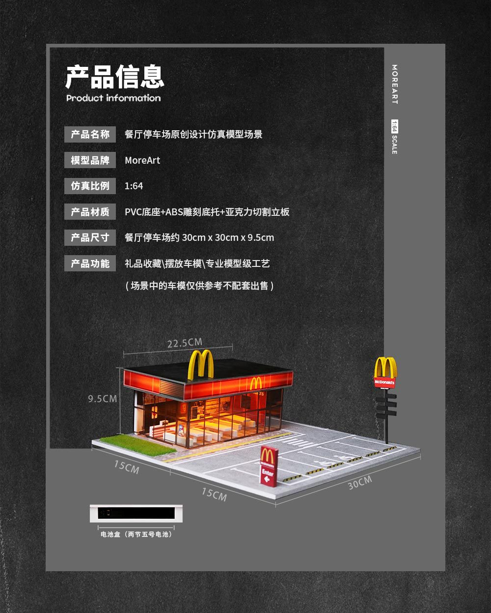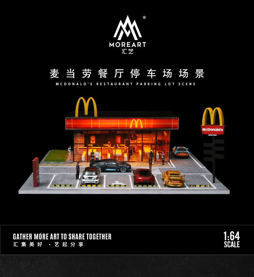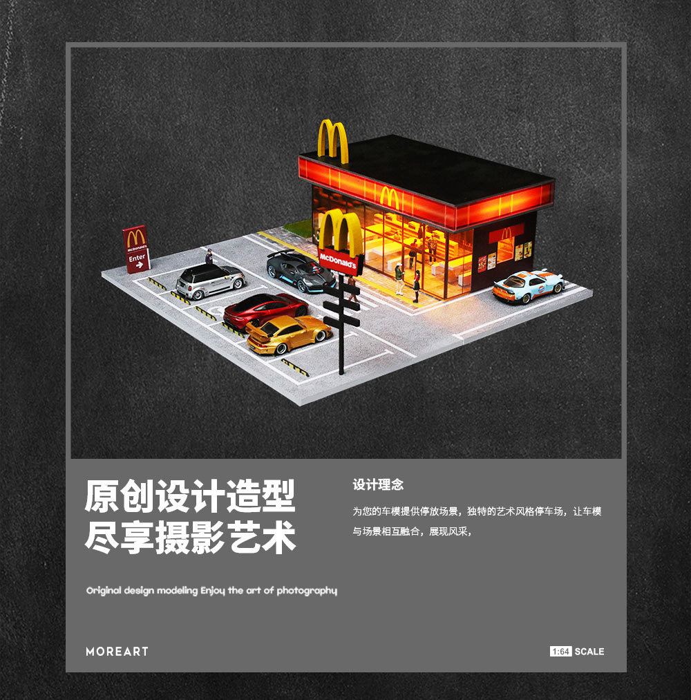 1/64 레스토랑 주차장 원래 시뮬레이션 자동차 모델 장면 조명 장식품 3 차원 건물 작은 집 컬렉션스토어 가기