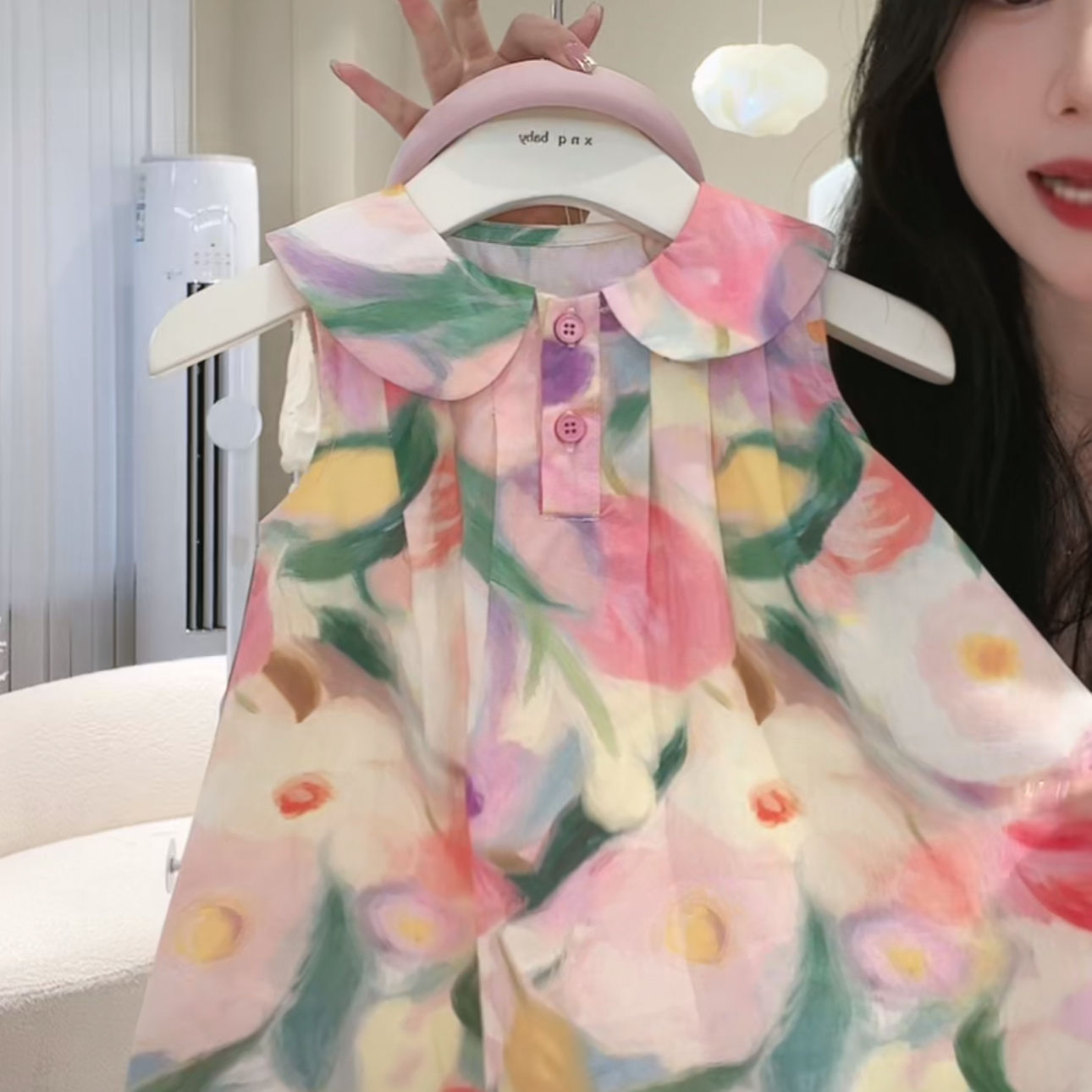 어린이 Xingyuan 소녀의 원피스 여름 원피스 새로운 도착 서양식 어린이 선박 원피스 소녀의 유화 스타일 꽃 공주 원피스스토어 가기