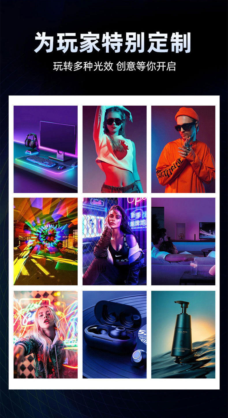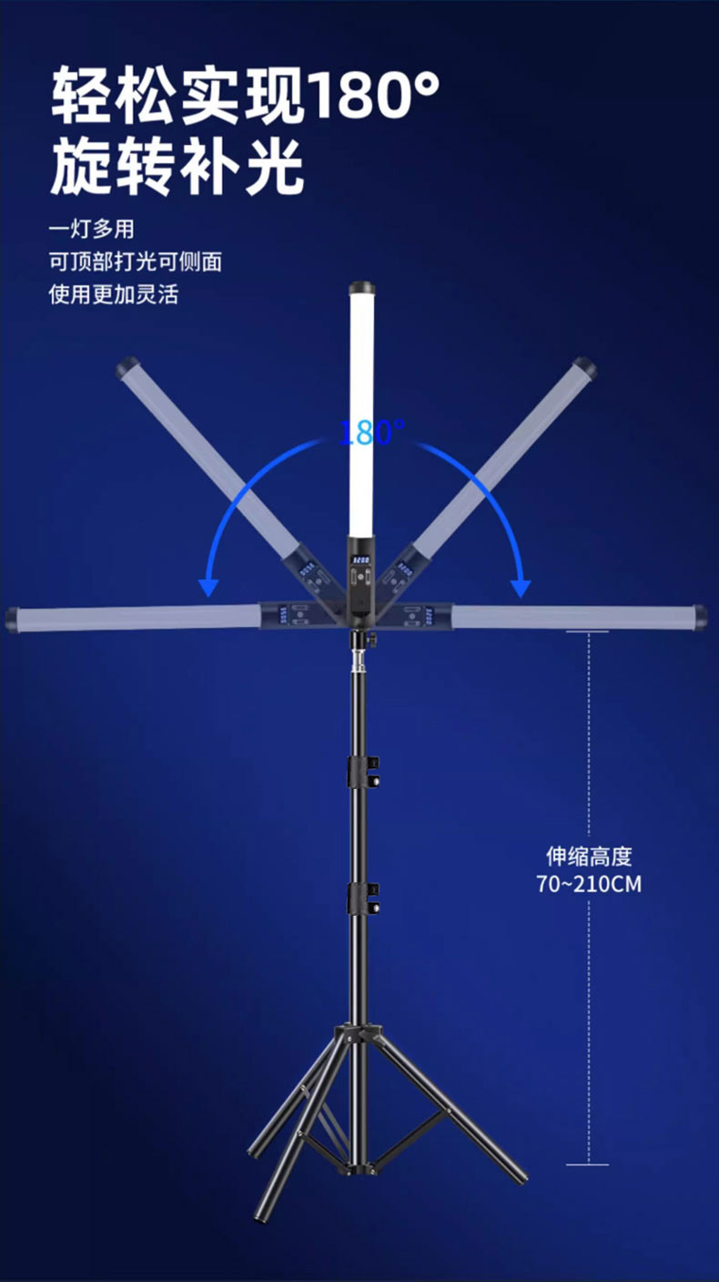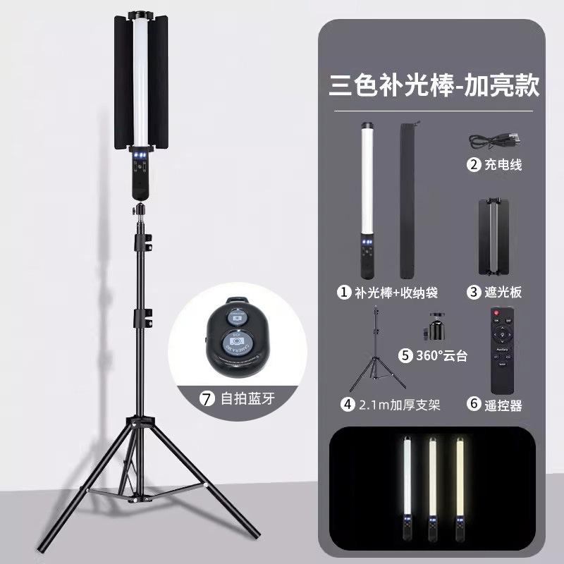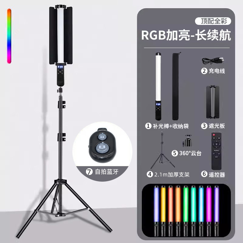 • RGB [휴대용 스틱 라이트 + 배플 + 메탈 헤드 + 블루투스 셀카 + 2.1m 두께의 브래킷]