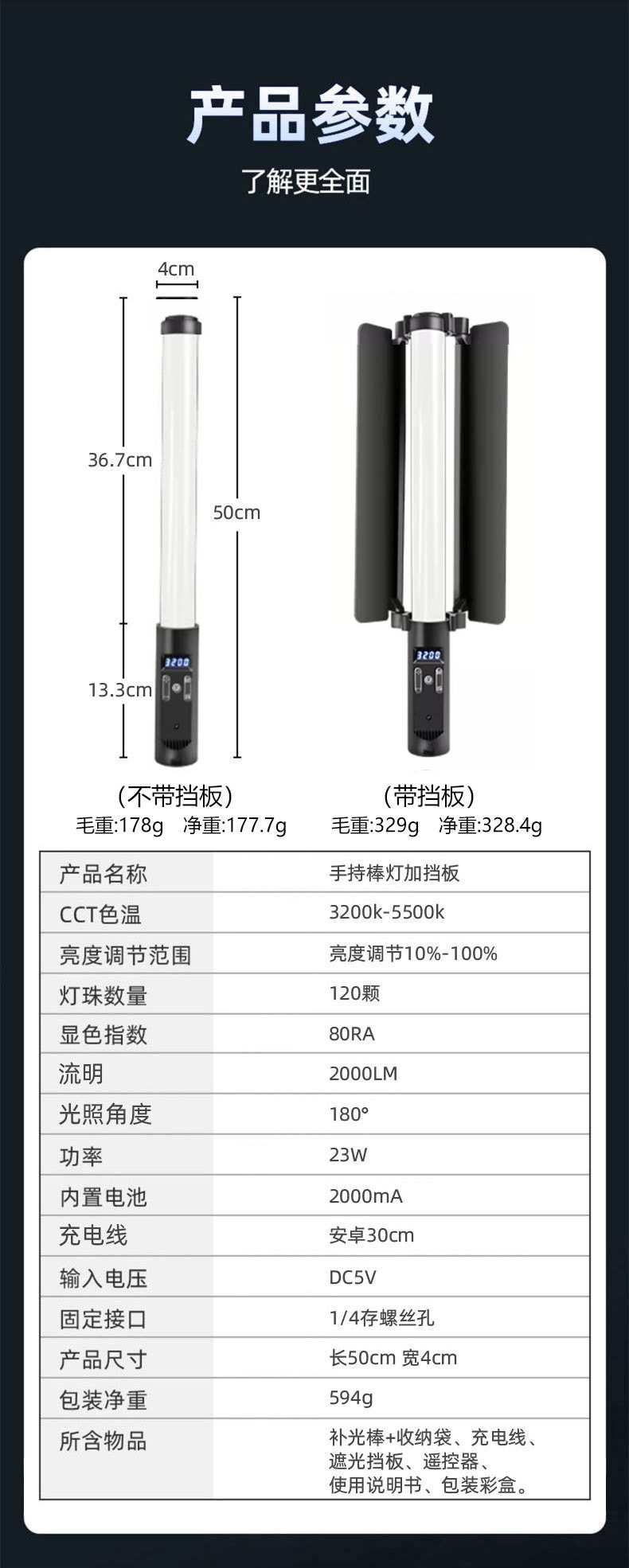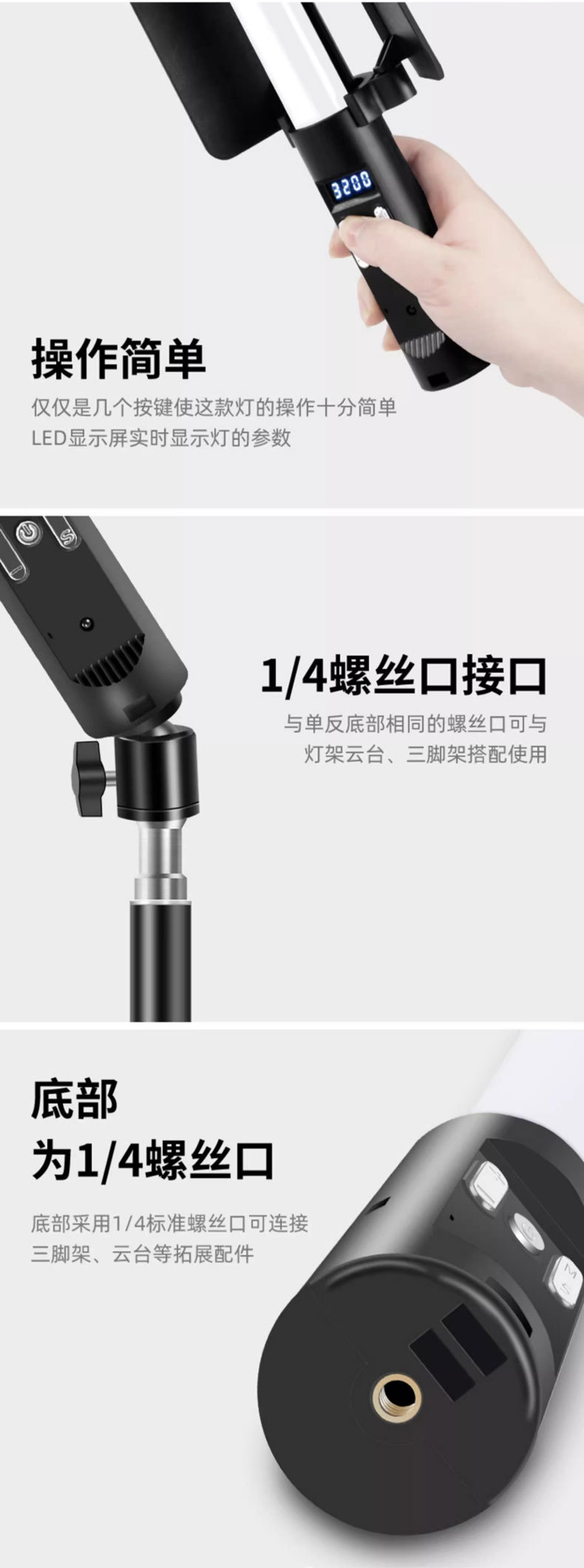 • 3가지 색온도 [휴대용 스틱 라이트 + 배플 + 금속 헤드 + 2.1m 두께의 브래킷]