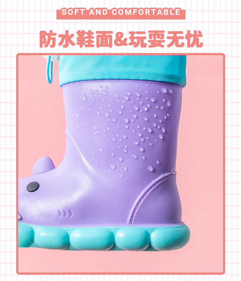 새로운 만화 상어 어린이 비 신발 사계절 착용 어린이 빛 부드러운 바닥 소년 및 아기의 방수 신발 장화