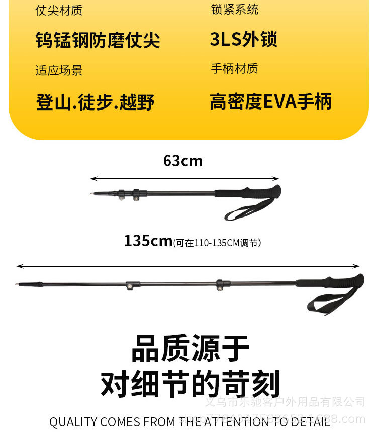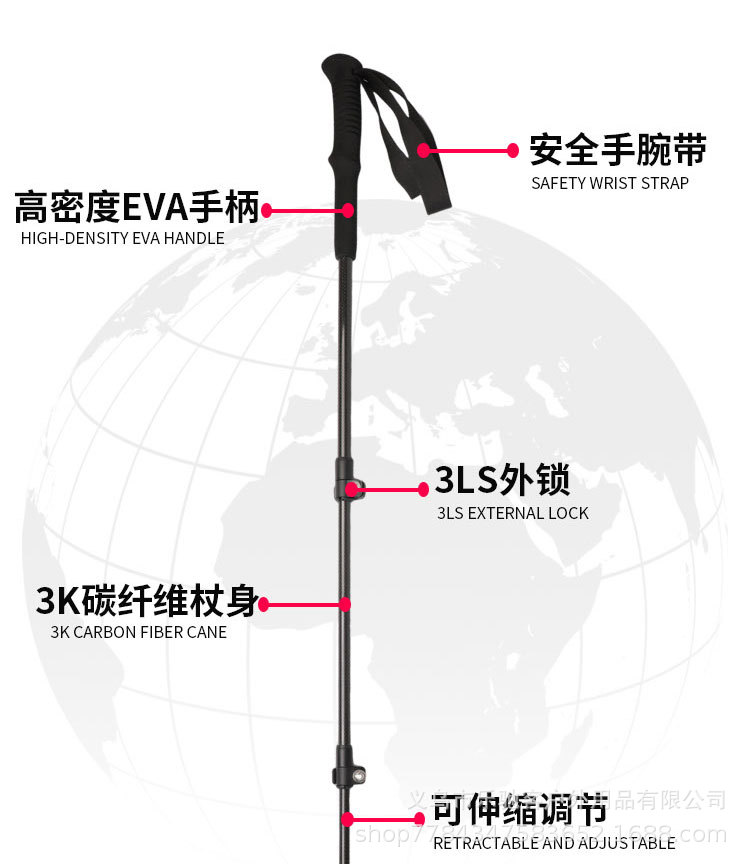 초경량 탄소 섬유 3섹션 스트레이트 핸들 외부 잠금 텔레스코픽 트레킹 폴 야외 하이킹 폴 탄소 워킹 트레킹 폴