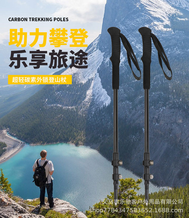 초경량 탄소 섬유 3섹션 스트레이트 핸들 외부 잠금 텔레스코픽 트레킹 폴 야외 하이킹 폴 탄소 워킹 트레킹 폴스토어 가기