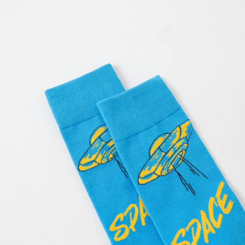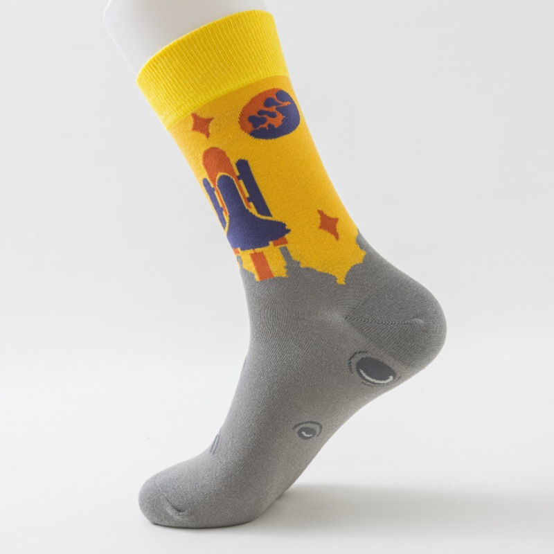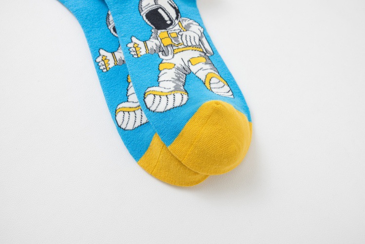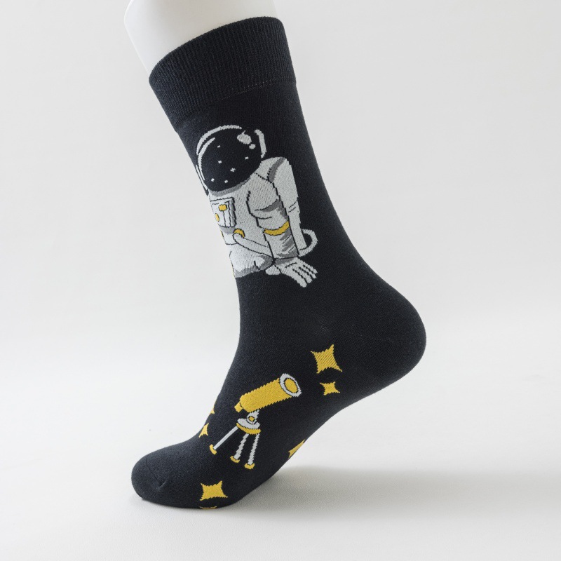 새로운 재고 패션 패션 양말 양말 도매 캐주얼 남성면 양말 우주 비행사 시리즈 튜브 양말 클립 없음