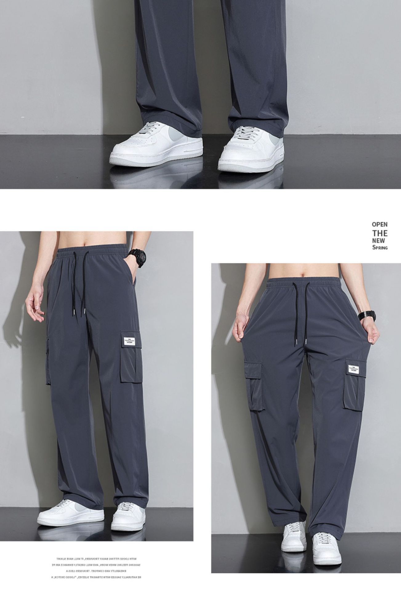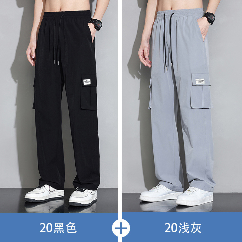 NASA 아이스 실크 스트레이트 바지 남자 여름 얇은 빠른 건조 스포츠 느슨한 유행 브랜드 소년 캐주얼 올 매치 바지스토어 가기
