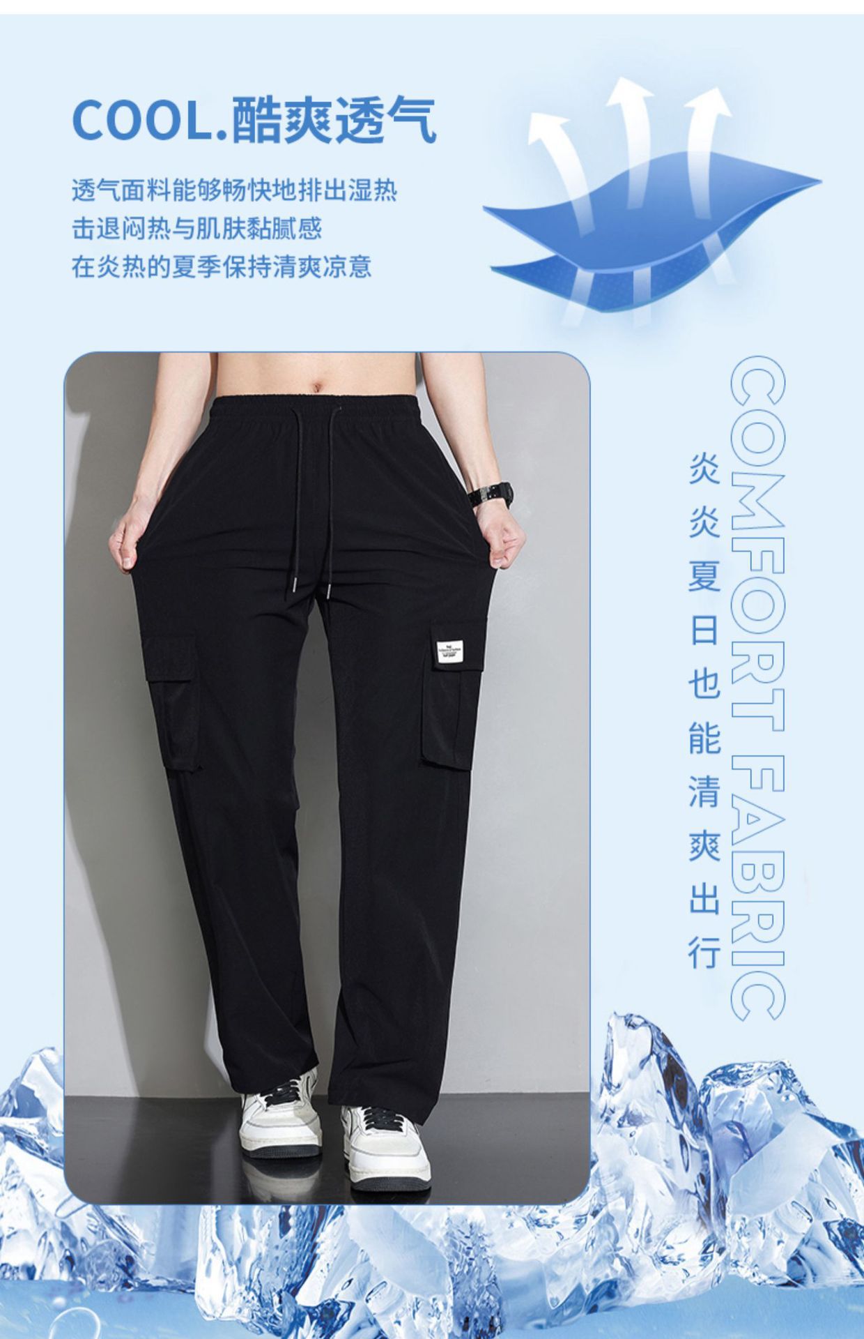 NASA 아이스 실크 스트레이트 바지 남자 여름 얇은 빠른 건조 스포츠 느슨한 유행 브랜드 소년 캐주얼 올 매치 바지