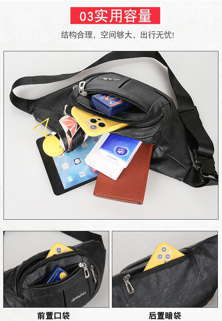 공장 도매 새로운 남성 허리 가방 새로운 비즈니스 남성 가슴 가방 pu 복고풍 야외 휴대 전화 허리 가방 남성스토어 가기