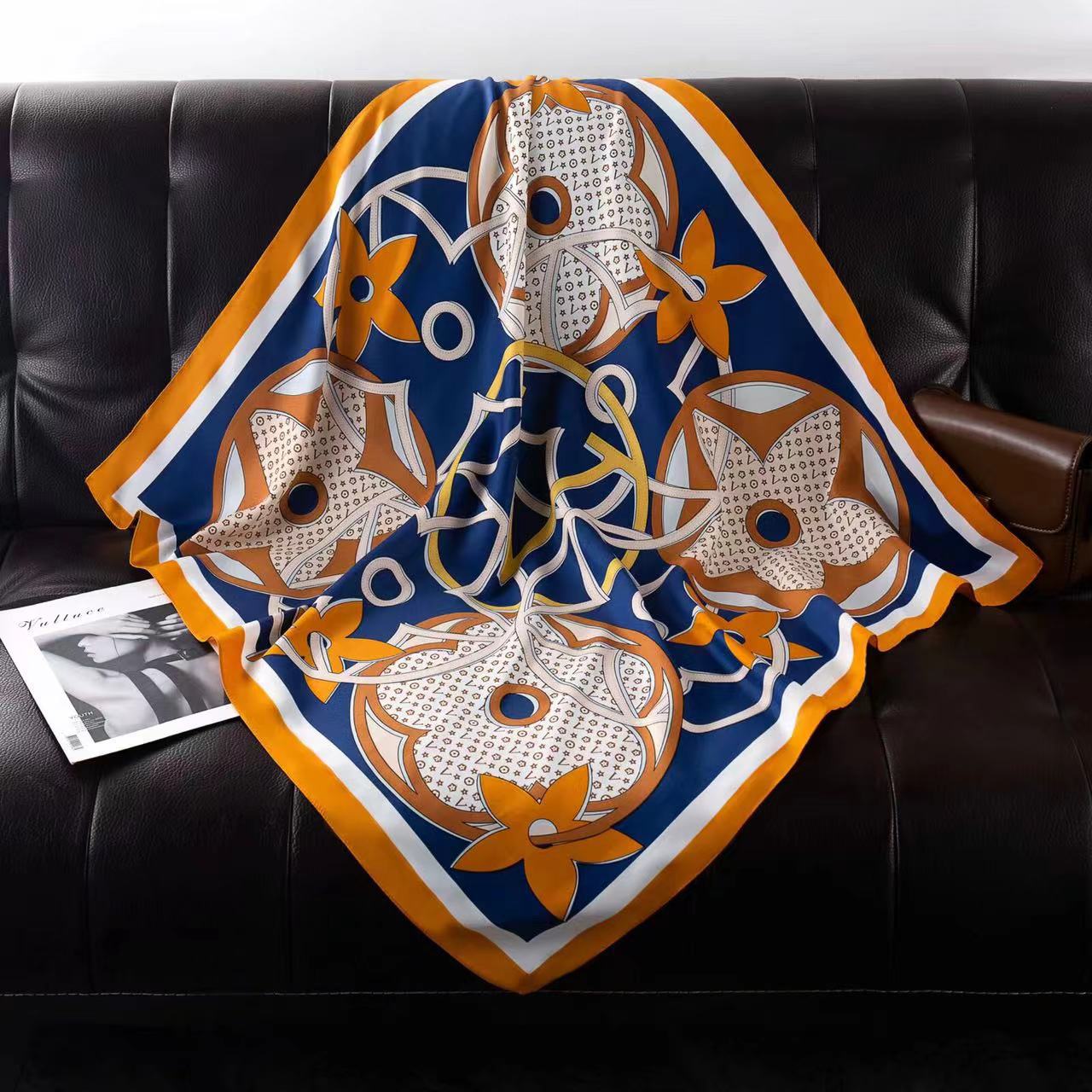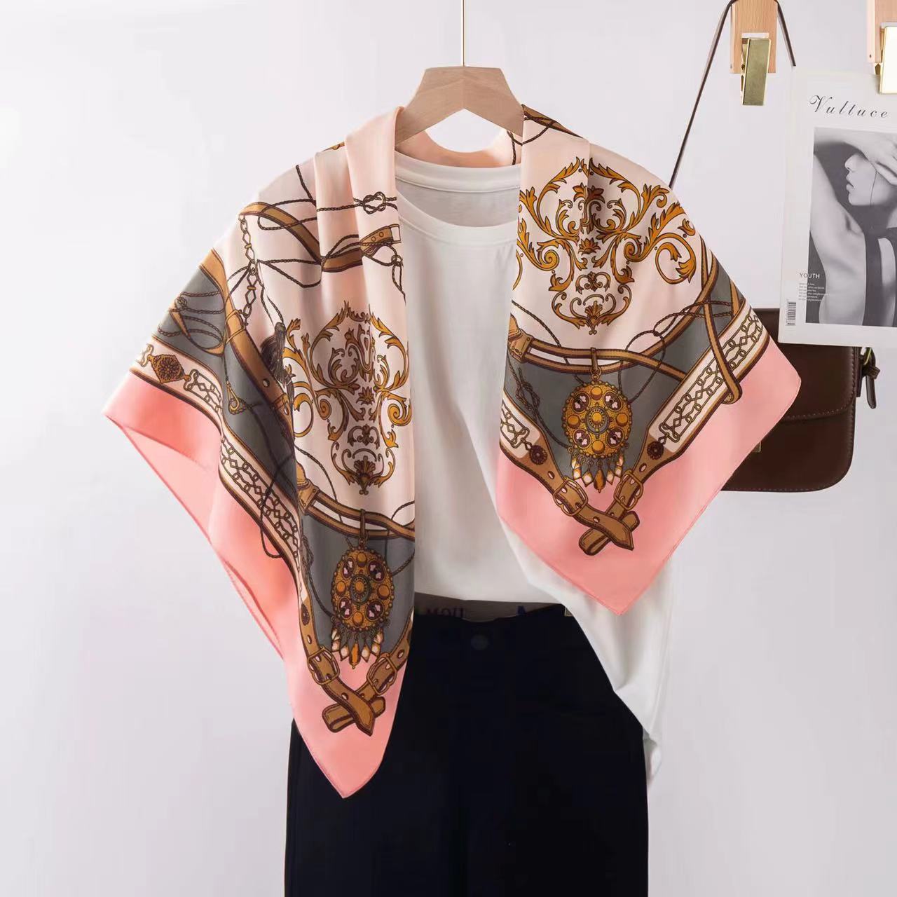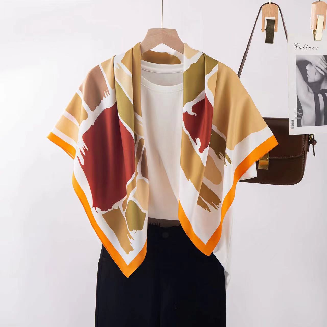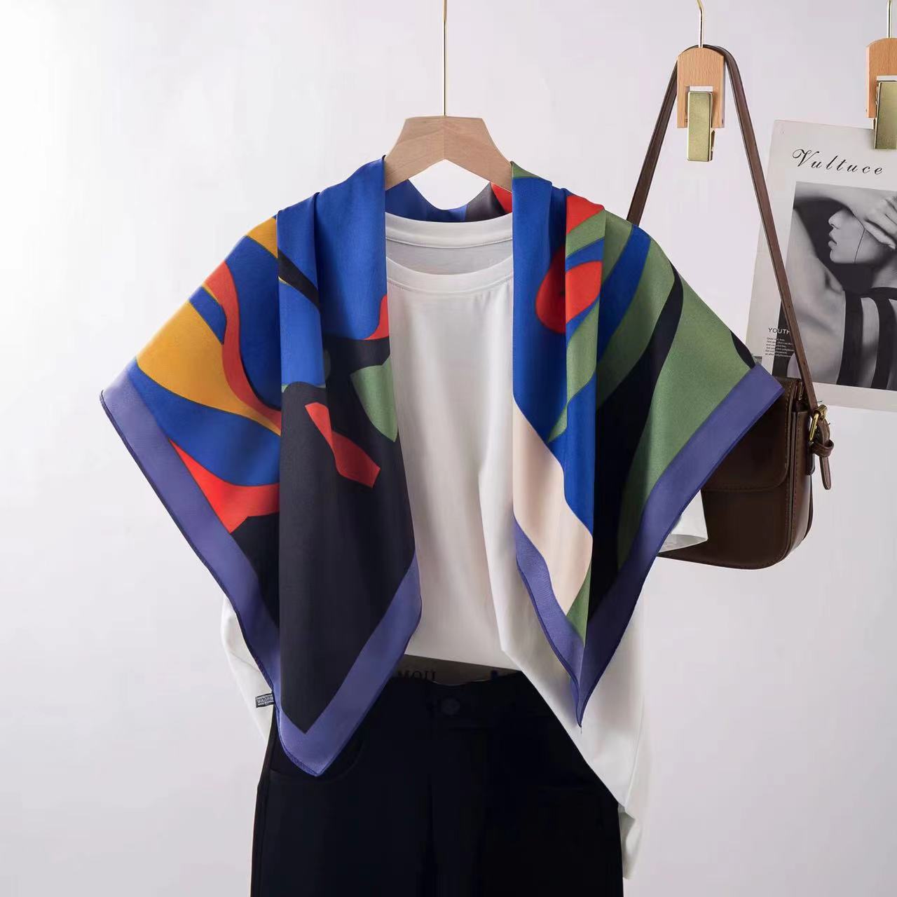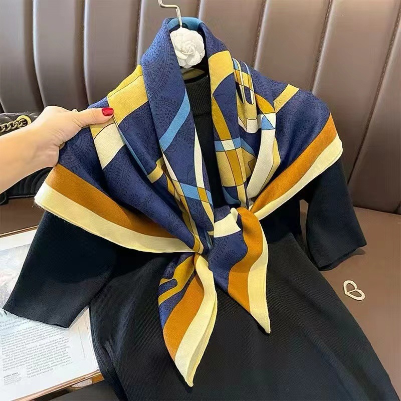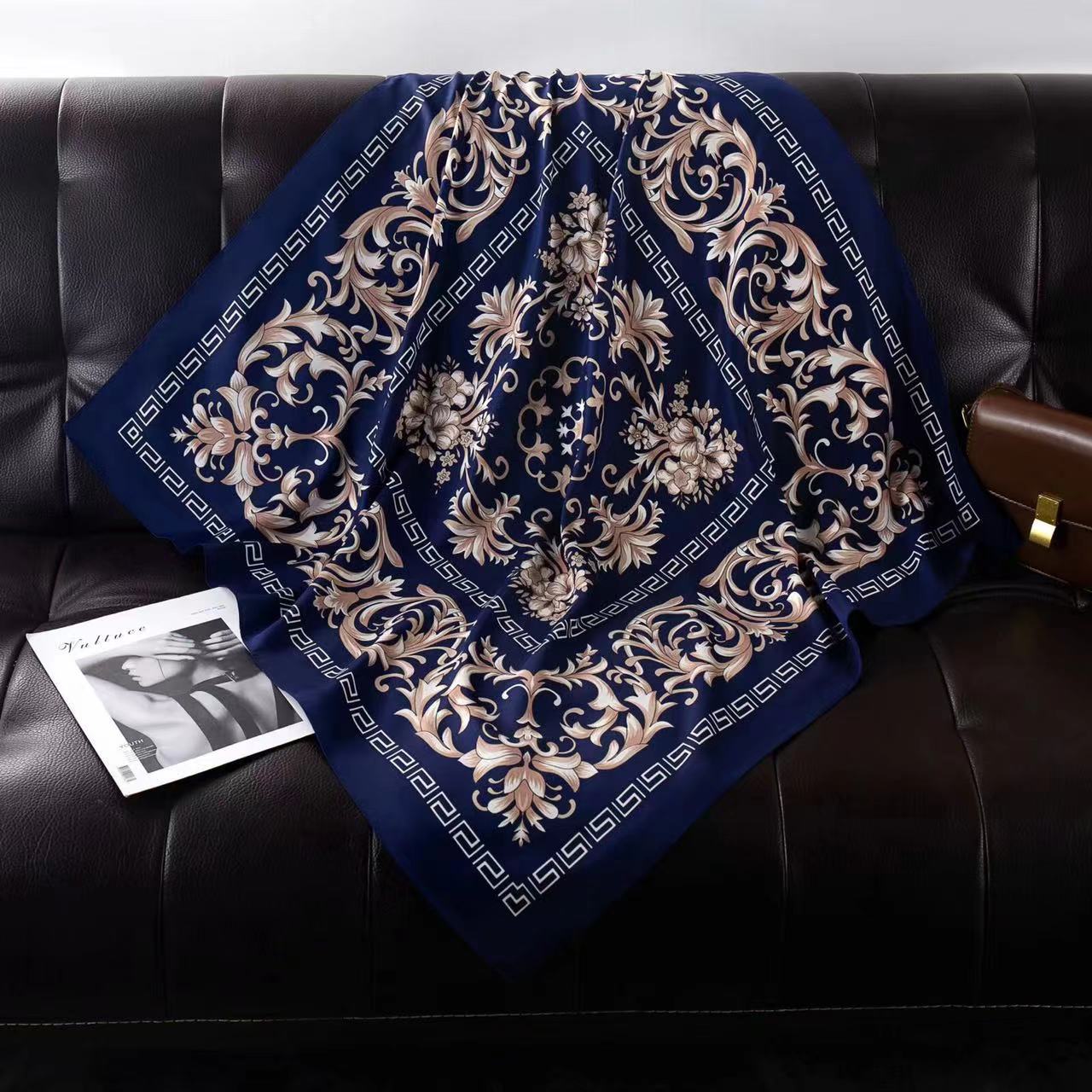 프린트 능직 90cm 정사각형 스카프 시뮬레이션 실크 스카프 일본과 한국 대외 무역 대형 사각형 스카프 인터넷 연예인 유행 다기능 숄 스카프