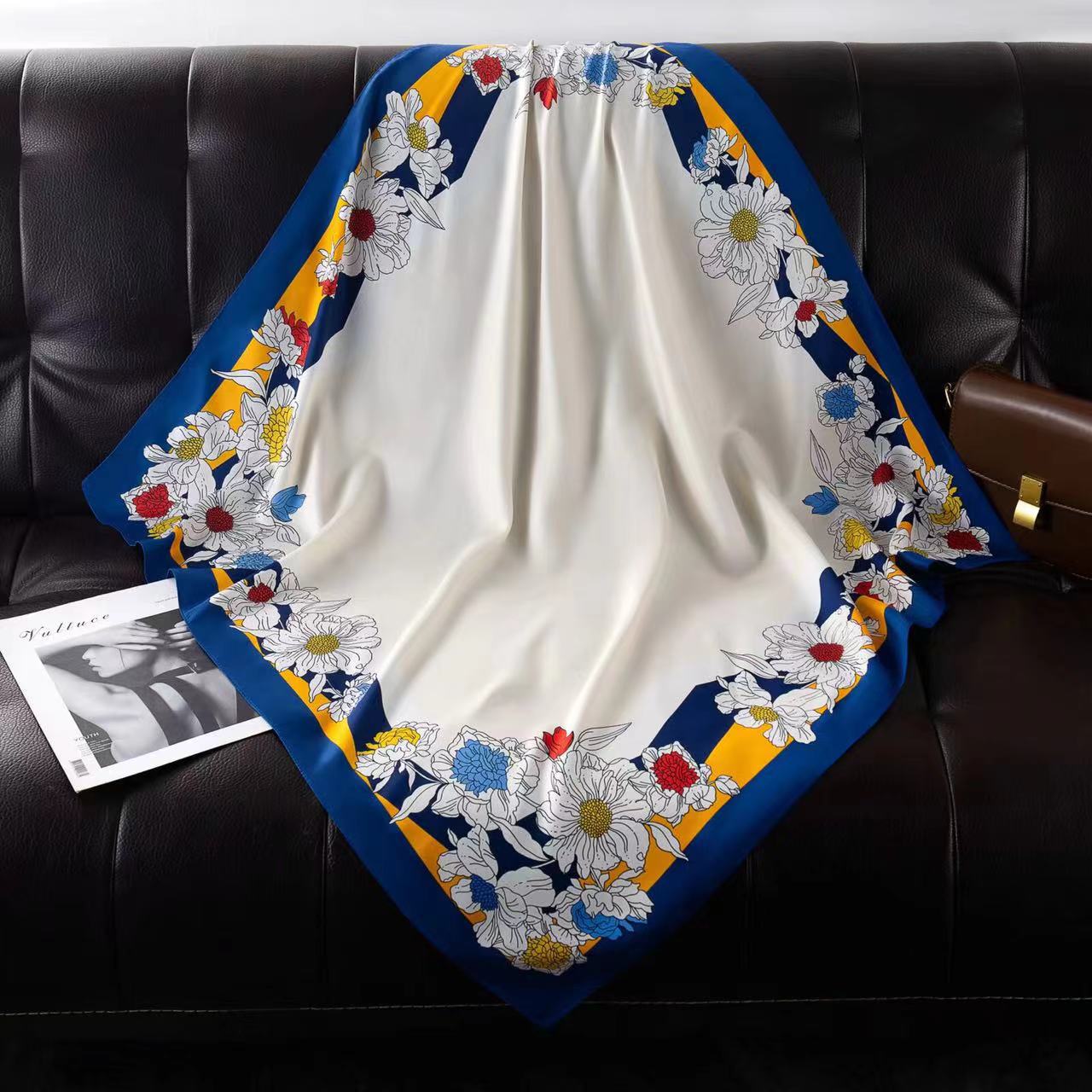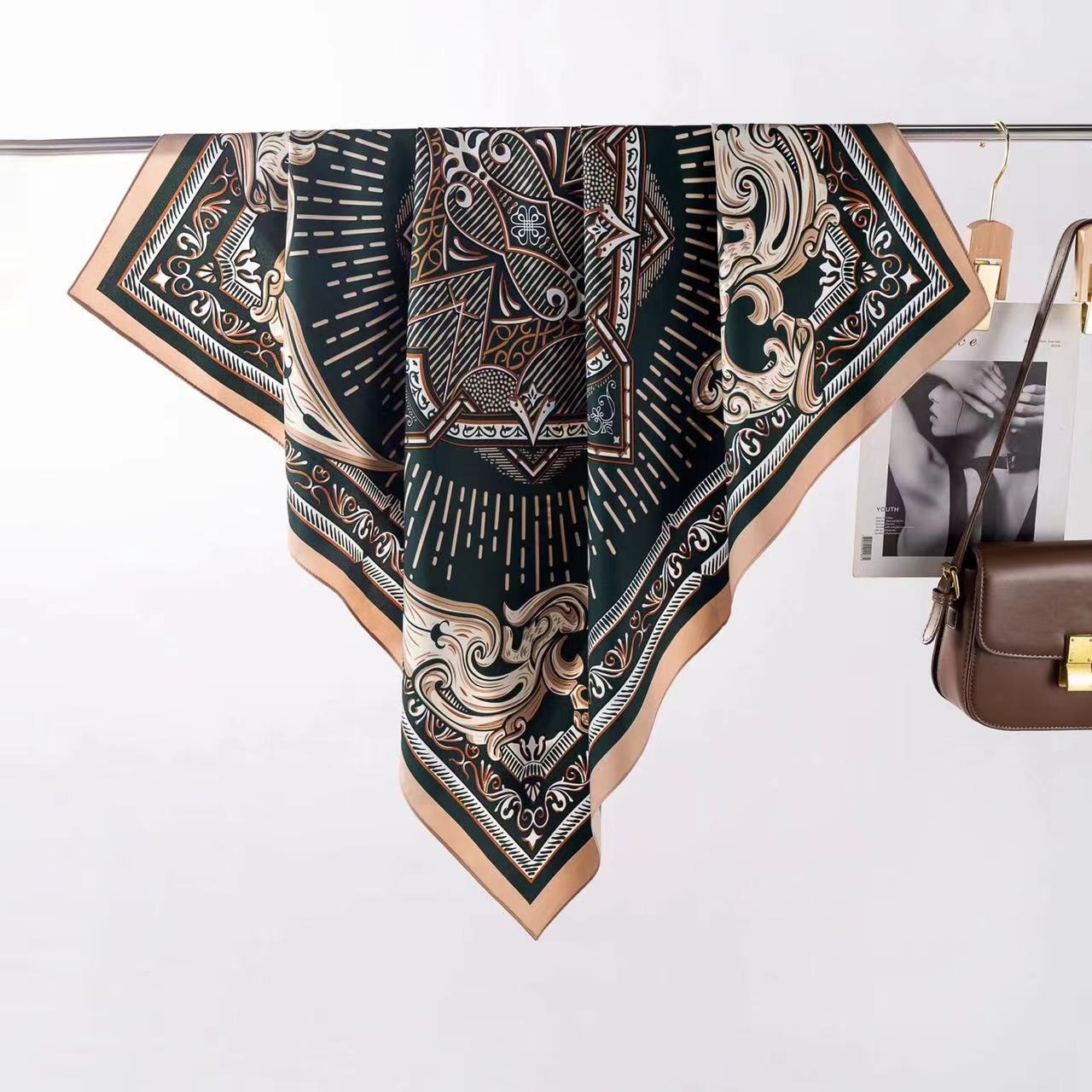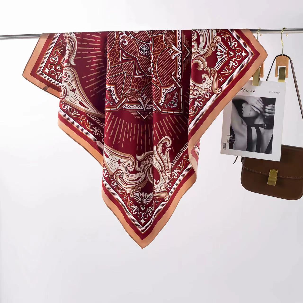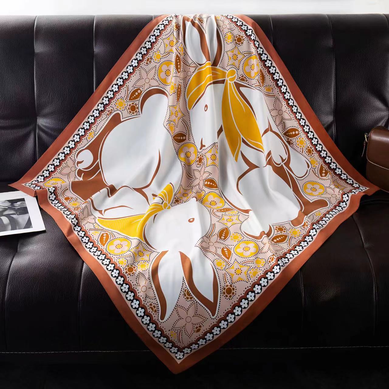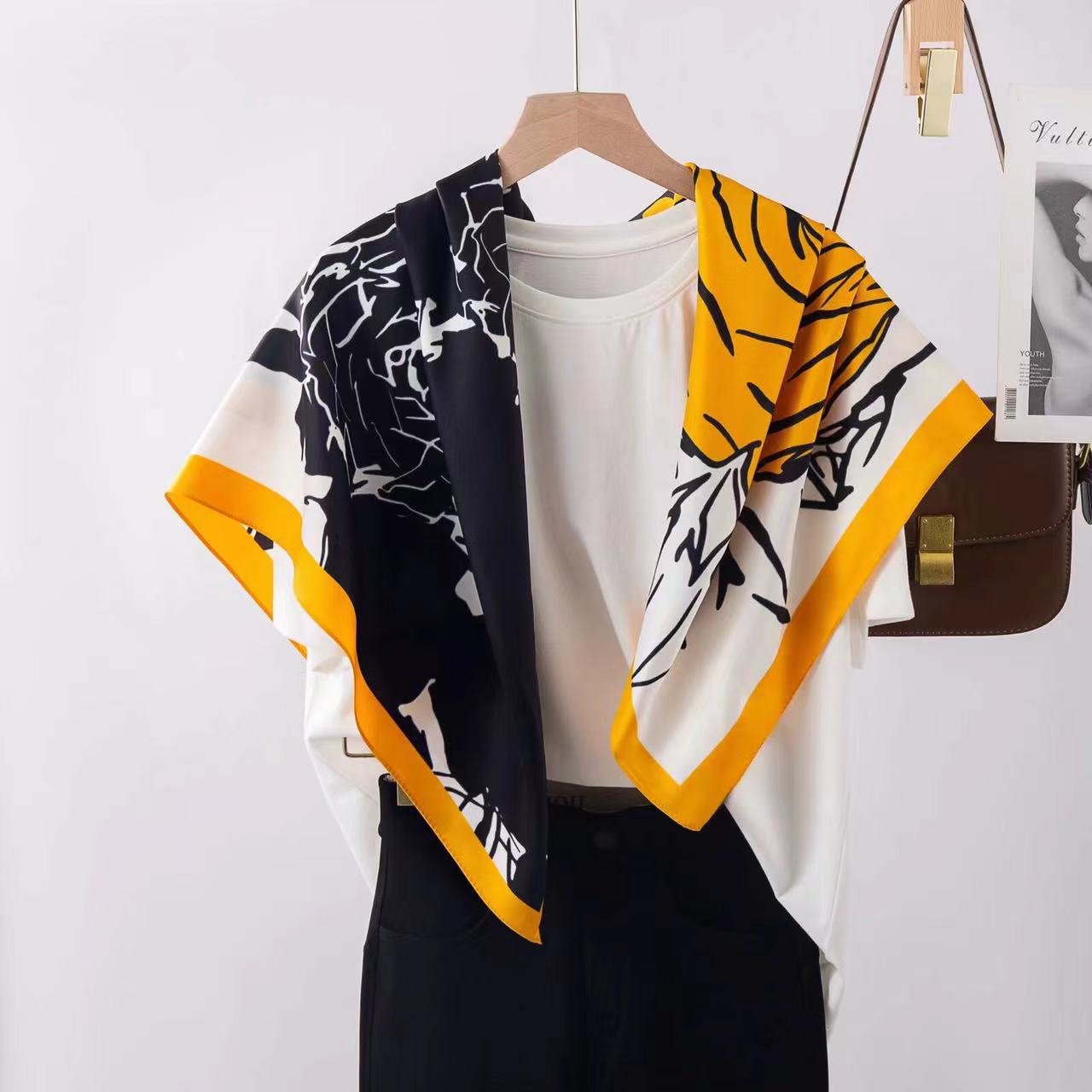 프린트 능직 90cm 정사각형 스카프 시뮬레이션 실크 스카프 일본과 한국 대외 무역 대형 사각형 스카프 인터넷 연예인 유행 다기능 숄 스카프