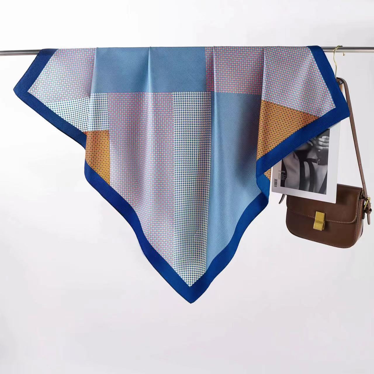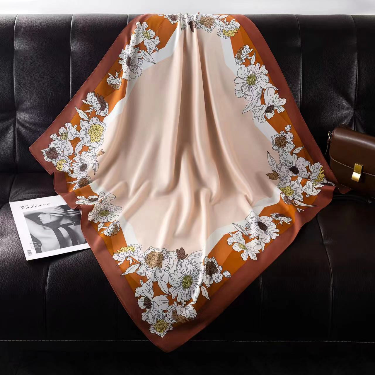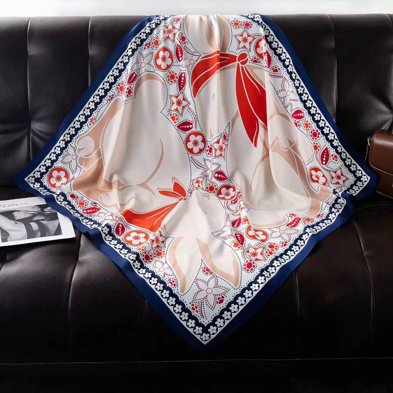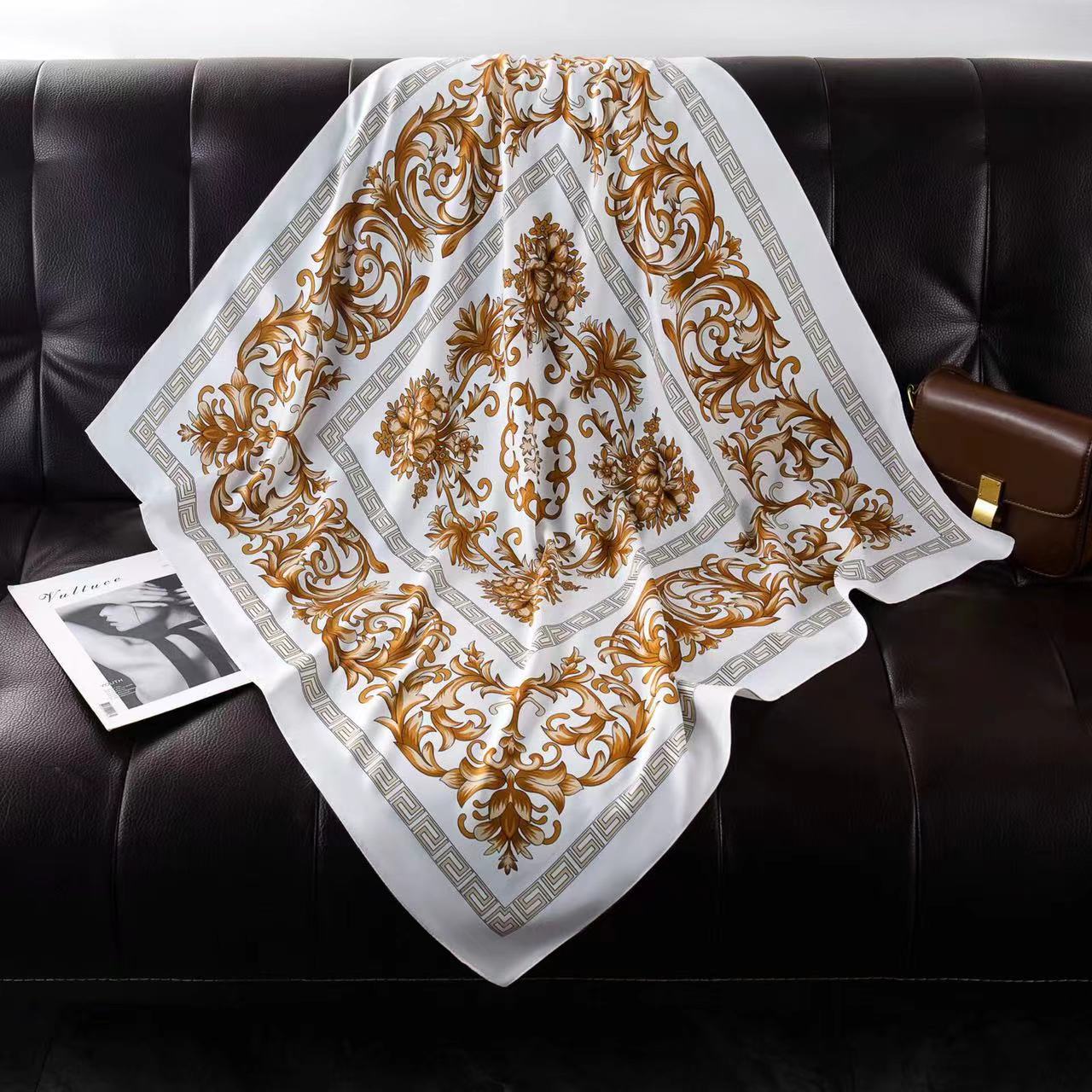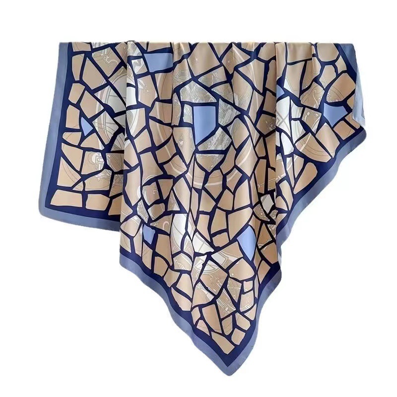 프린트 능직 90cm 정사각형 스카프 시뮬레이션 실크 스카프 일본과 한국 대외 무역 대형 사각형 스카프 인터넷 연예인 유행 다기능 숄 스카프
