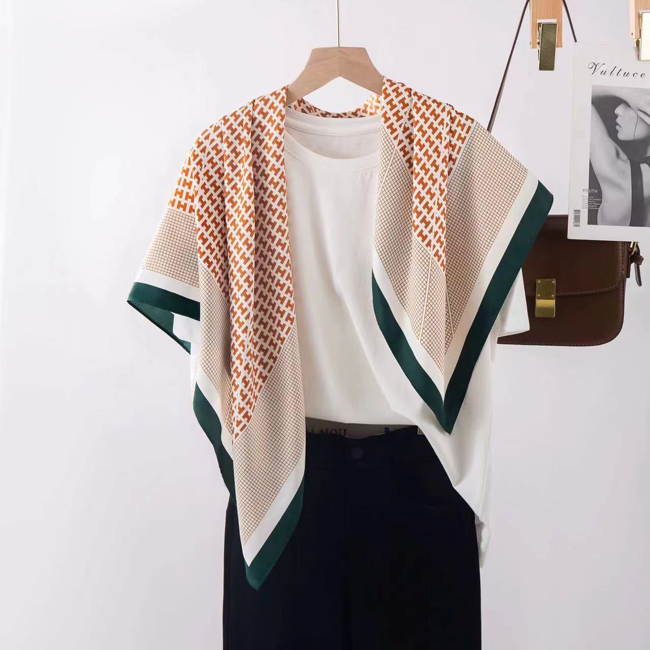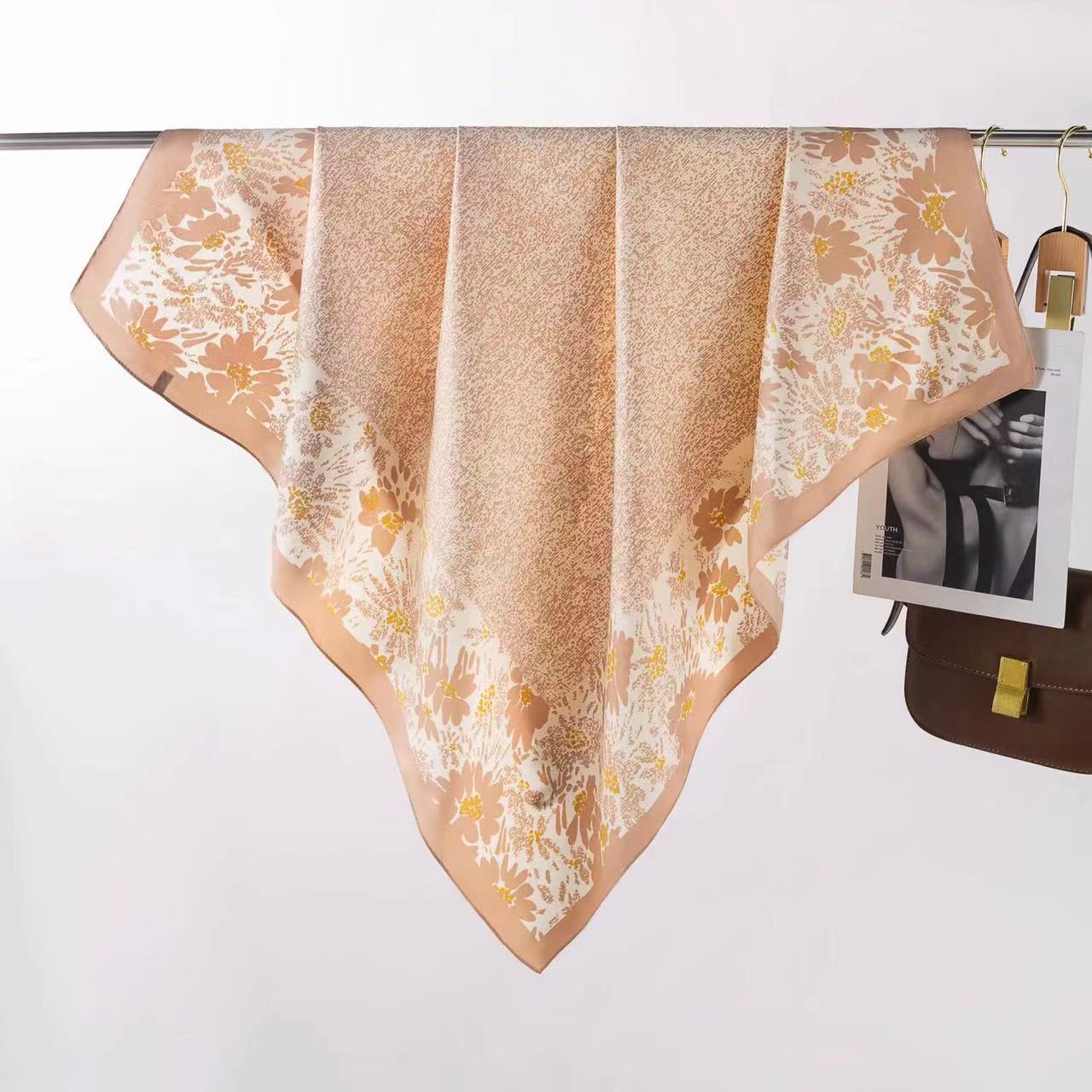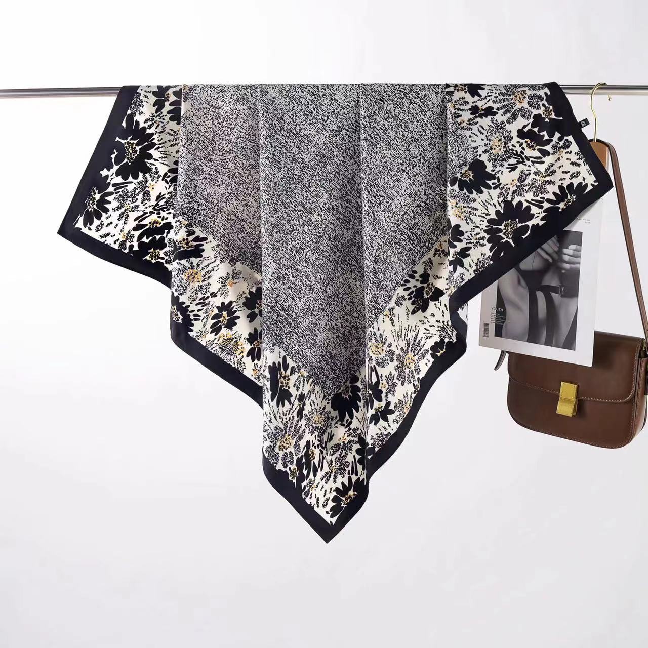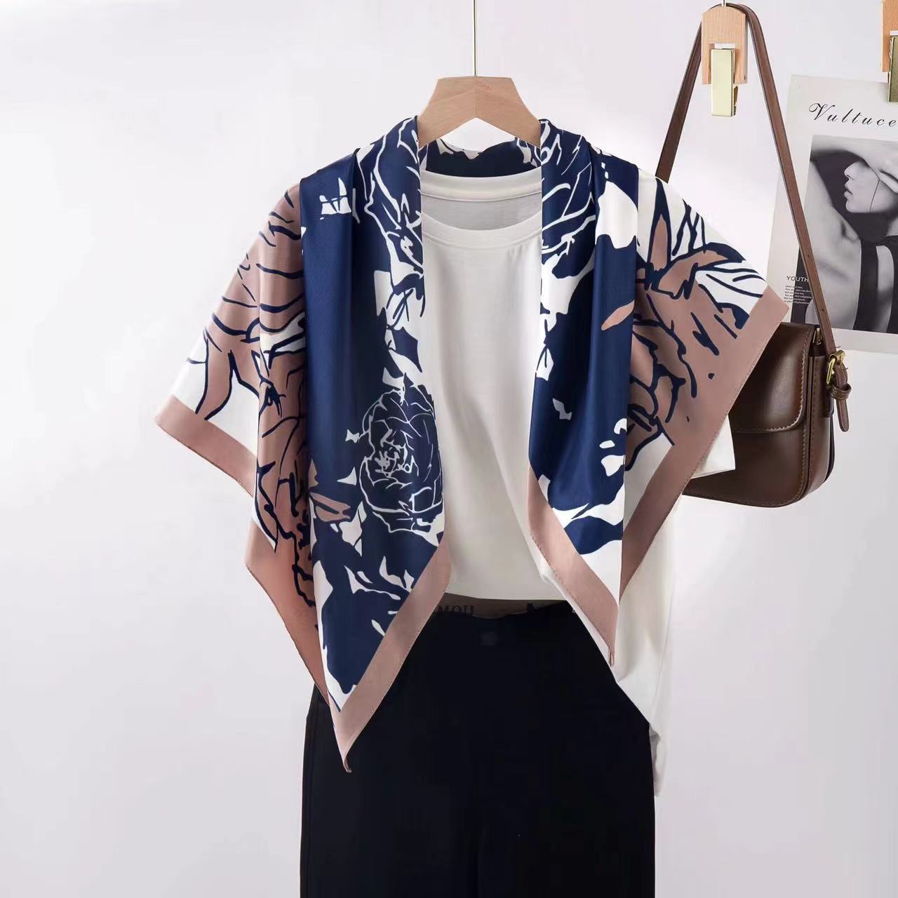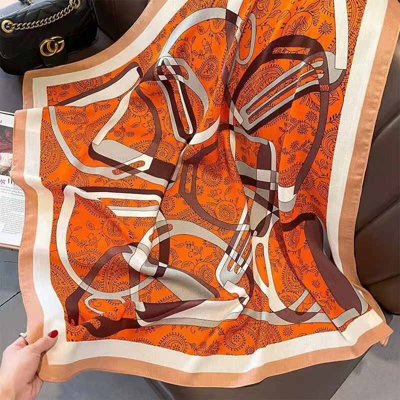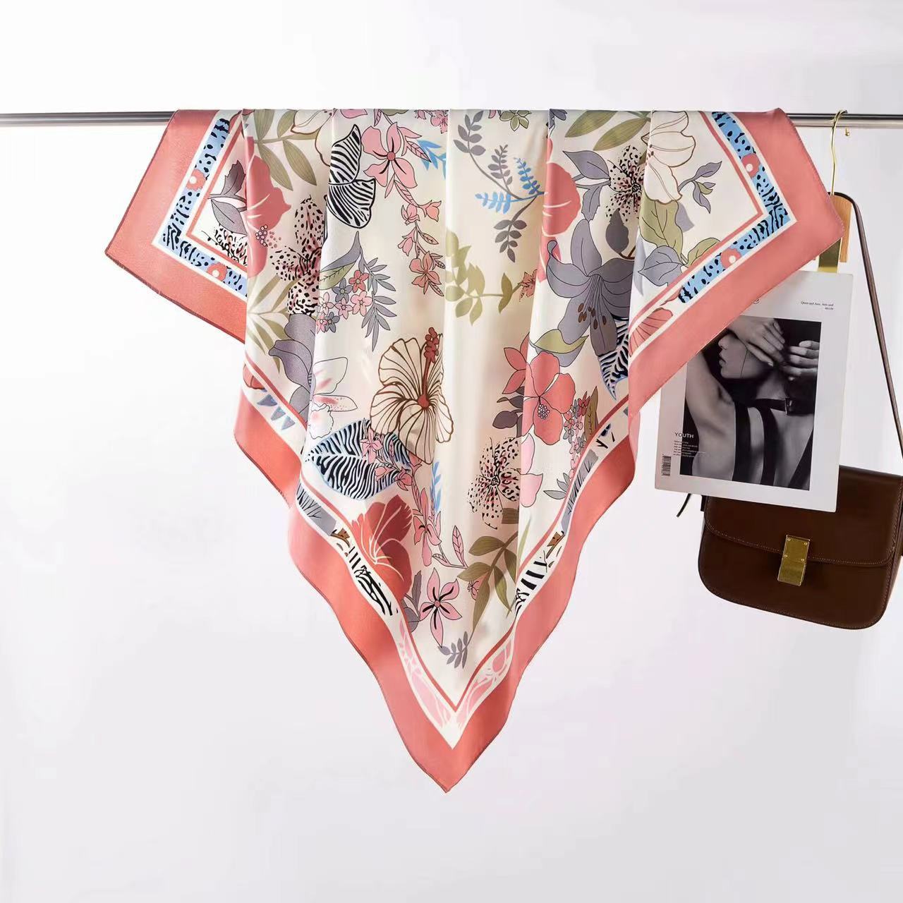 프린트 능직 90cm 정사각형 스카프 시뮬레이션 실크 스카프 일본과 한국 대외 무역 대형 사각형 스카프 인터넷 연예인 유행 다기능 숄 스카프