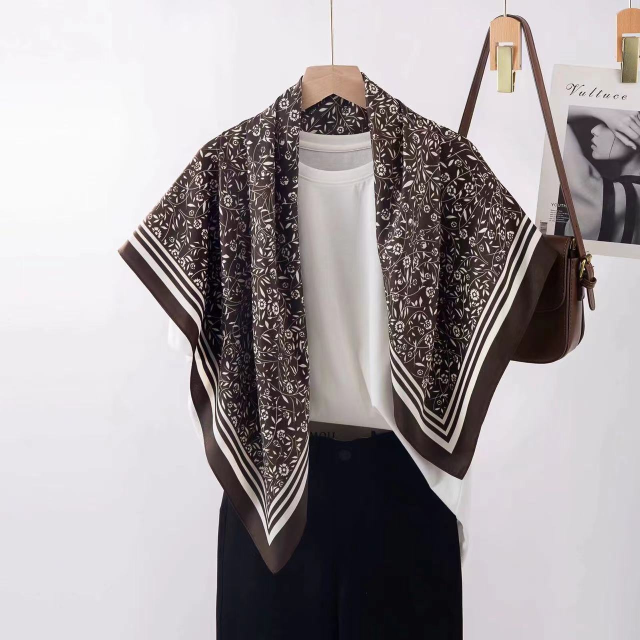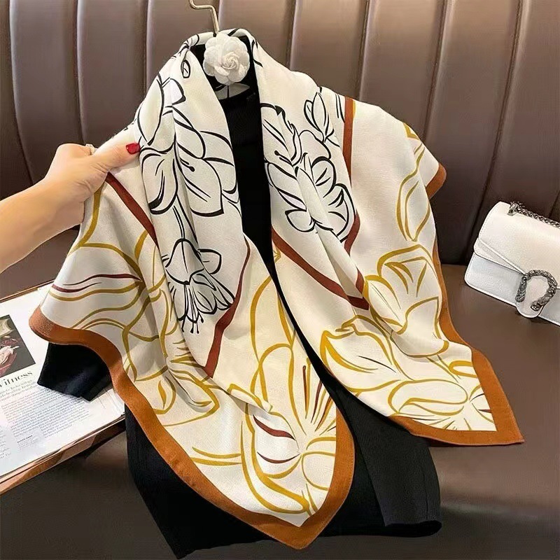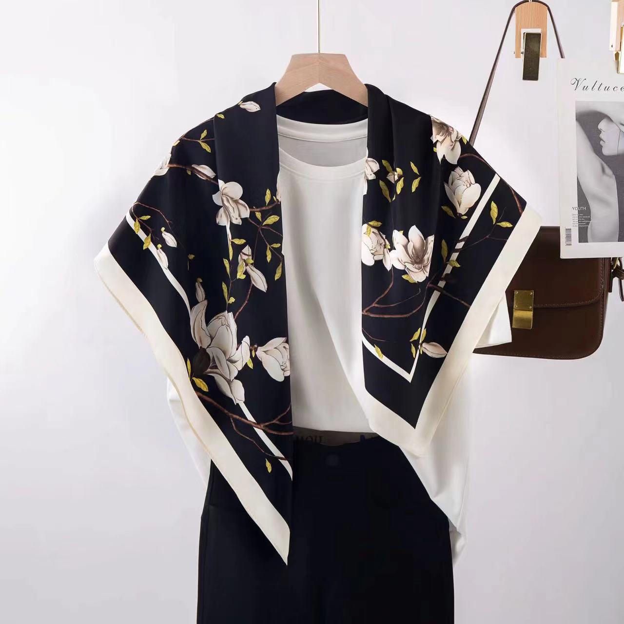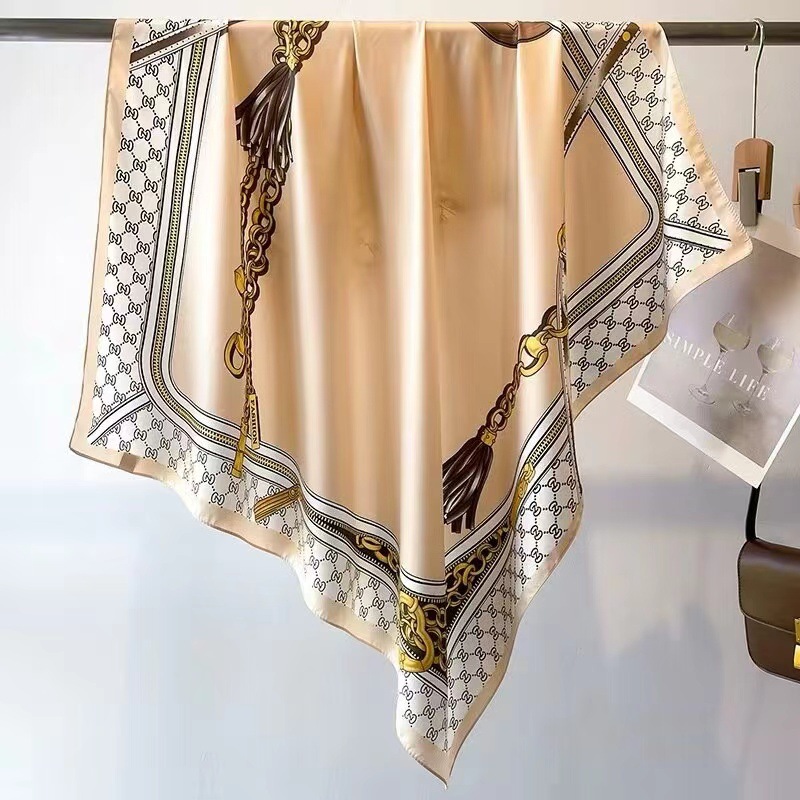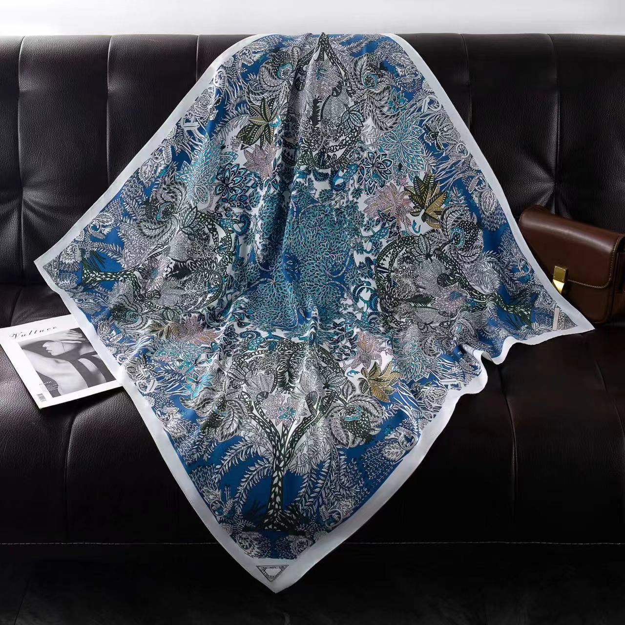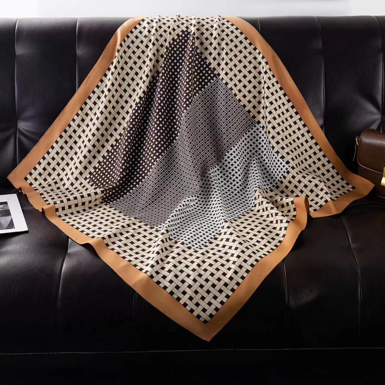 프린트 능직 90cm 정사각형 스카프 시뮬레이션 실크 스카프 일본과 한국 대외 무역 대형 사각형 스카프 인터넷 연예인 유행 다기능 숄 스카프