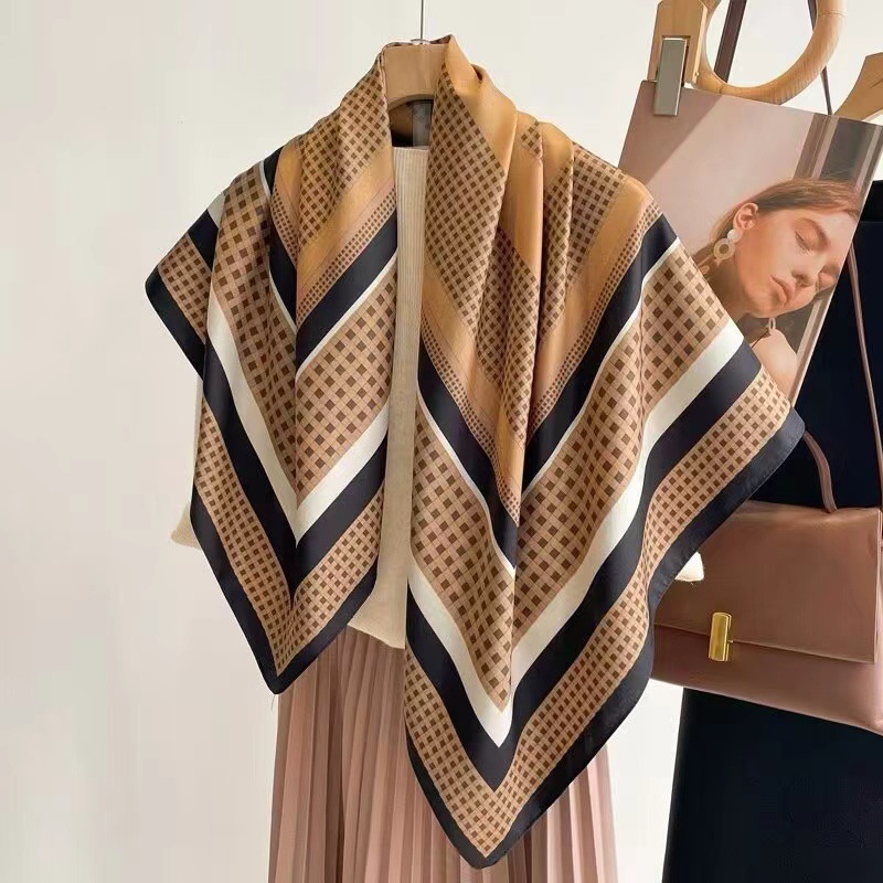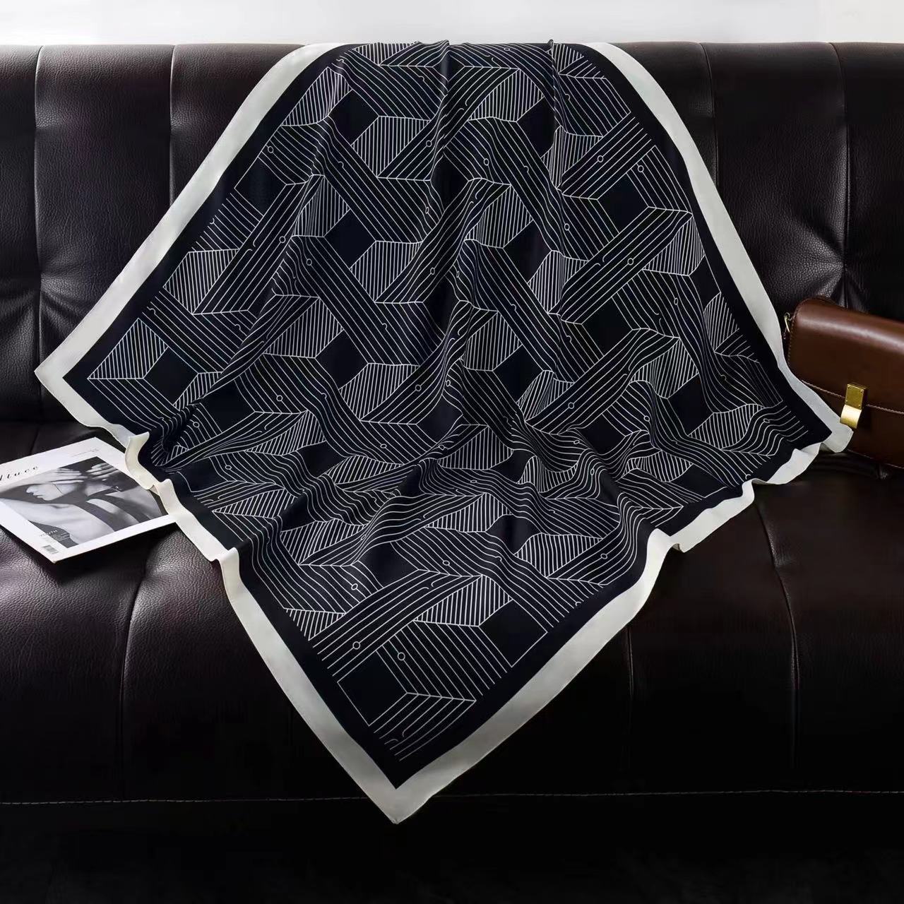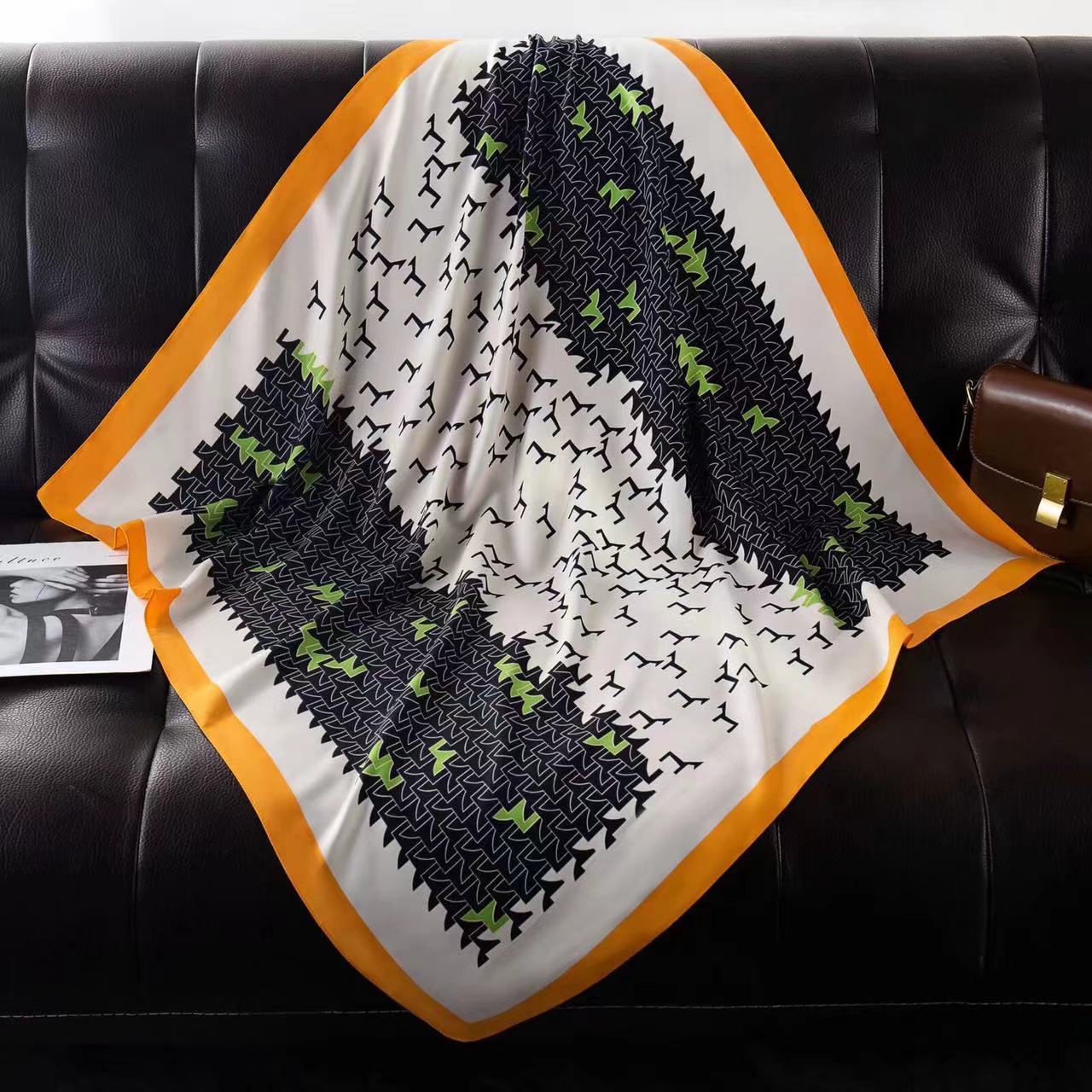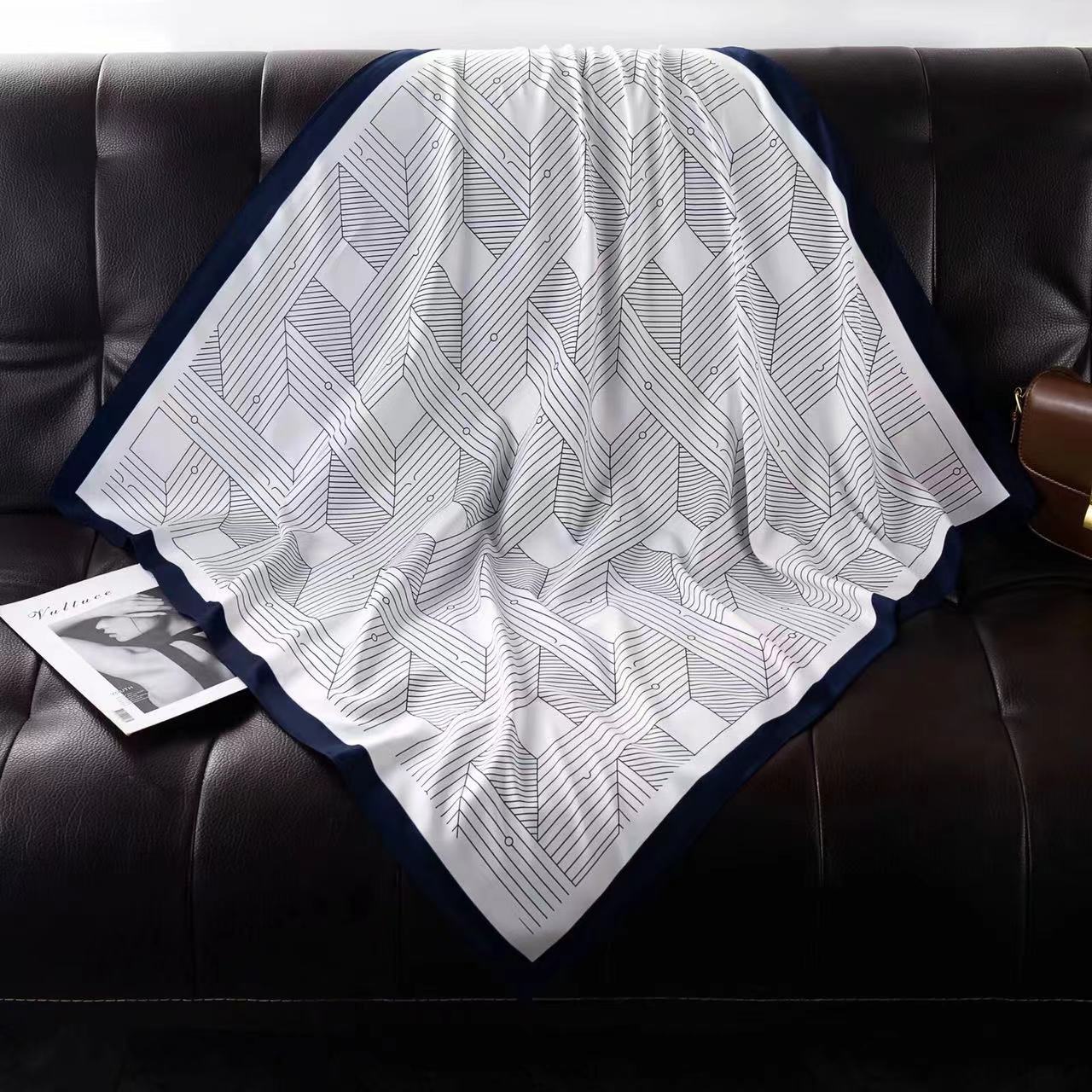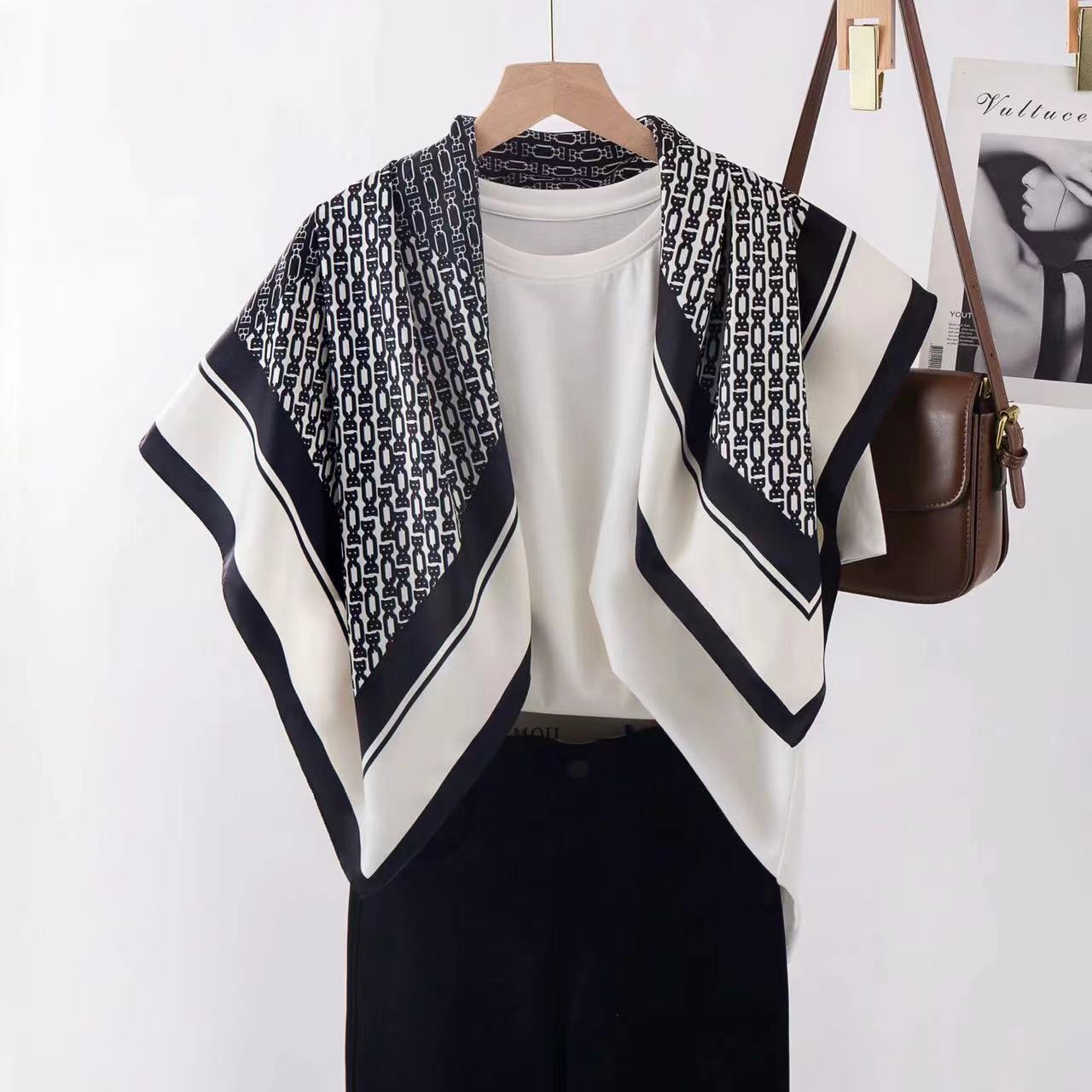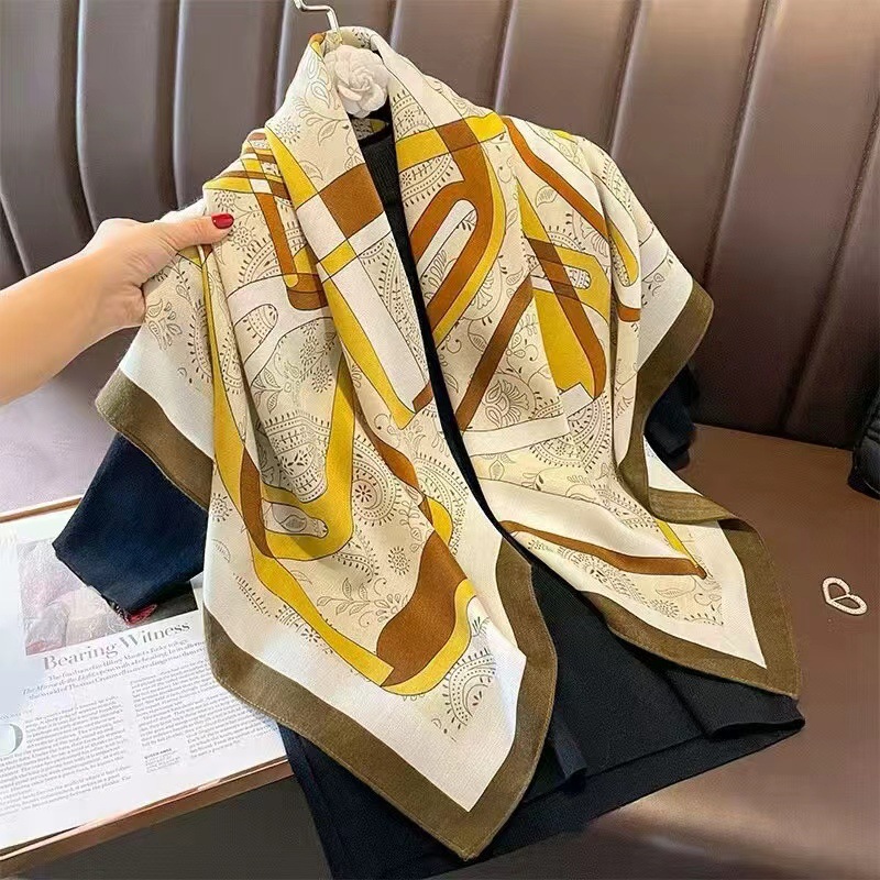프린트 능직 90cm 정사각형 스카프 시뮬레이션 실크 스카프 일본과 한국 대외 무역 대형 사각형 스카프 인터넷 연예인 유행 다기능 숄 스카프