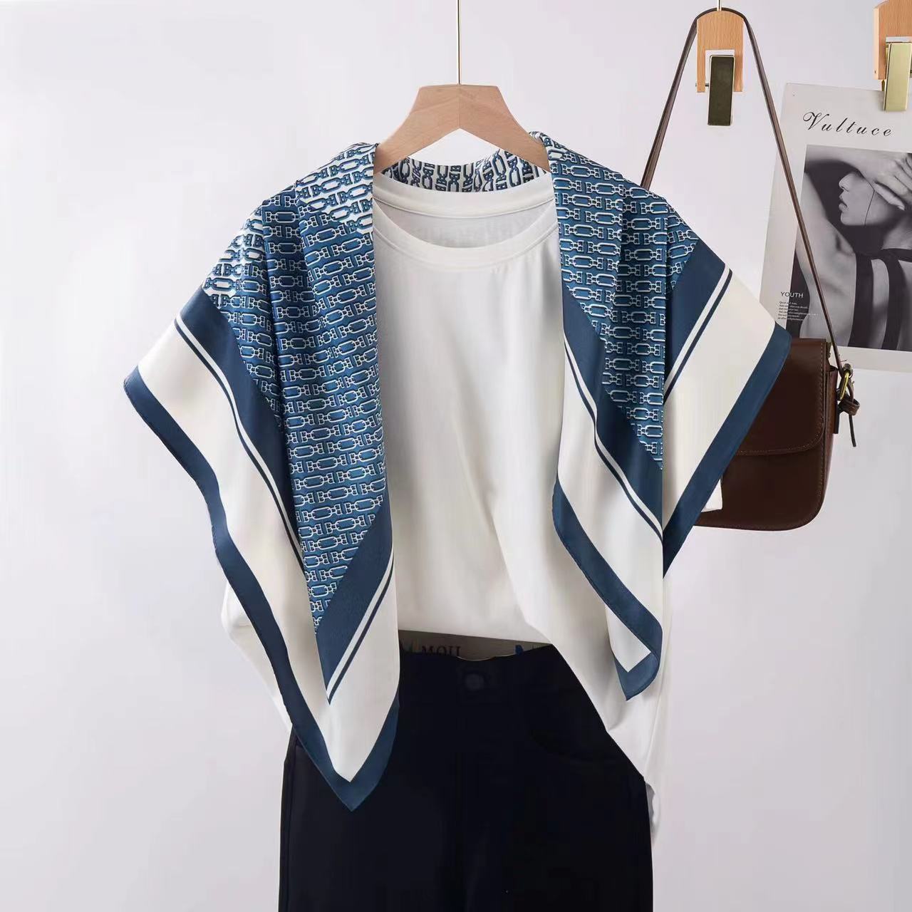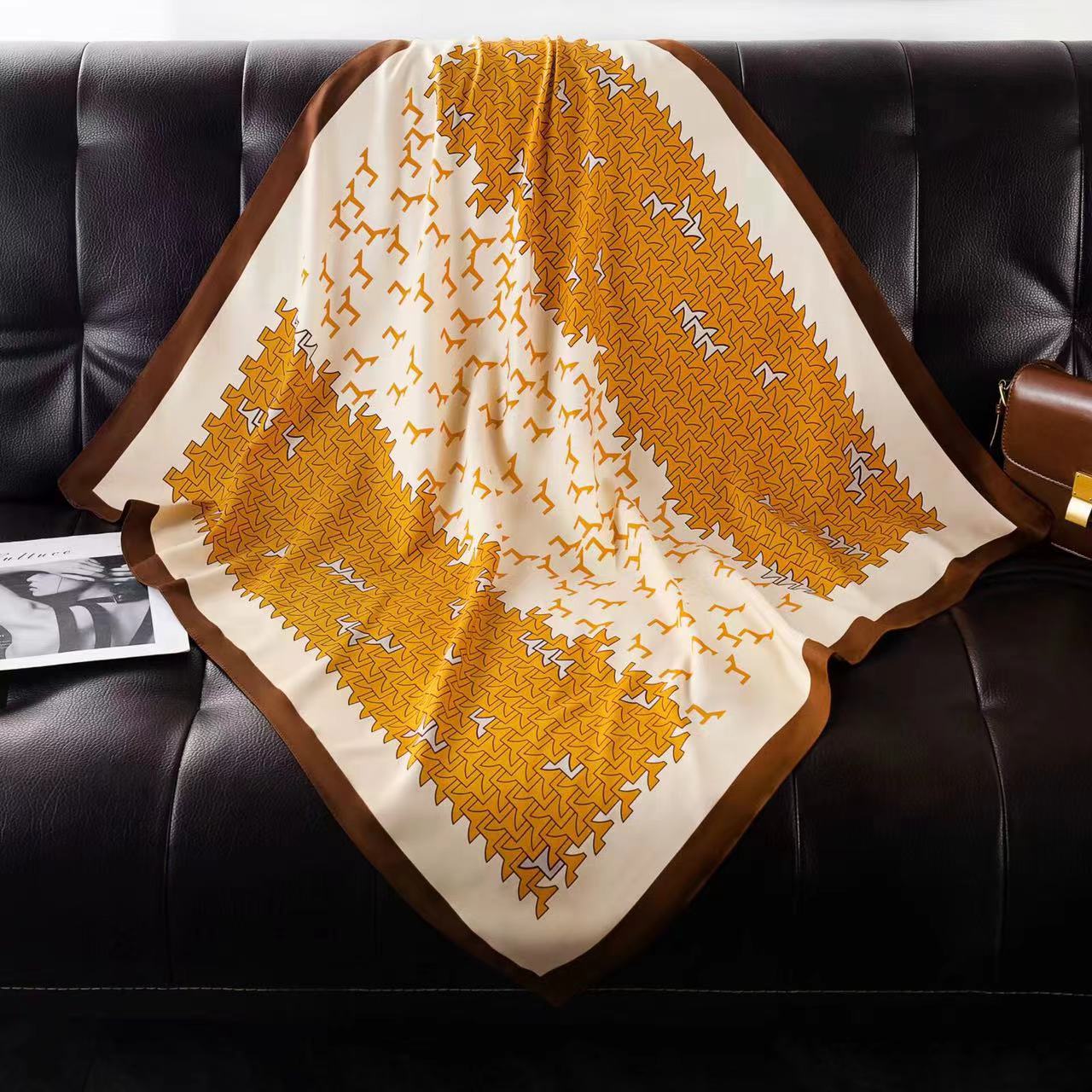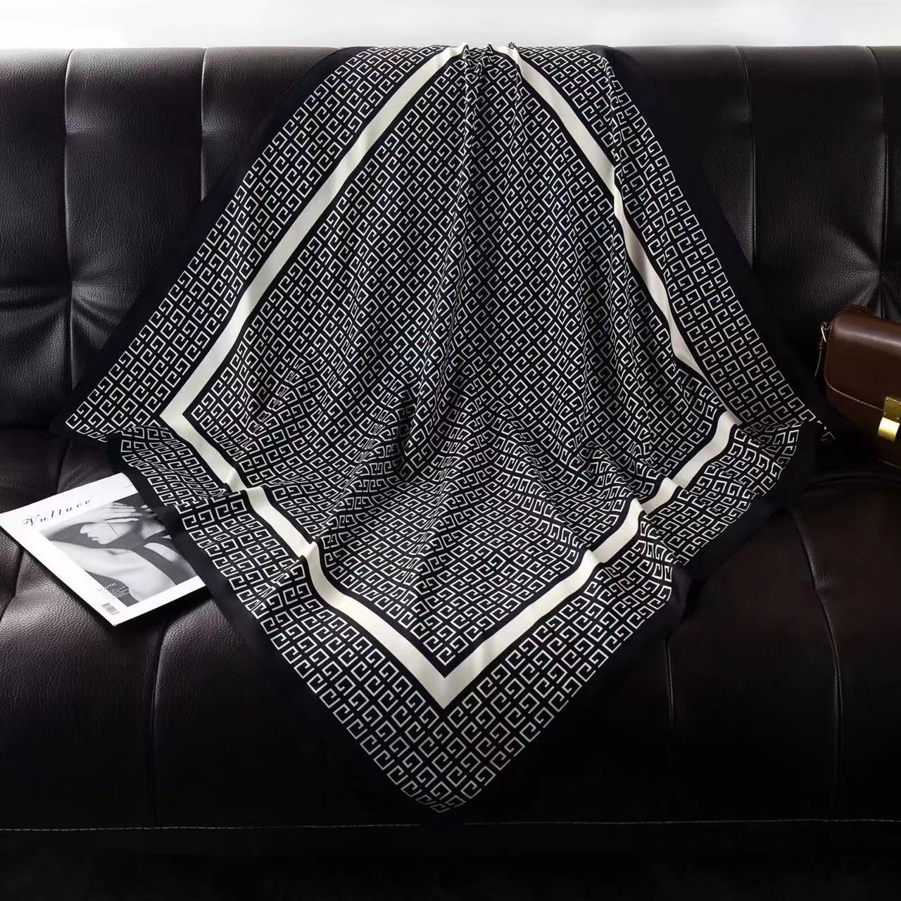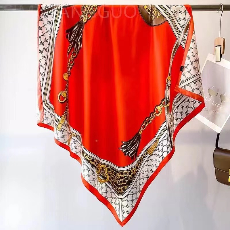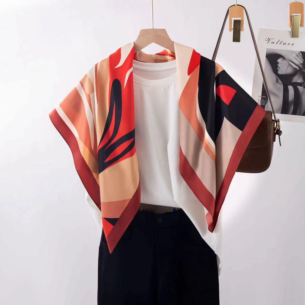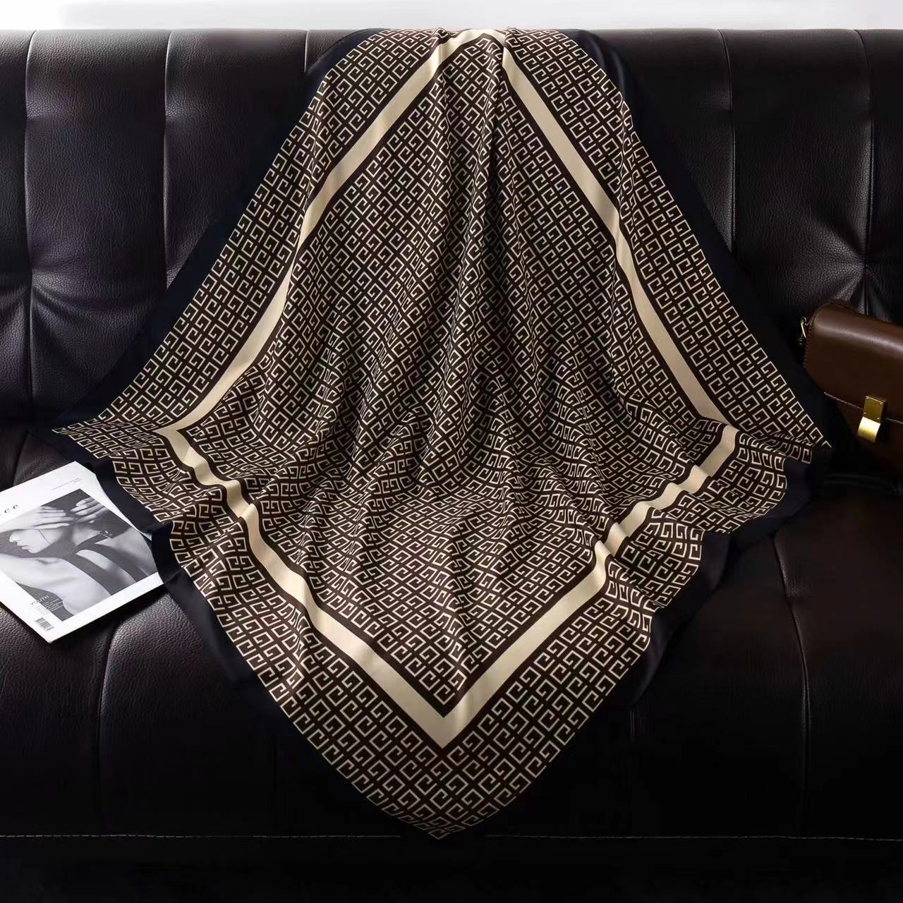 프린트 능직 90cm 정사각형 스카프 시뮬레이션 실크 스카프 일본과 한국 대외 무역 대형 사각형 스카프 인터넷 연예인 유행 다기능 숄 스카프