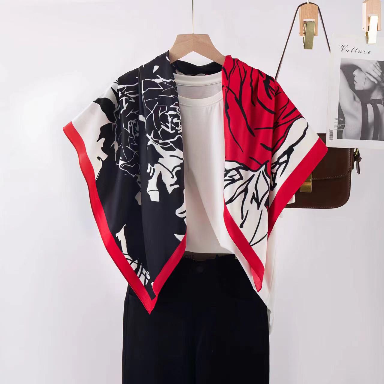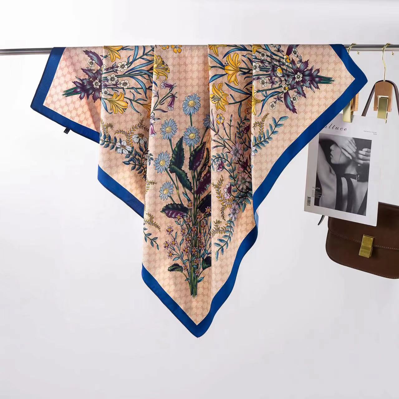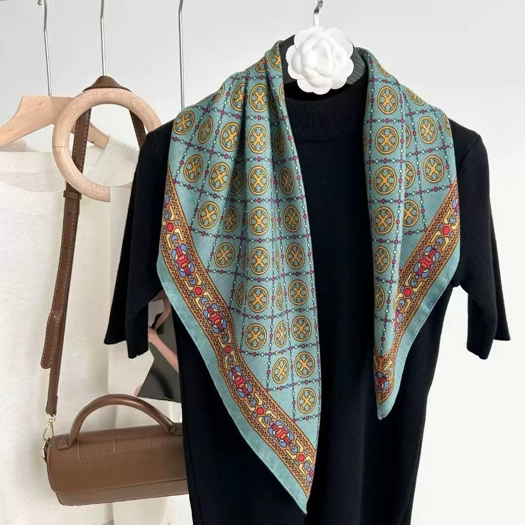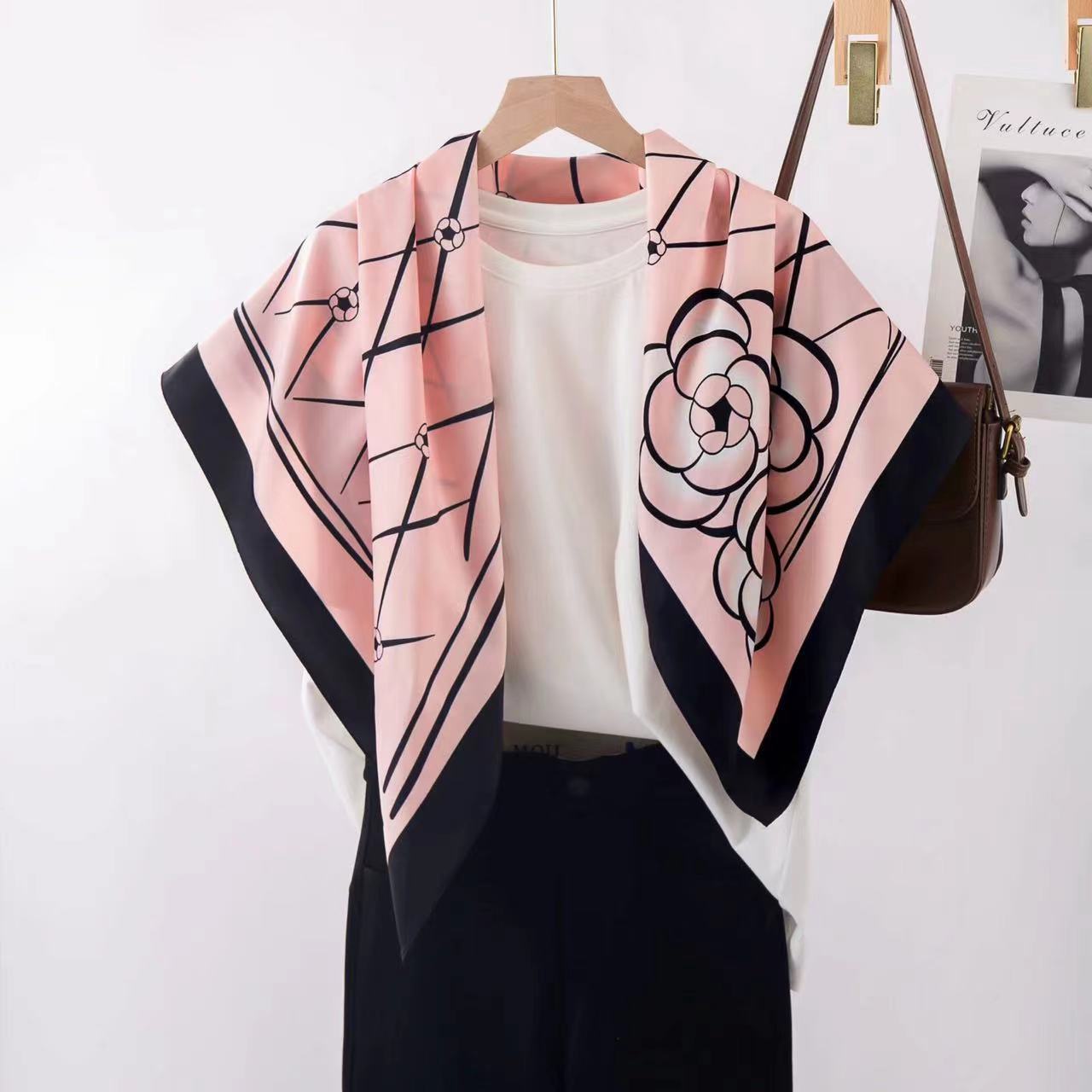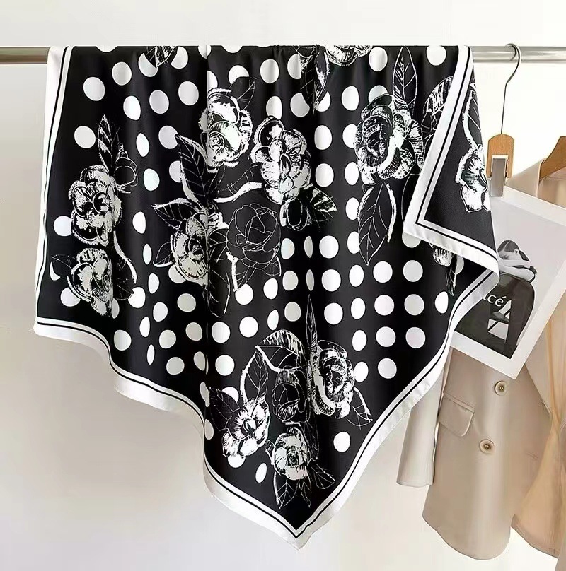 프린트 능직 90cm 정사각형 스카프 시뮬레이션 실크 스카프 일본과 한국 대외 무역 대형 사각형 스카프 인터넷 연예인 유행 다기능 숄 스카프