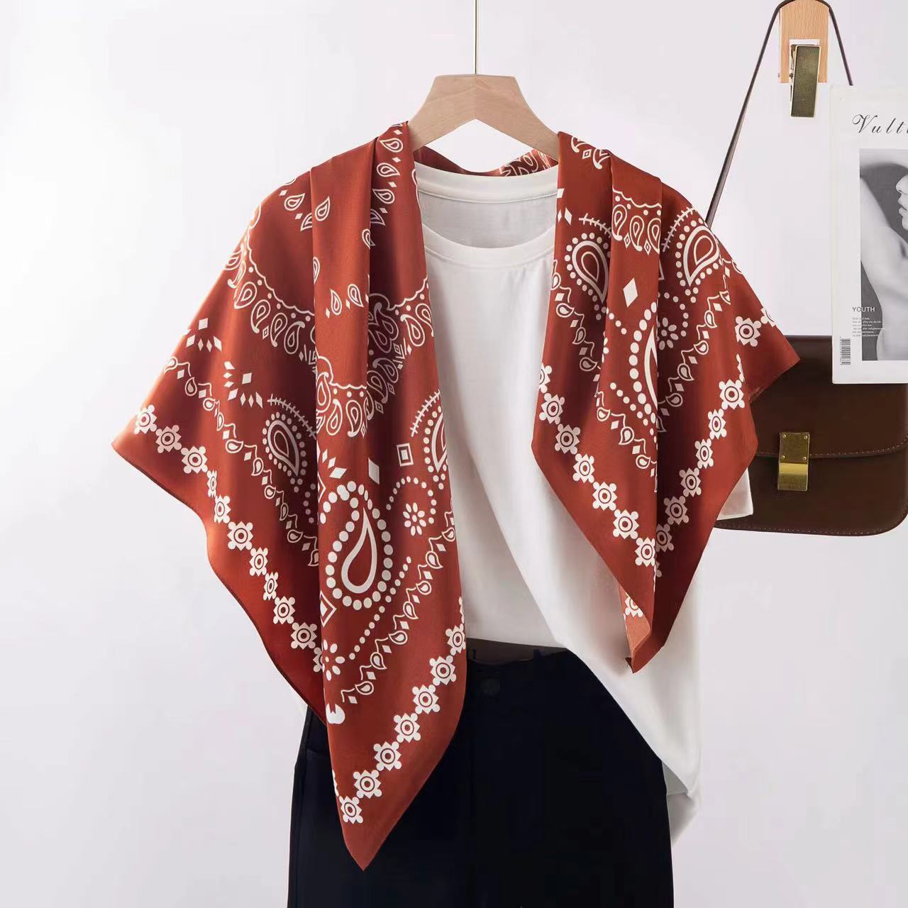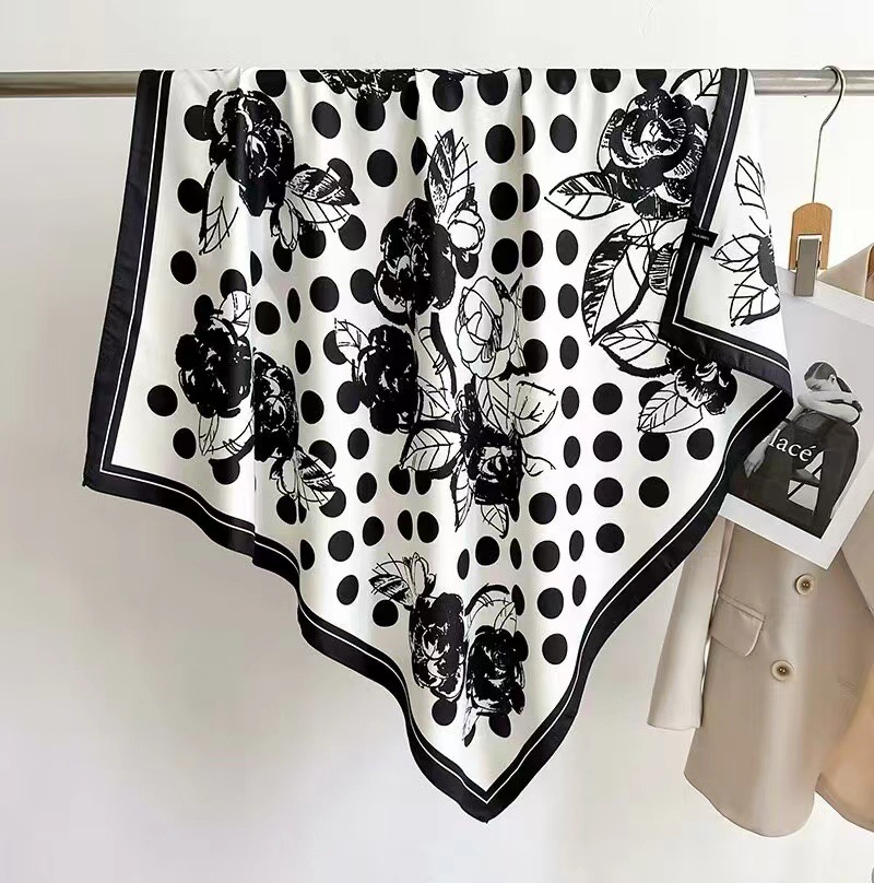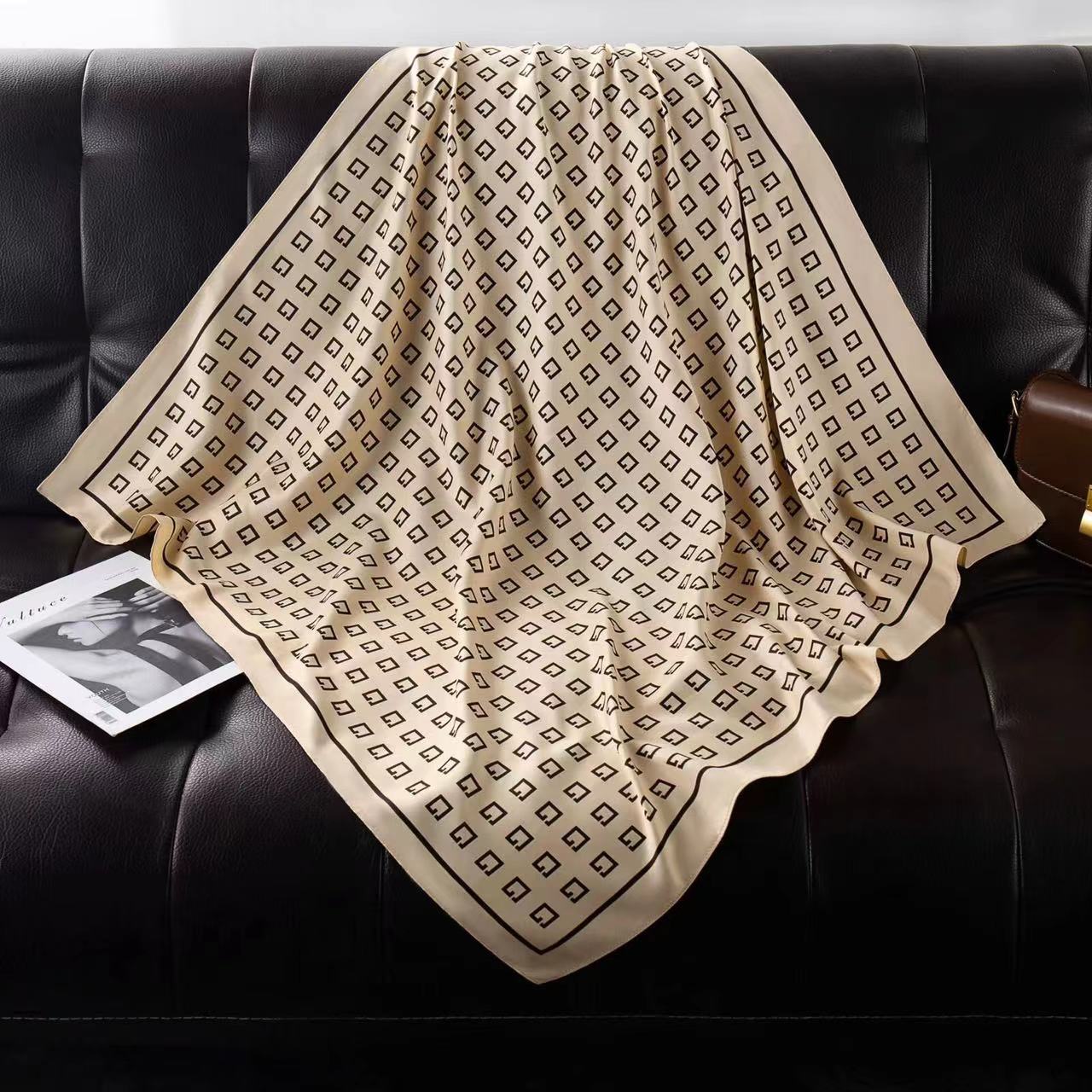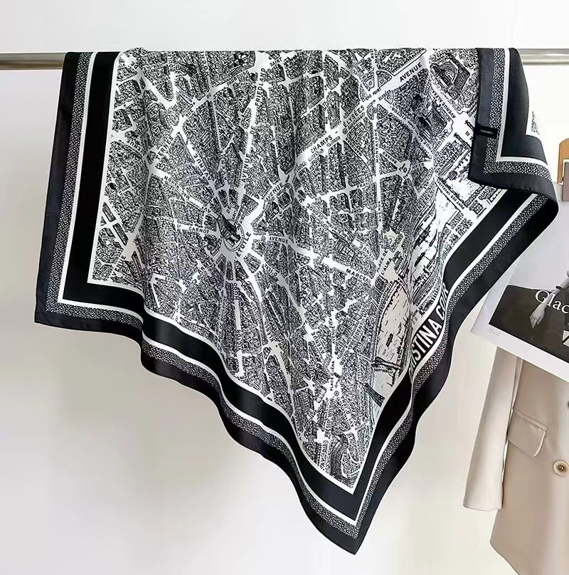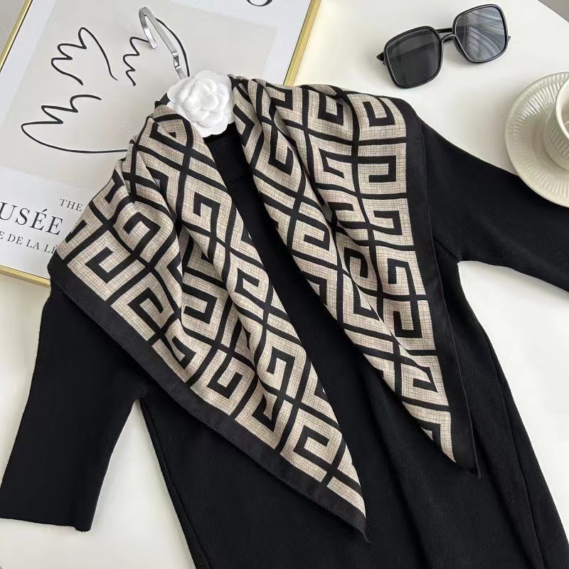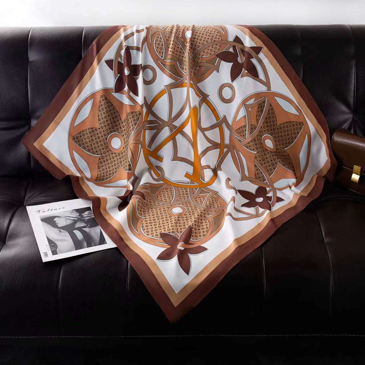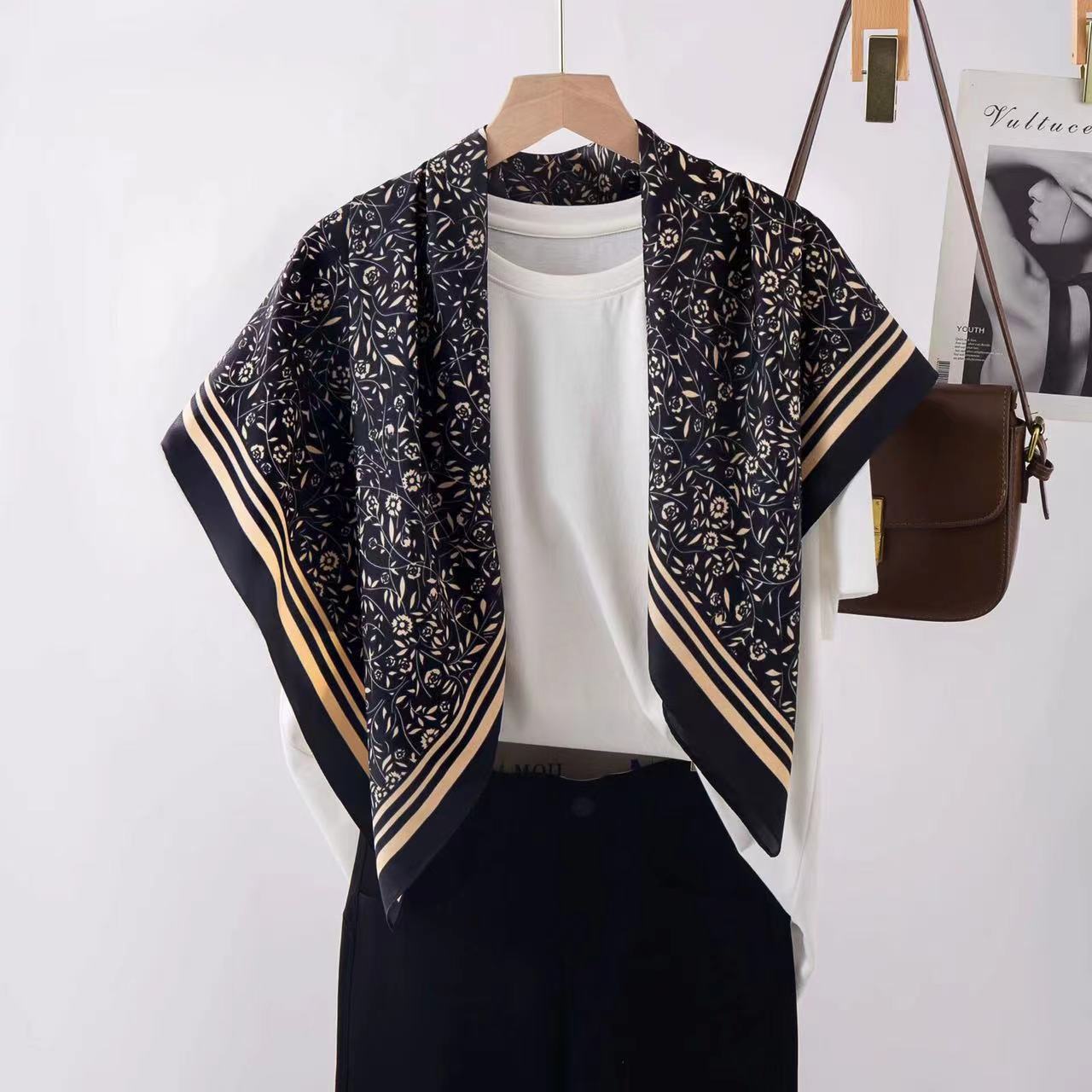 프린트 능직 90cm 정사각형 스카프 시뮬레이션 실크 스카프 일본과 한국 대외 무역 대형 사각형 스카프 인터넷 연예인 유행 다기능 숄 스카프