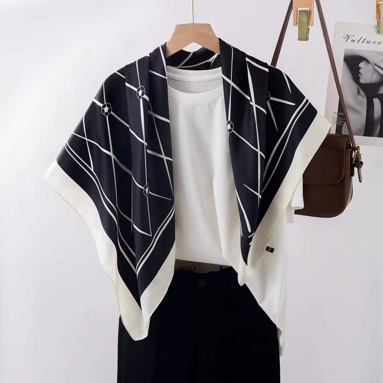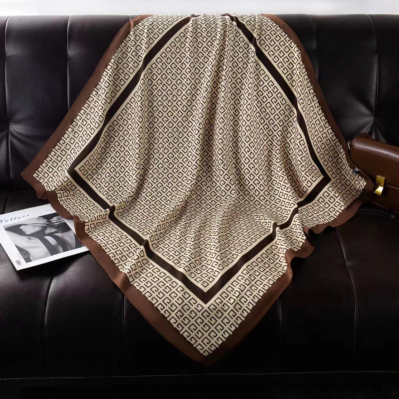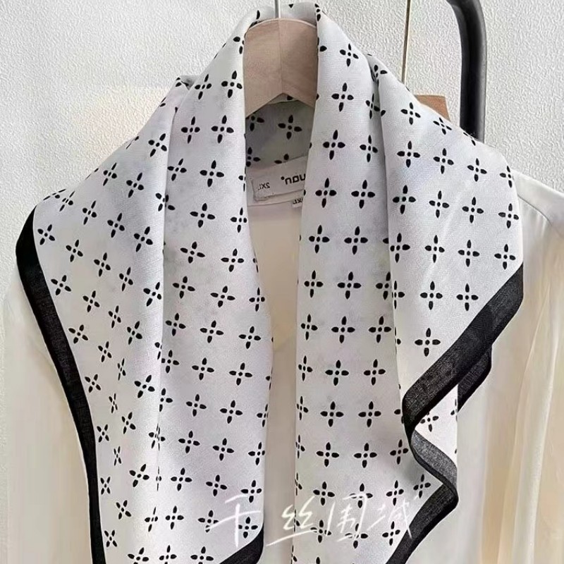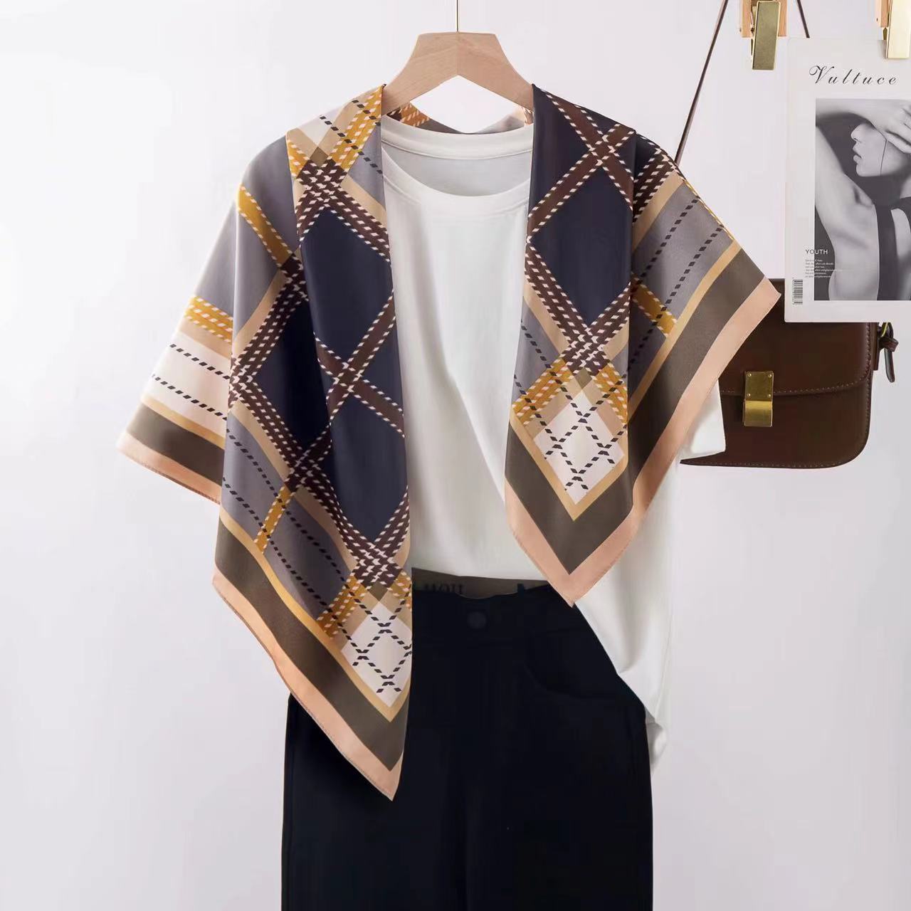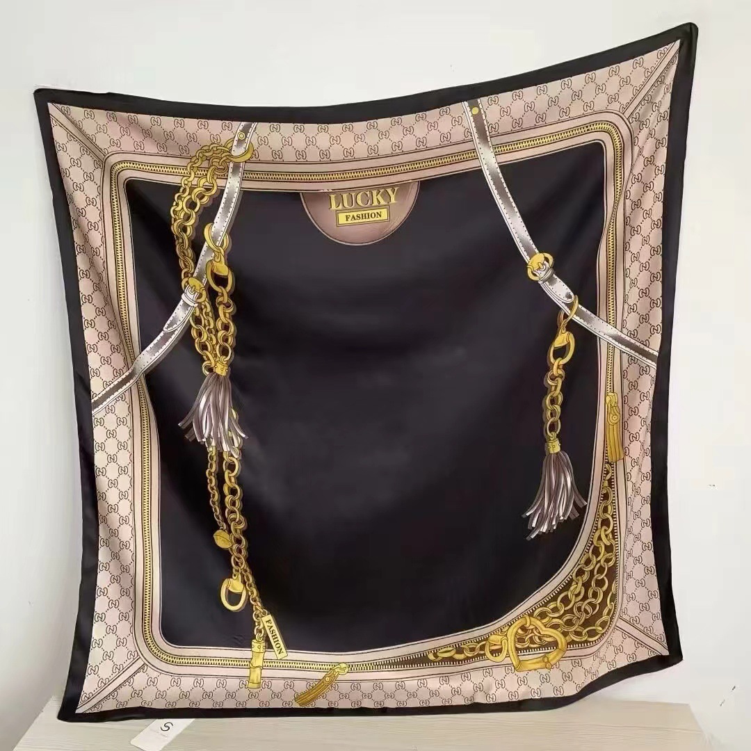 프린트 능직 90cm 정사각형 스카프 시뮬레이션 실크 스카프 일본과 한국 대외 무역 대형 사각형 스카프 인터넷 연예인 유행 다기능 숄 스카프