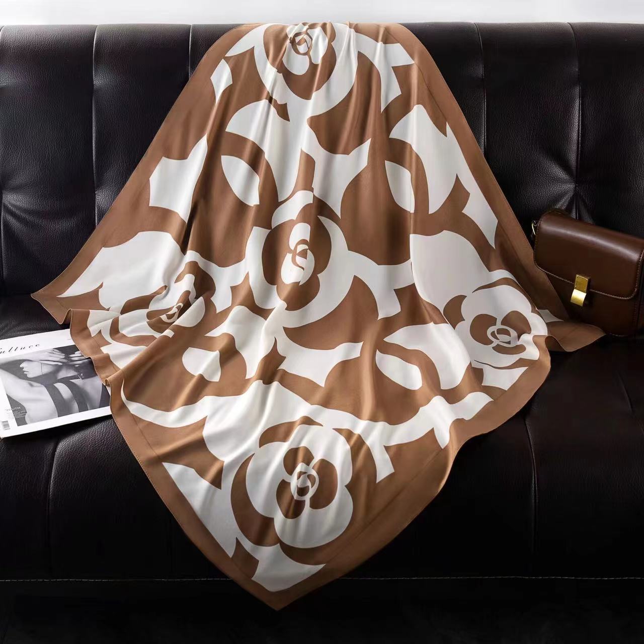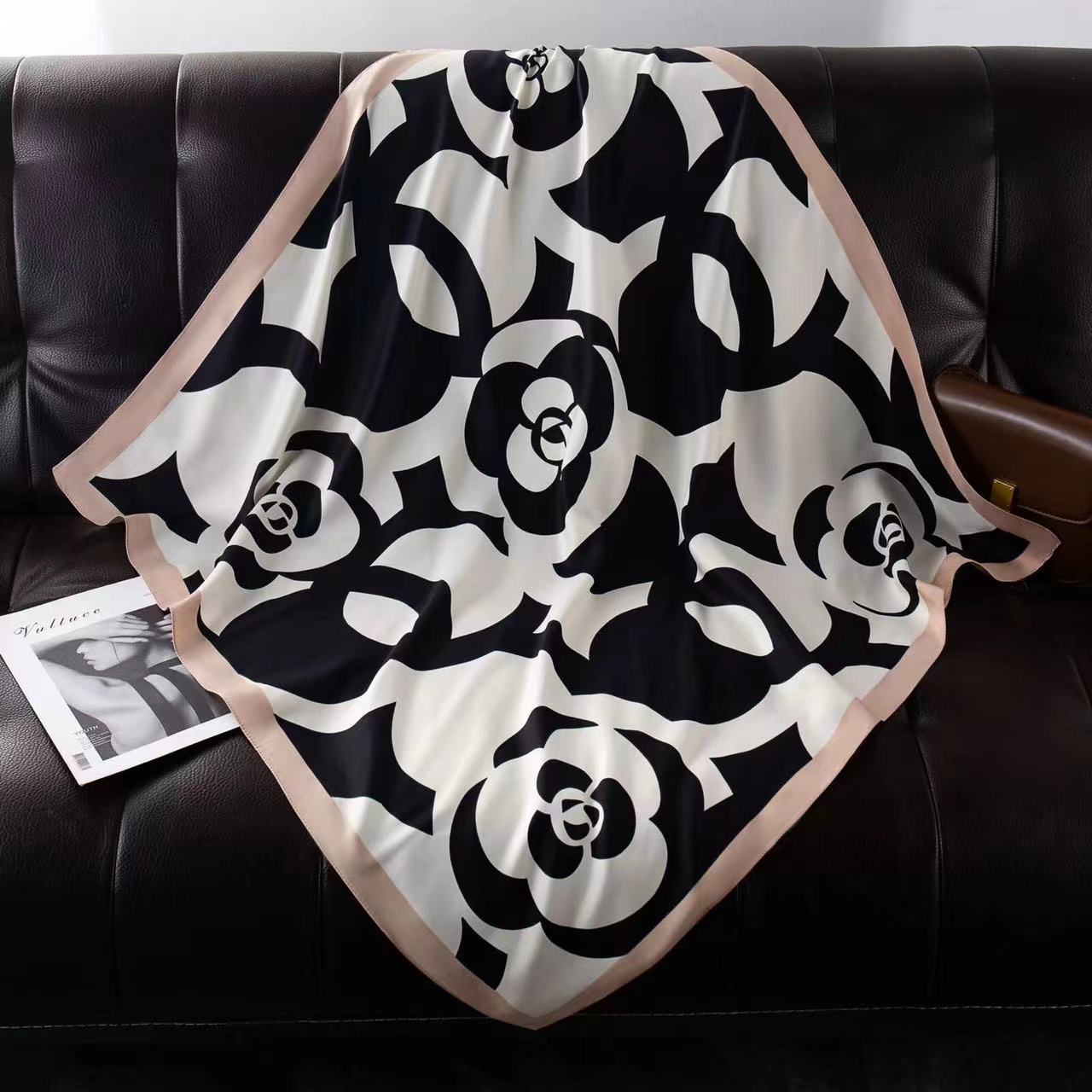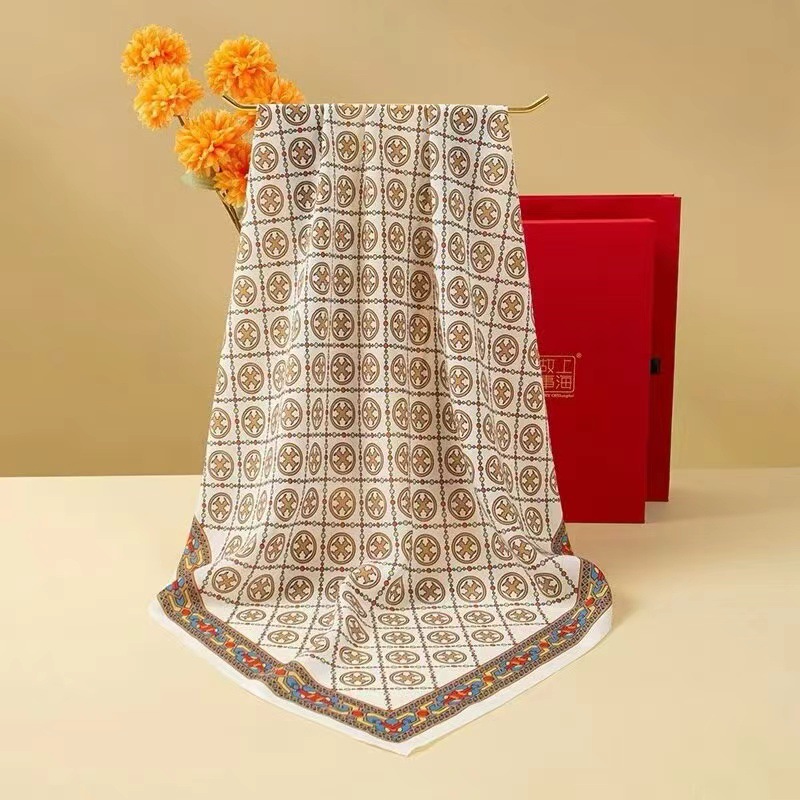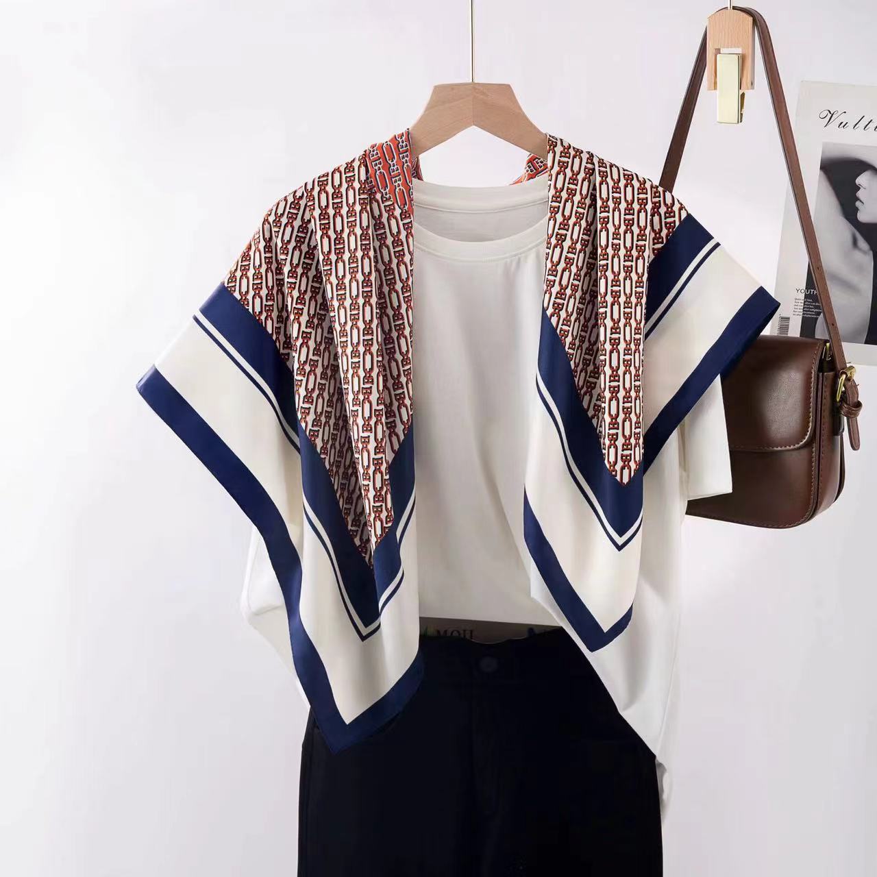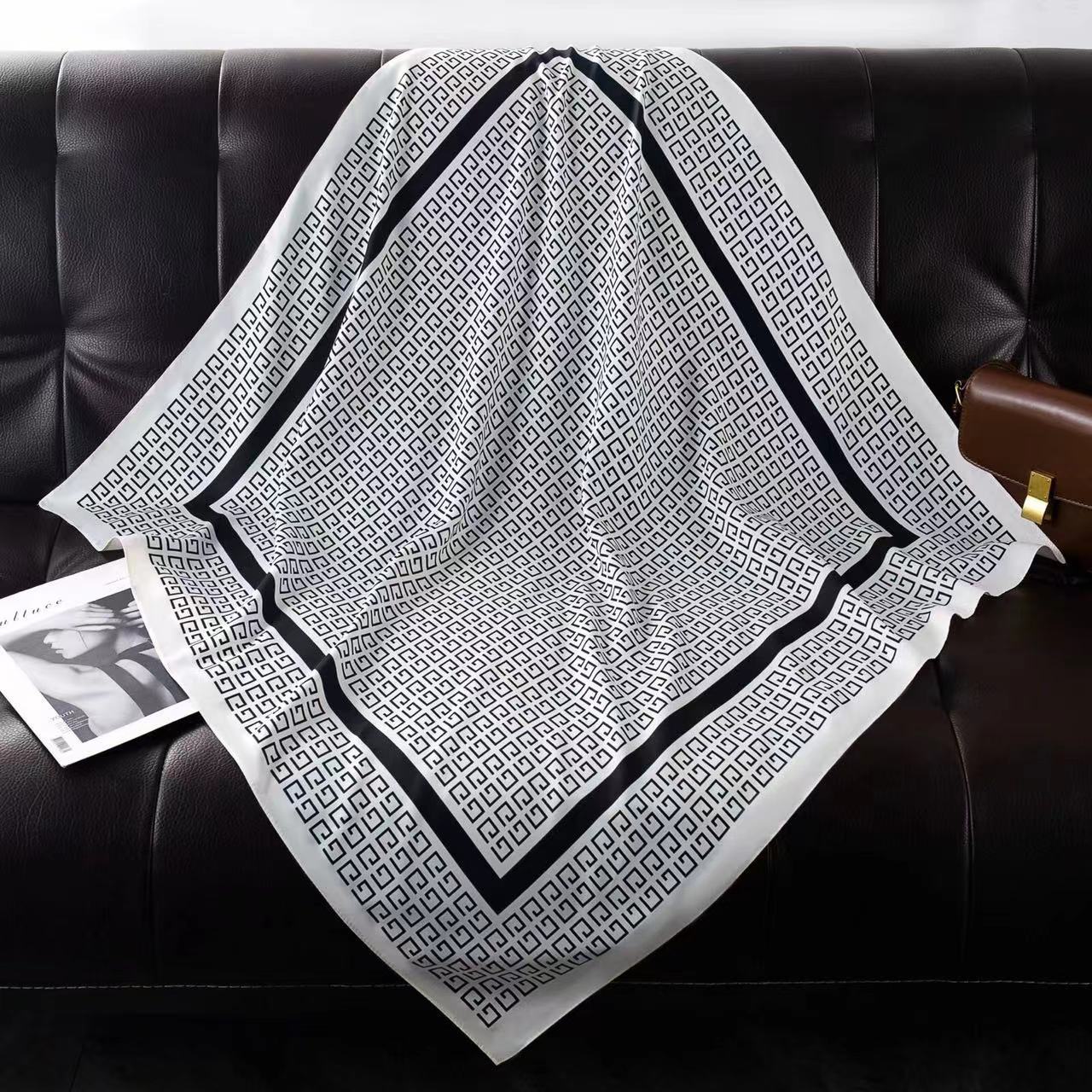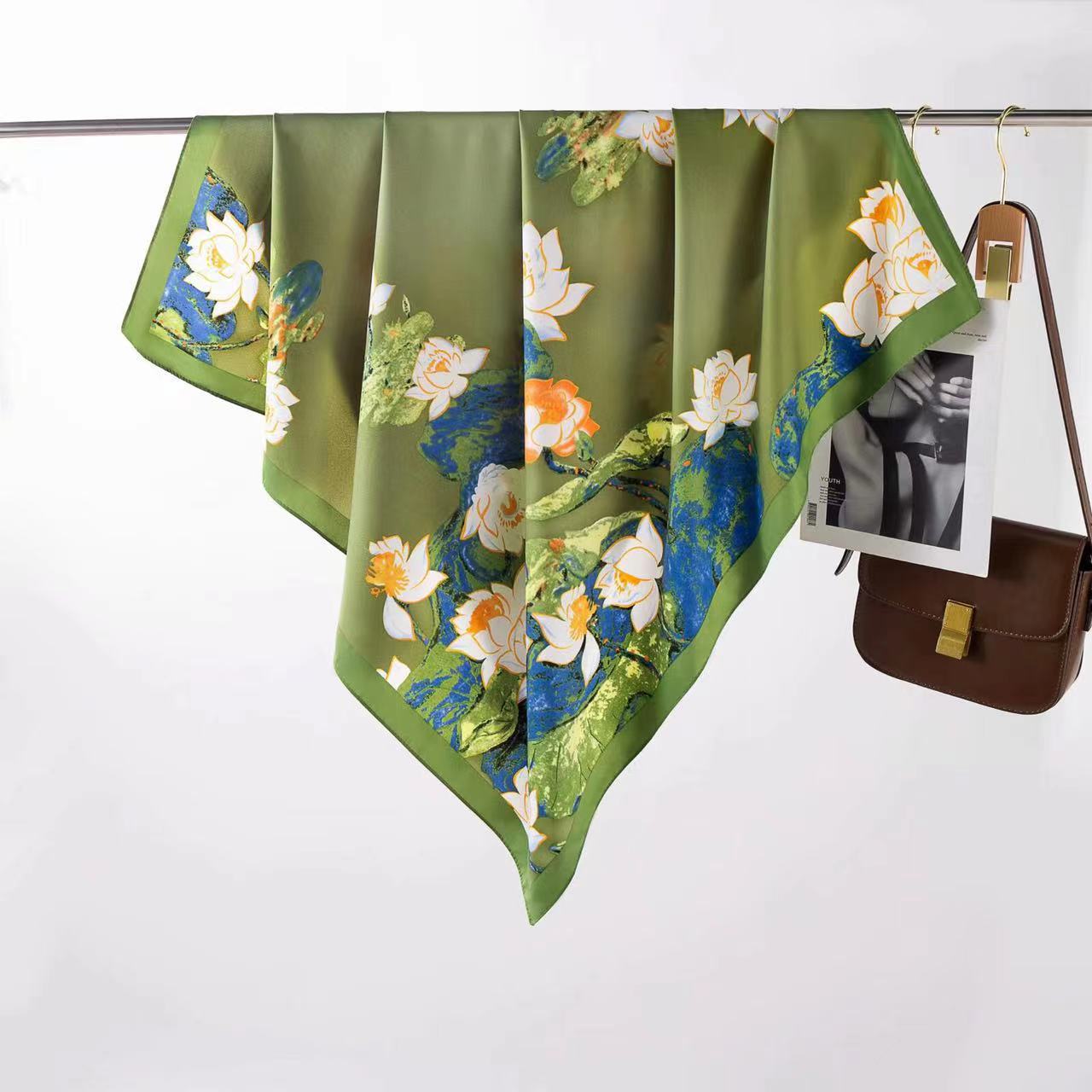 프린트 능직 90cm 정사각형 스카프 시뮬레이션 실크 스카프 일본과 한국 대외 무역 대형 사각형 스카프 인터넷 연예인 유행 다기능 숄 스카프
