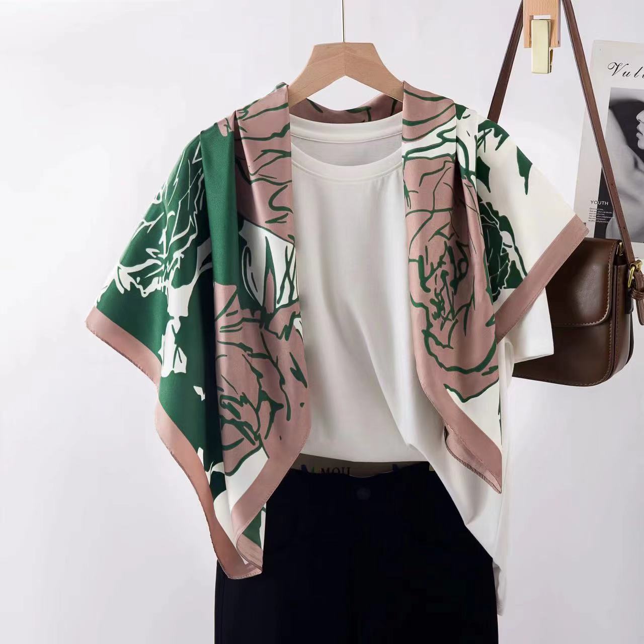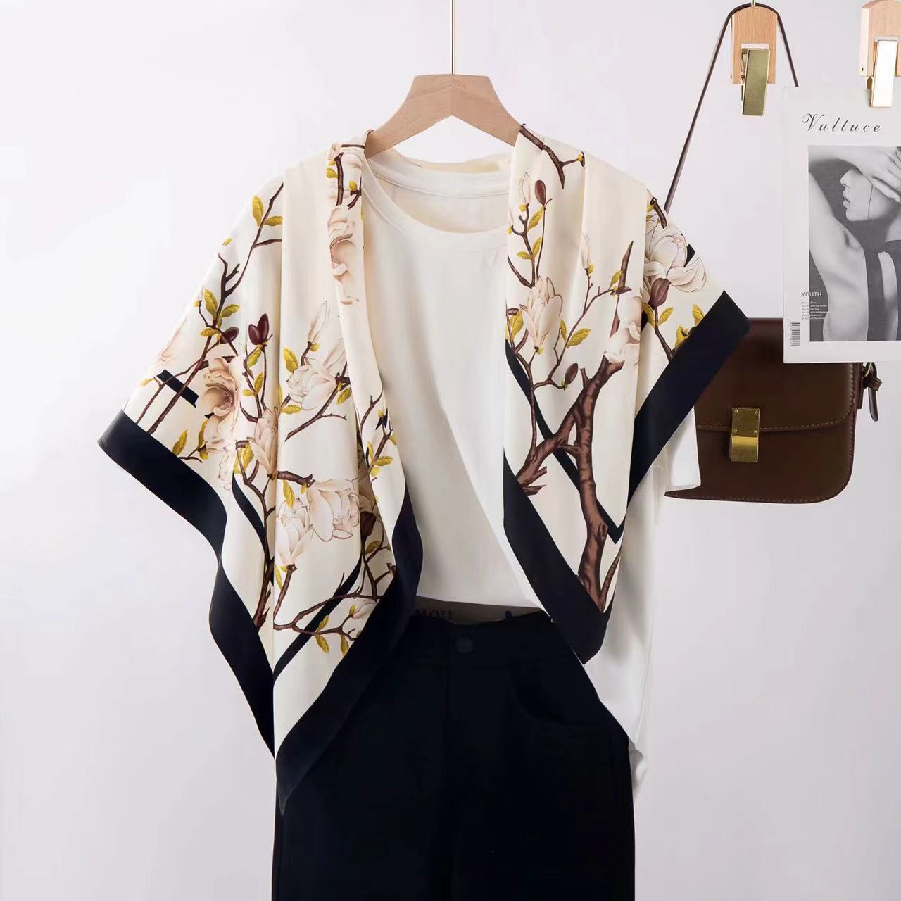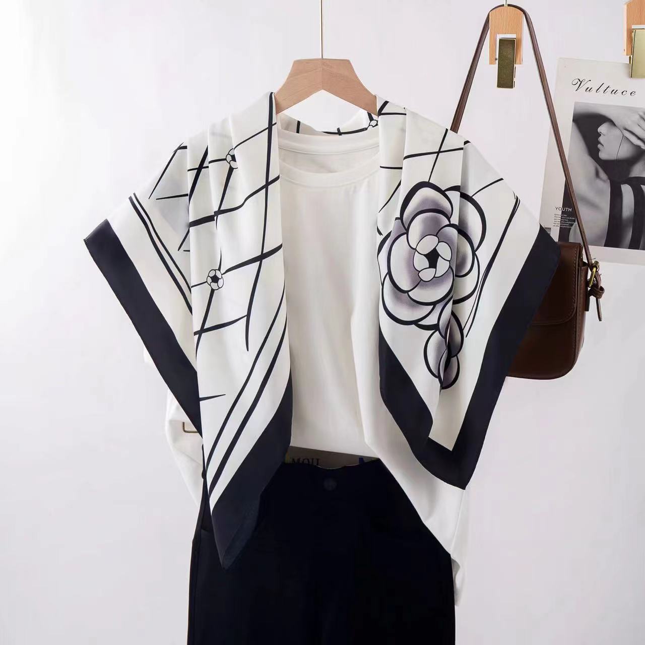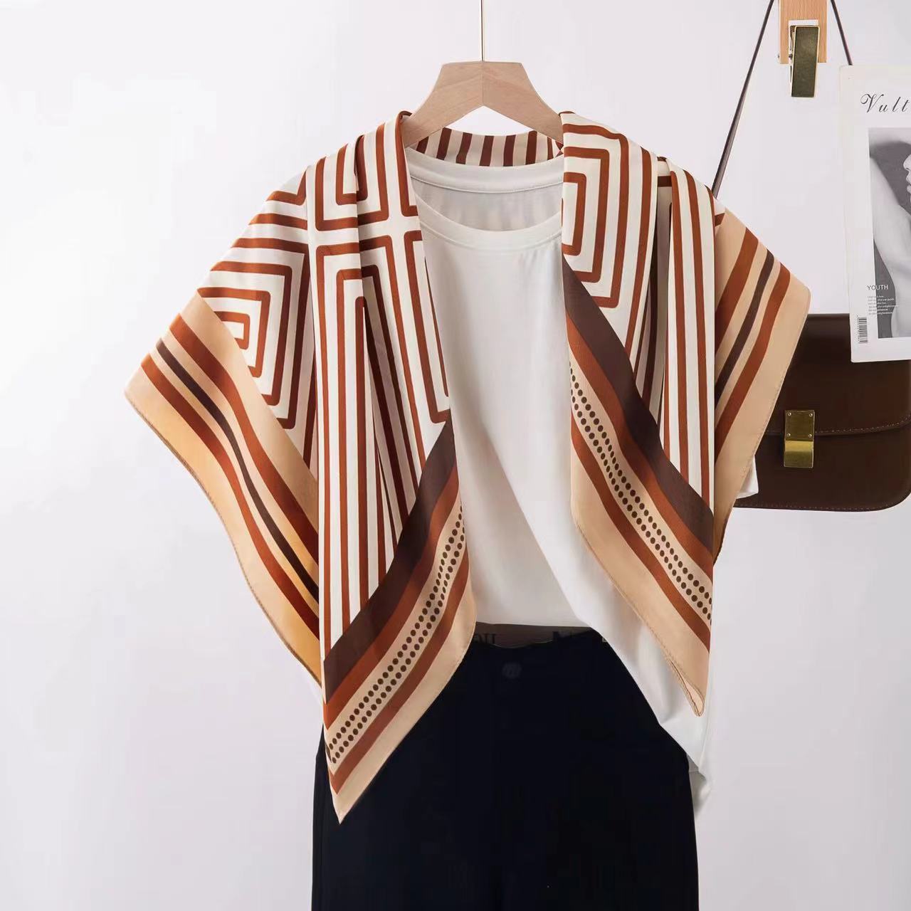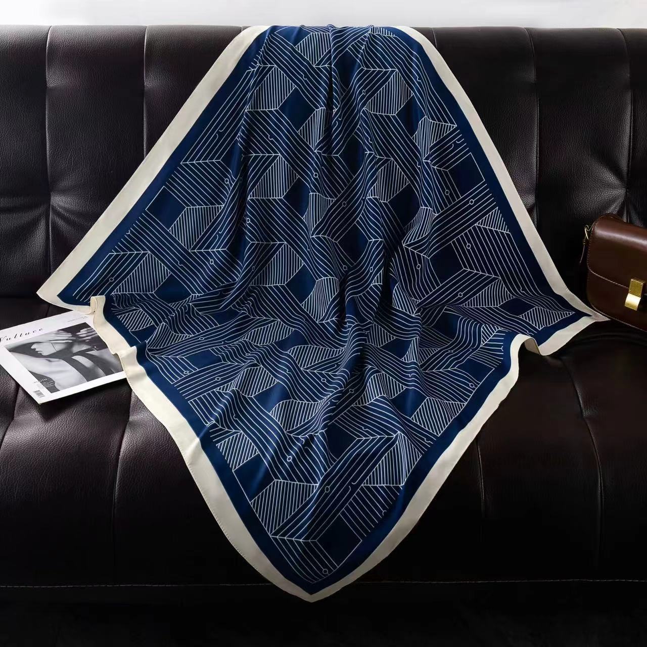 프린트 능직 90cm 정사각형 스카프 시뮬레이션 실크 스카프 일본과 한국 대외 무역 대형 사각형 스카프 인터넷 연예인 유행 다기능 숄 스카프