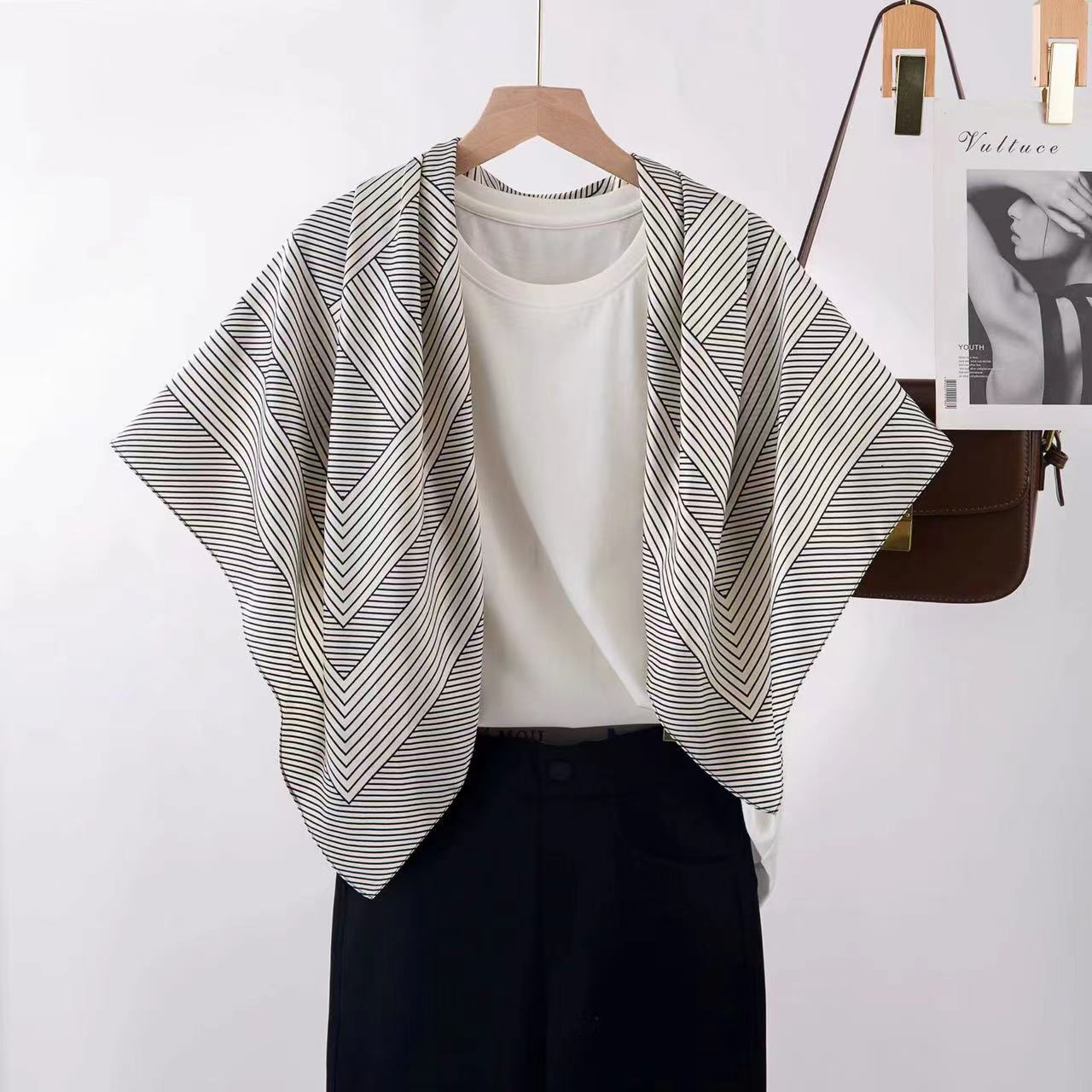 • 스트라이프 스퀘어 화이트 트윌 스퀘어 스카프