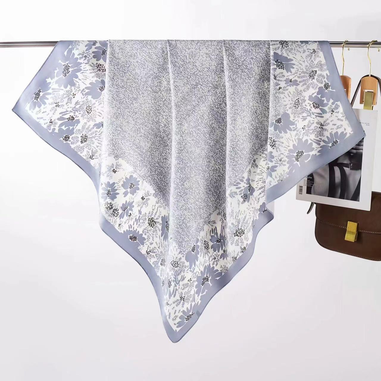 • 작은 국화 그레이 트윌 스퀘어 스카프
