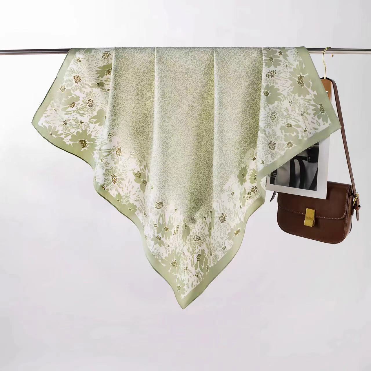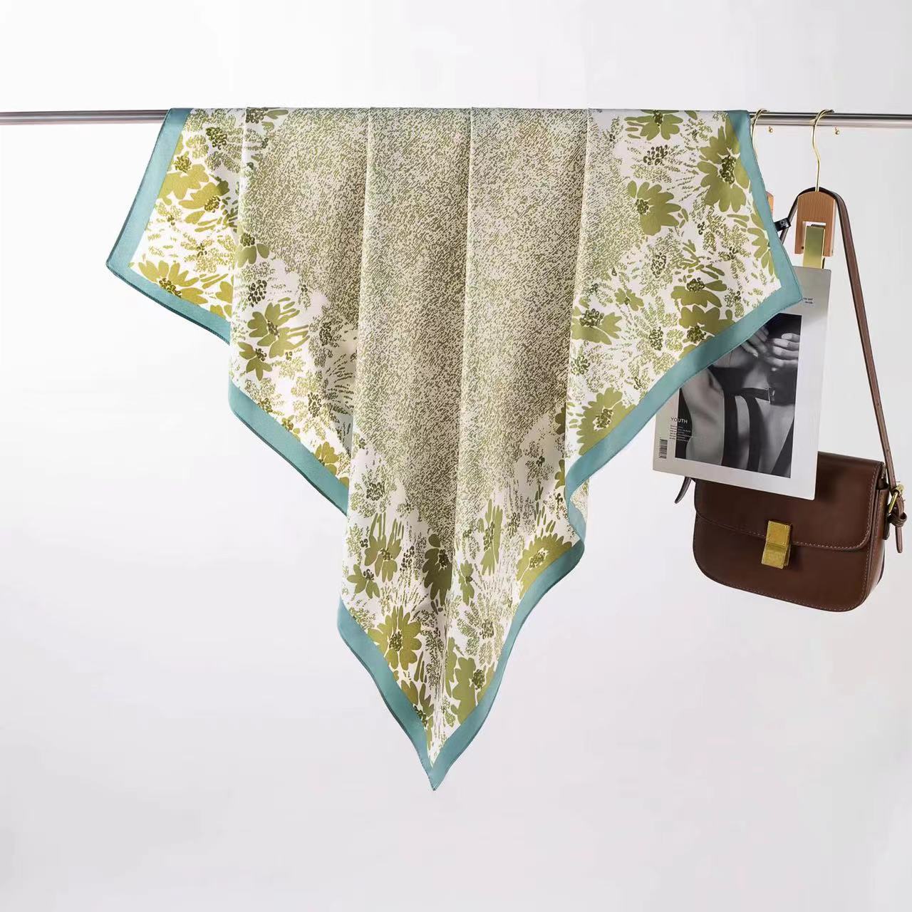• 작은 국화 그린 트윌 스퀘어 스카프