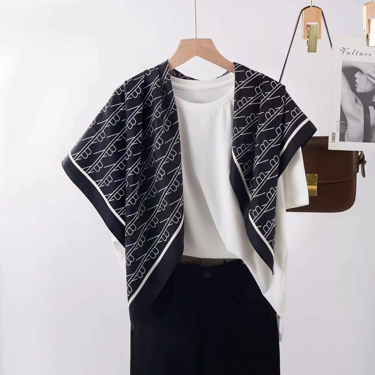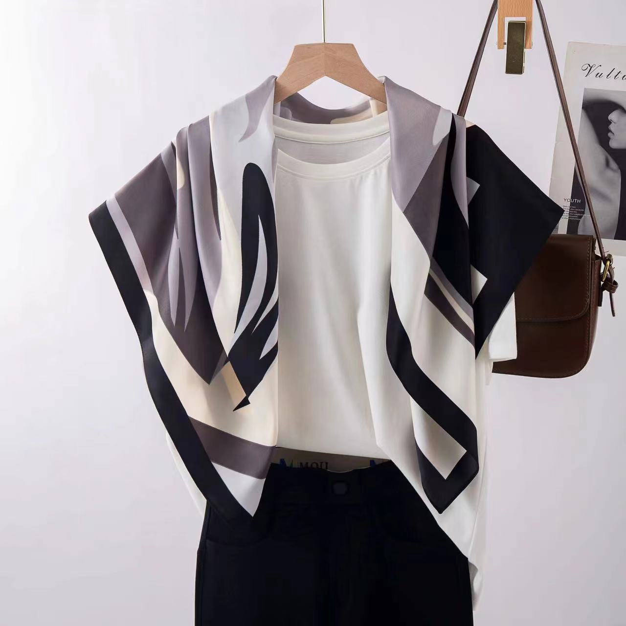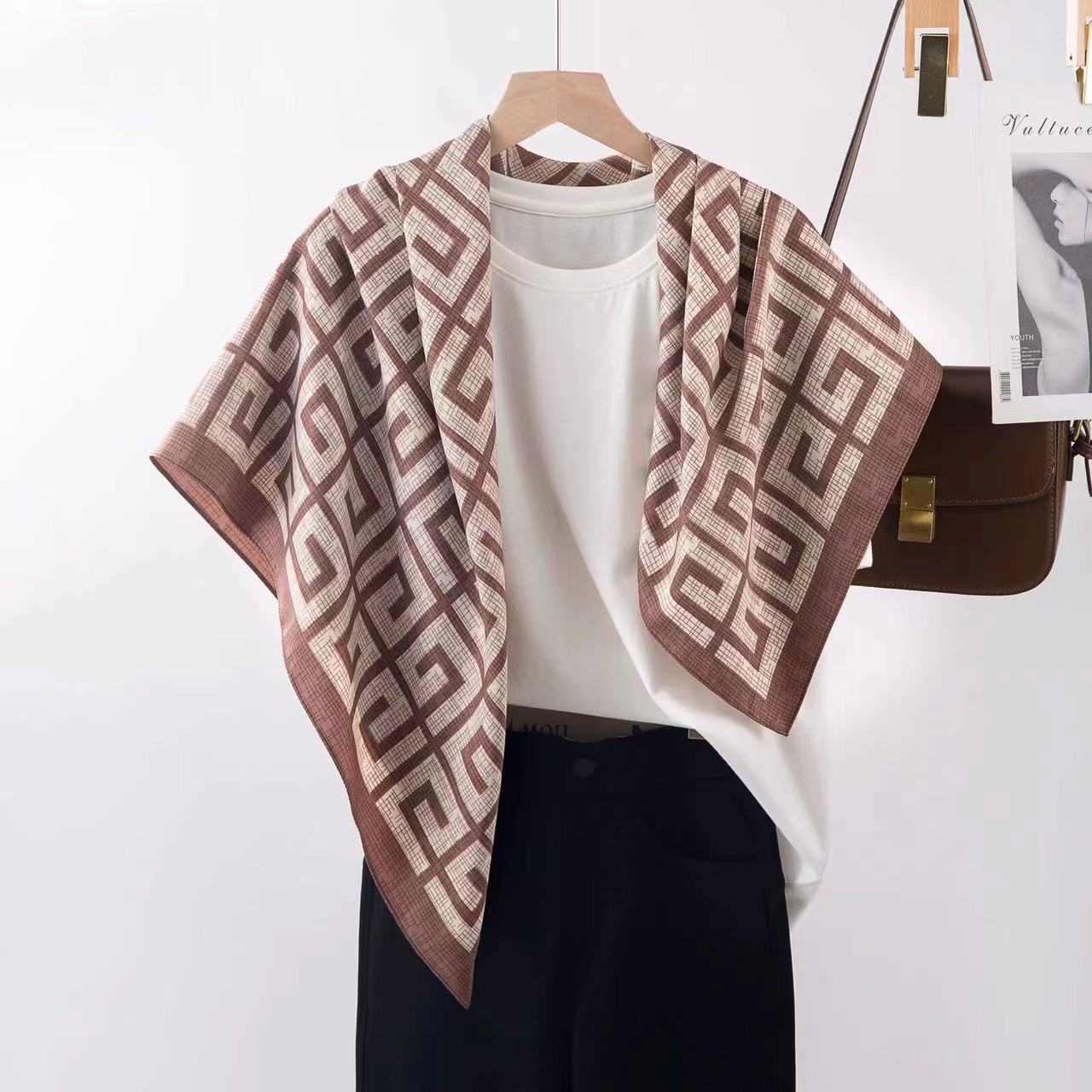 프린트 능직 90cm 정사각형 스카프 시뮬레이션 실크 스카프 일본과 한국 대외 무역 대형 사각형 스카프 인터넷 연예인 유행 다기능 숄 스카프스토어 가기