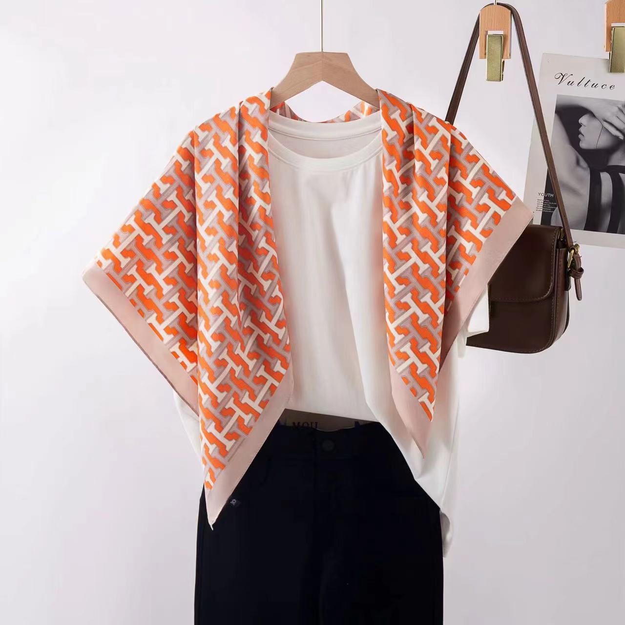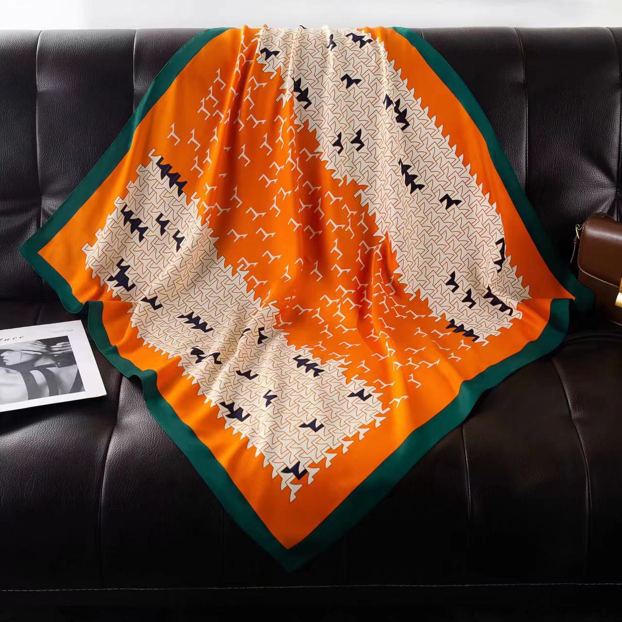 • H 글자 오렌지 트윌 스퀘어 스카프