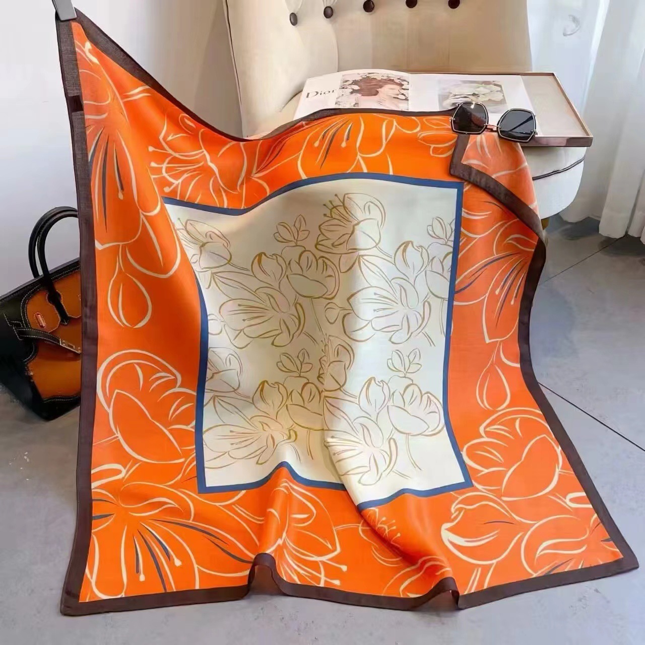 • 오렌지 플로럴 트윌 스퀘어 스카프