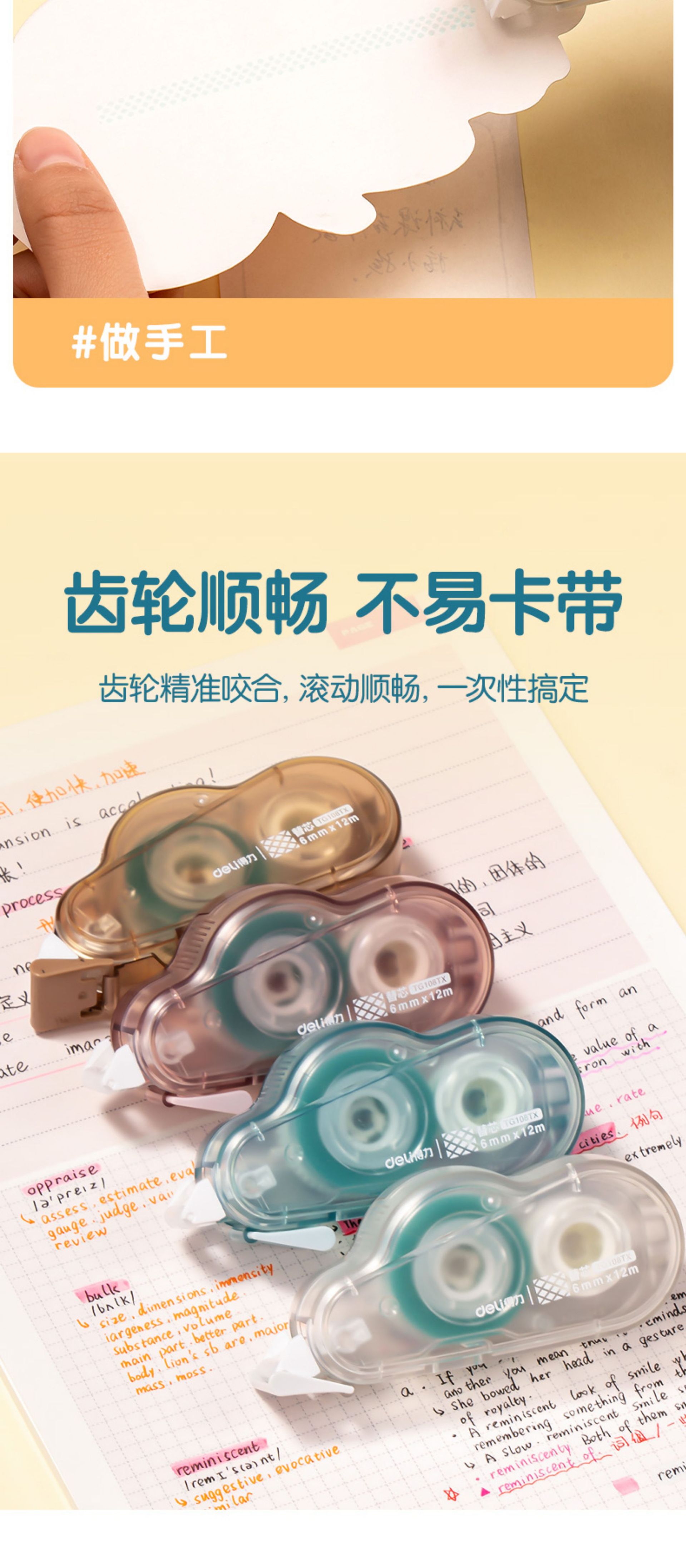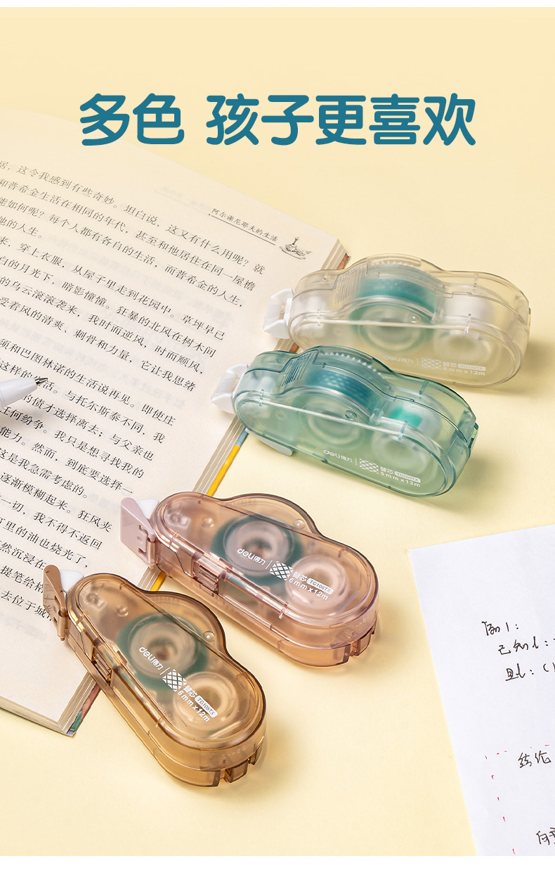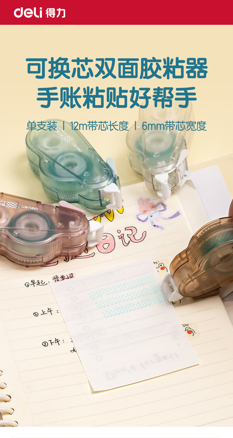 델리 TG108 양면 접착제 6mm 도트 접착제 신선한 사무실 컴팩트하고 편리한 12 미터 교체 코어 테이프 손 계정