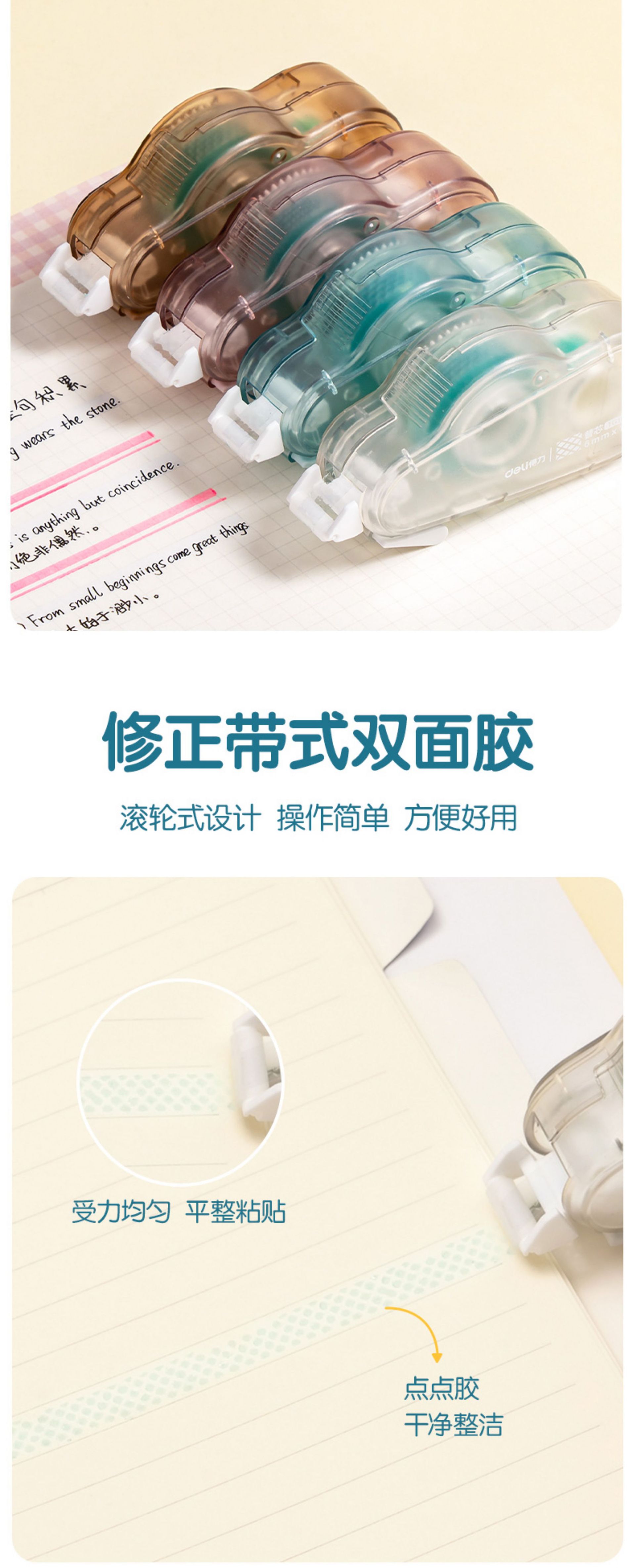 델리 TG108 양면 접착제 6mm 도트 접착제 신선한 사무실 컴팩트하고 편리한 12 미터 교체 코어 테이프 손 계정스토어 가기