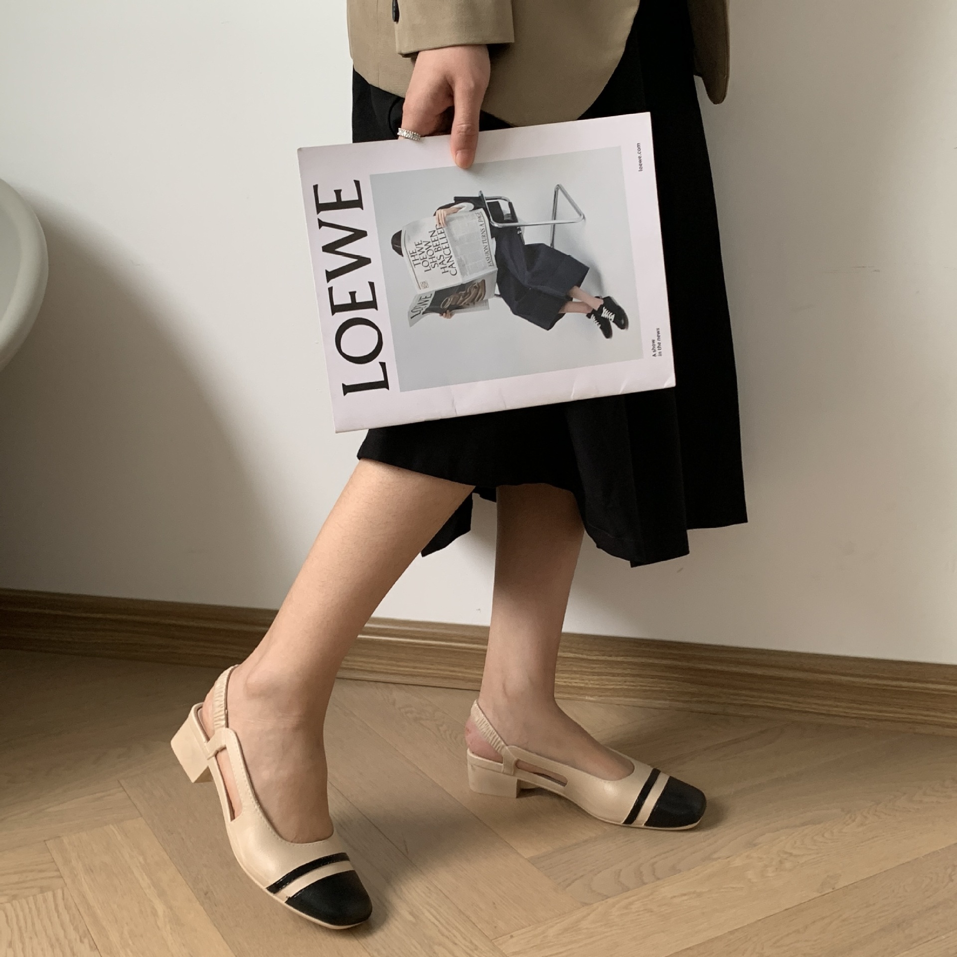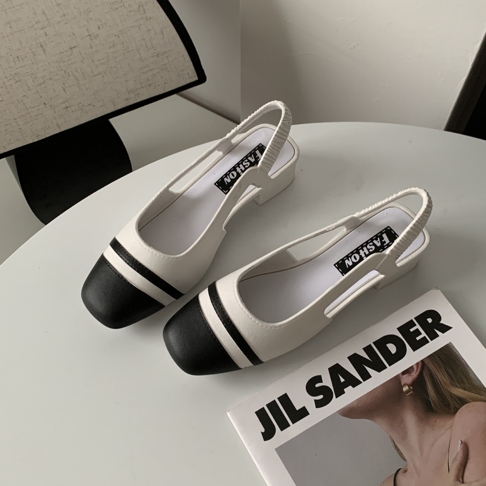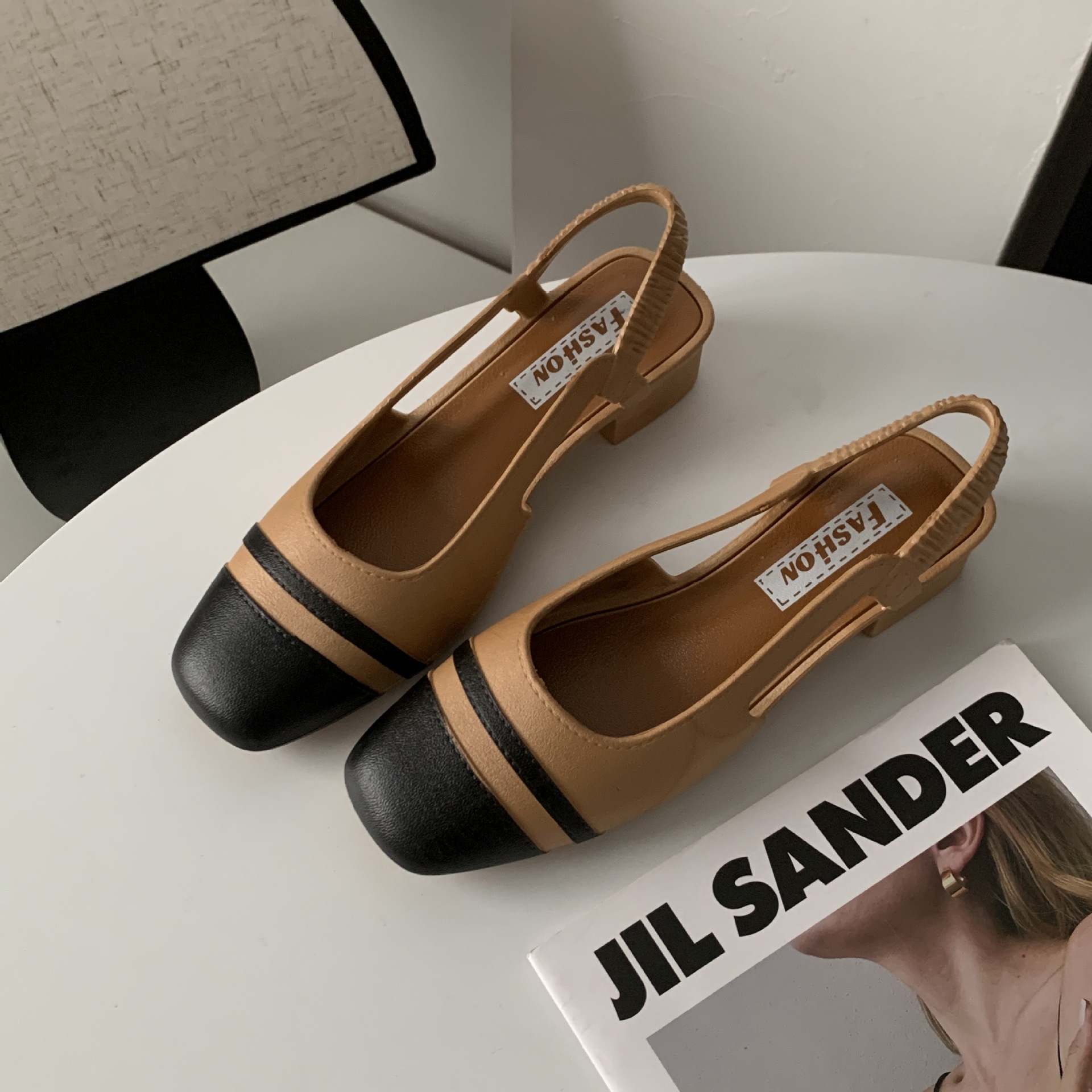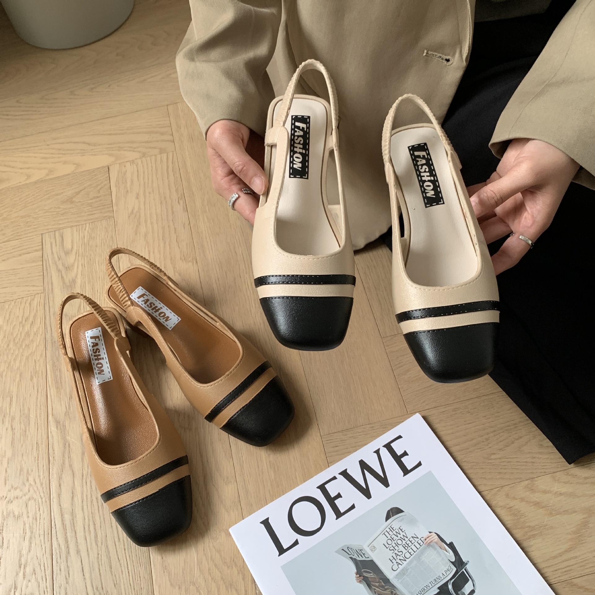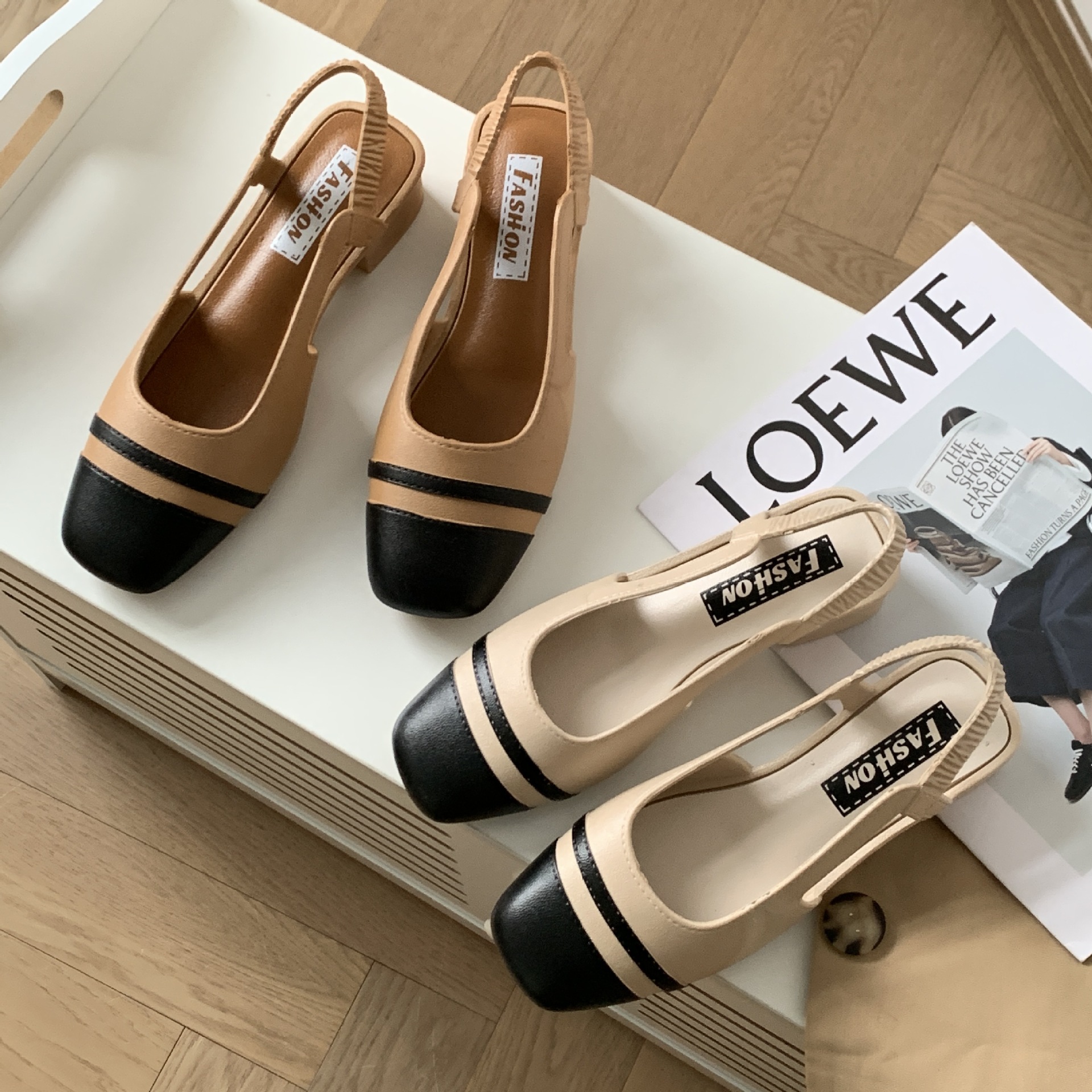 새로운 여성 신발 여름 캐주얼 패션 샌들 라운드 발가락 컬러 블록 매일 외신 로우 힐 세트 발가락 여성용 샌들