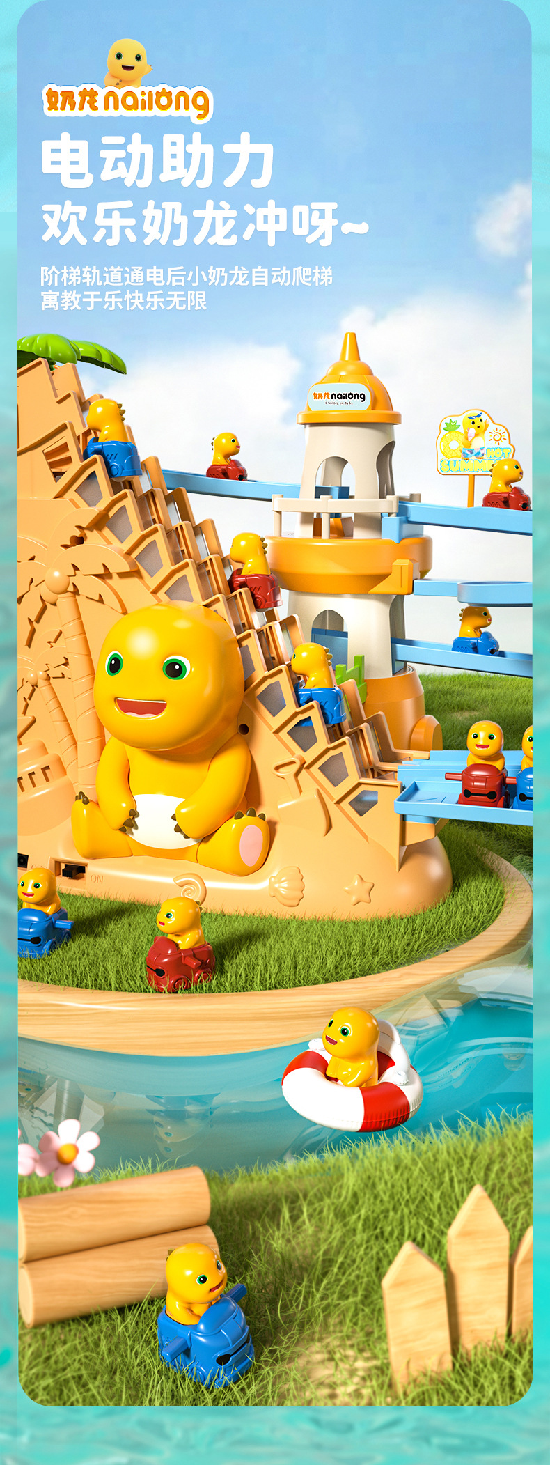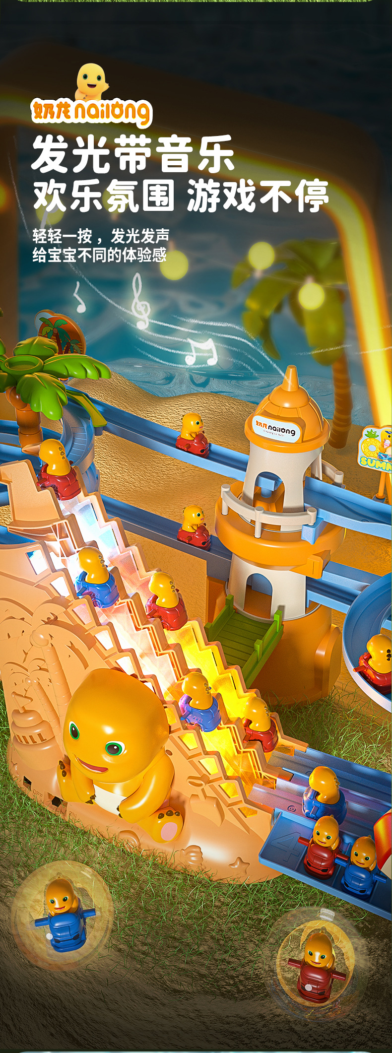 6 월 1 일 선물 정품 밀크 드래곤 계단 오르기 장난감 오리 슬라이드 트랙 주차장 교육 장난감
