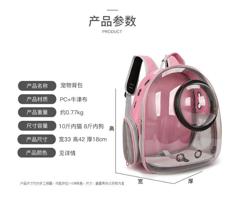 새로운 공간 캡슐 투명 고양이 가방 개 가방 대용량 출력 휴대용 휴대용 통기성 애완 동물 가방 고양이 배낭