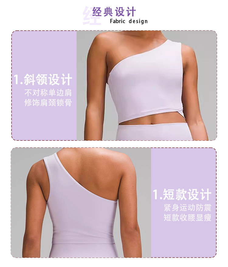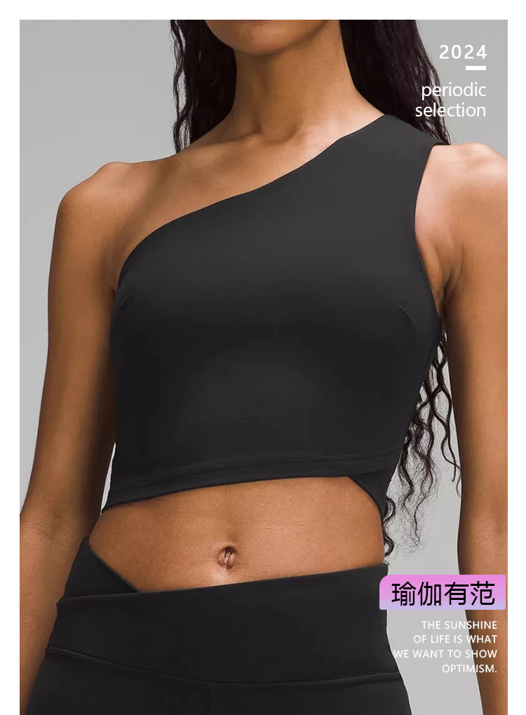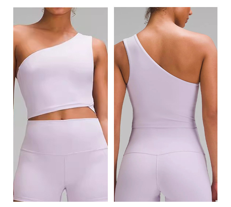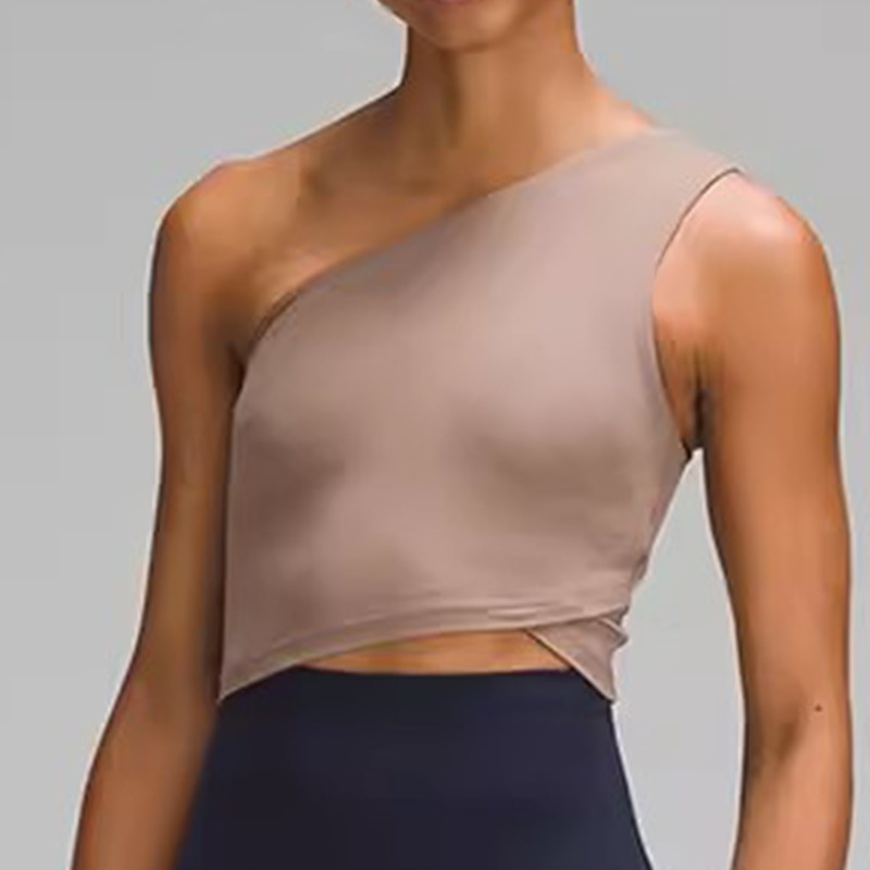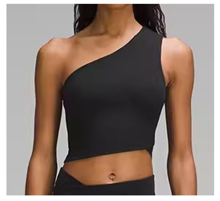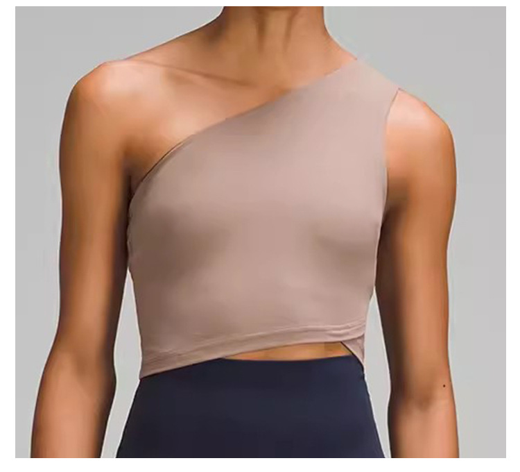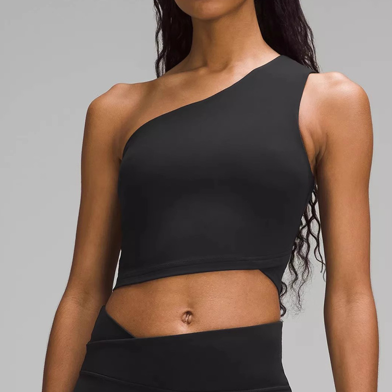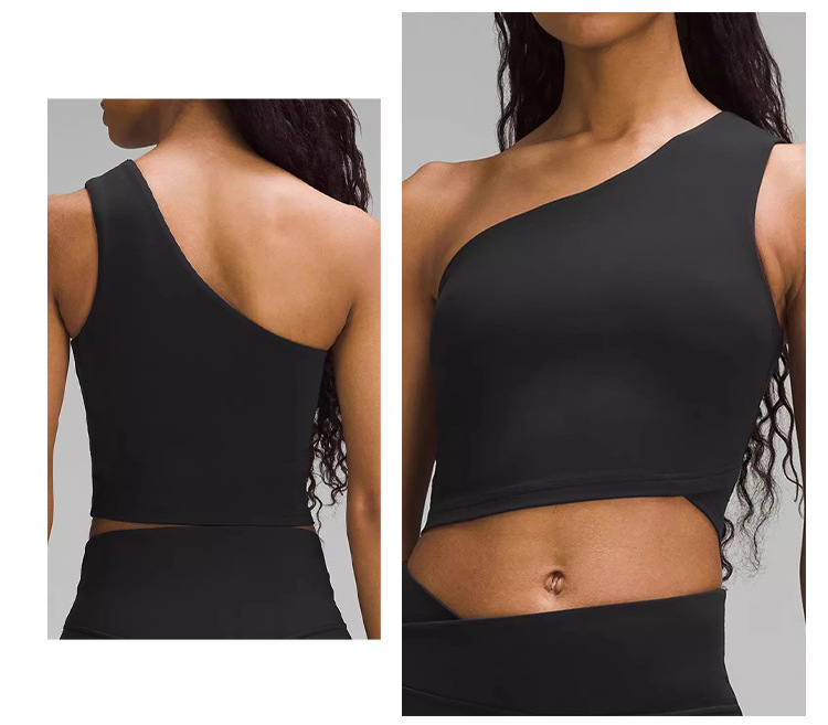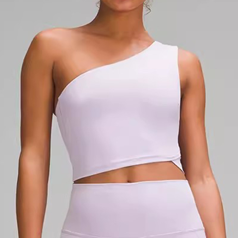 여성을위한 국경 간 유럽과 미국의 비대칭 원 숄더 스포츠 요가 조끼 가슴 패드가있는 야외 달리기 피트니스 새로운 제품