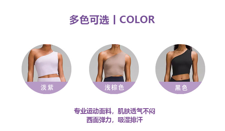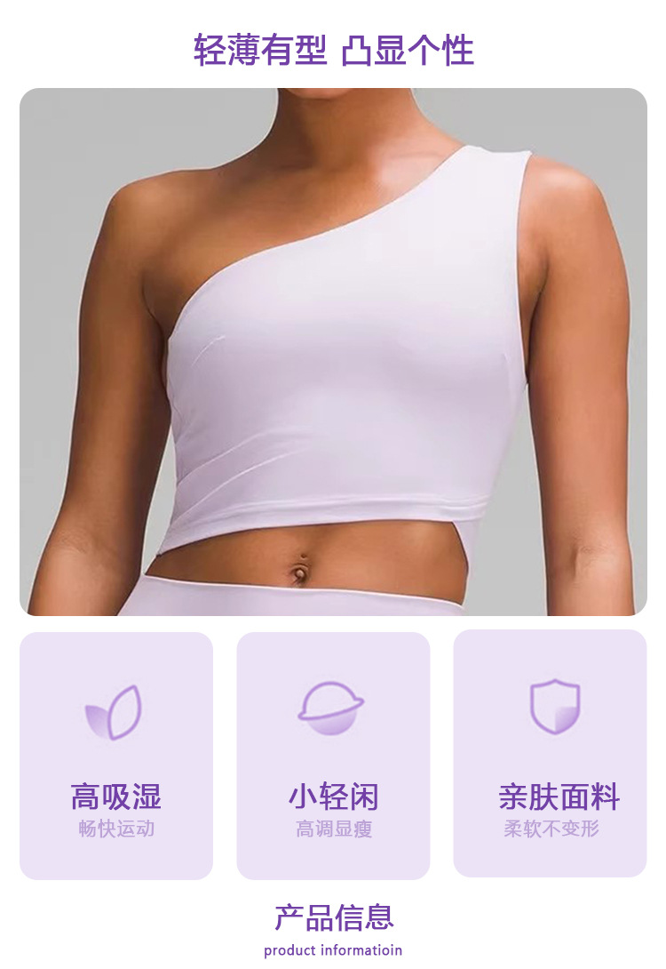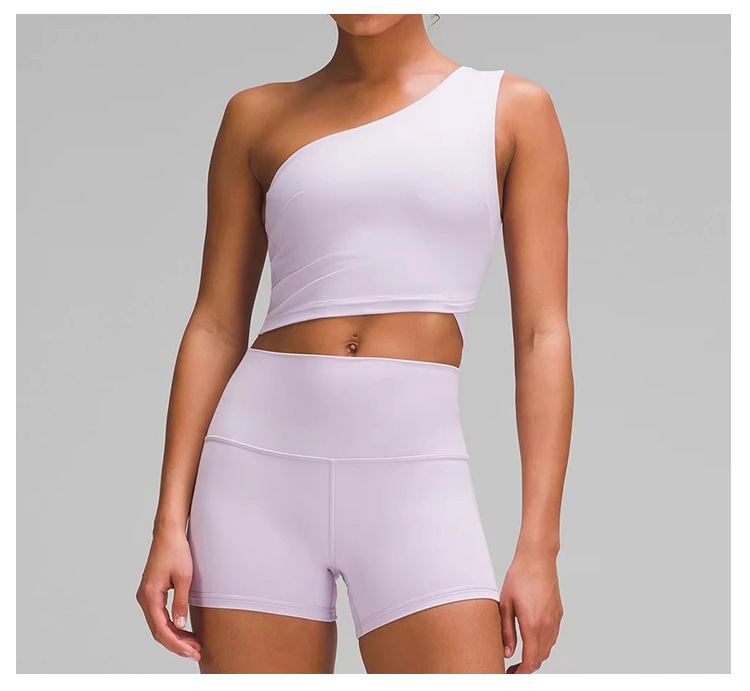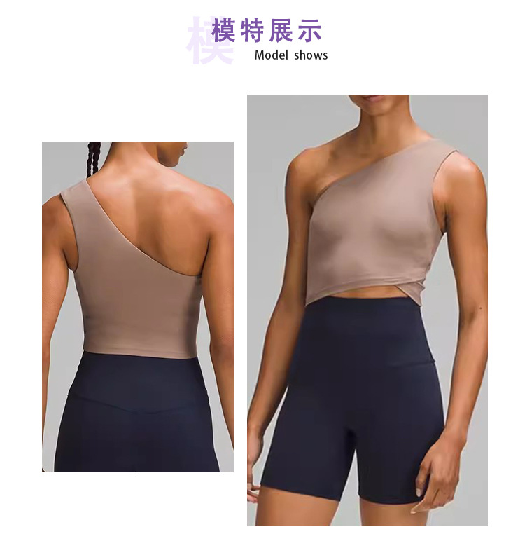 여성을위한 국경 간 유럽과 미국의 비대칭 원 숄더 스포츠 요가 조끼 가슴 패드가있는 야외 달리기 피트니스 새로운 제품스토어 가기