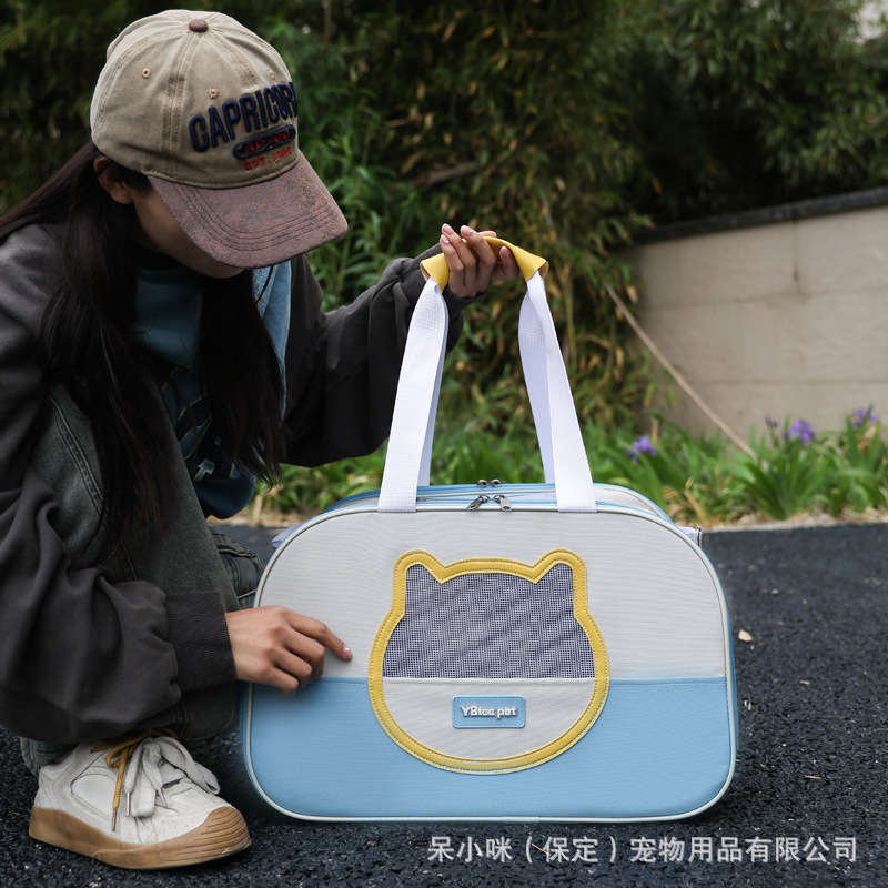 통기성 고양이 가방, 대용량 어깨 애완 동물 가방, 세련된 대비 색상, 경량 애완 동물 가방, 휴대용 편리한 고양이 배낭