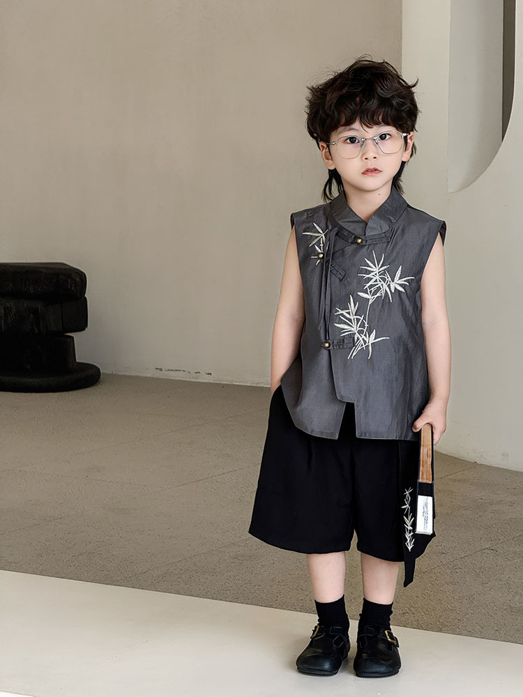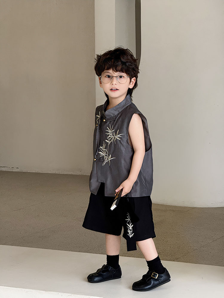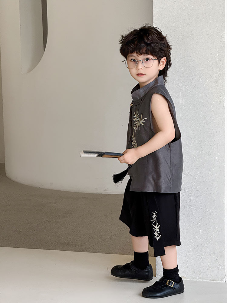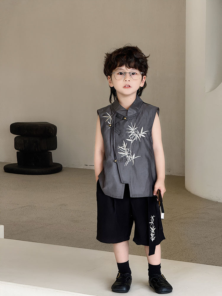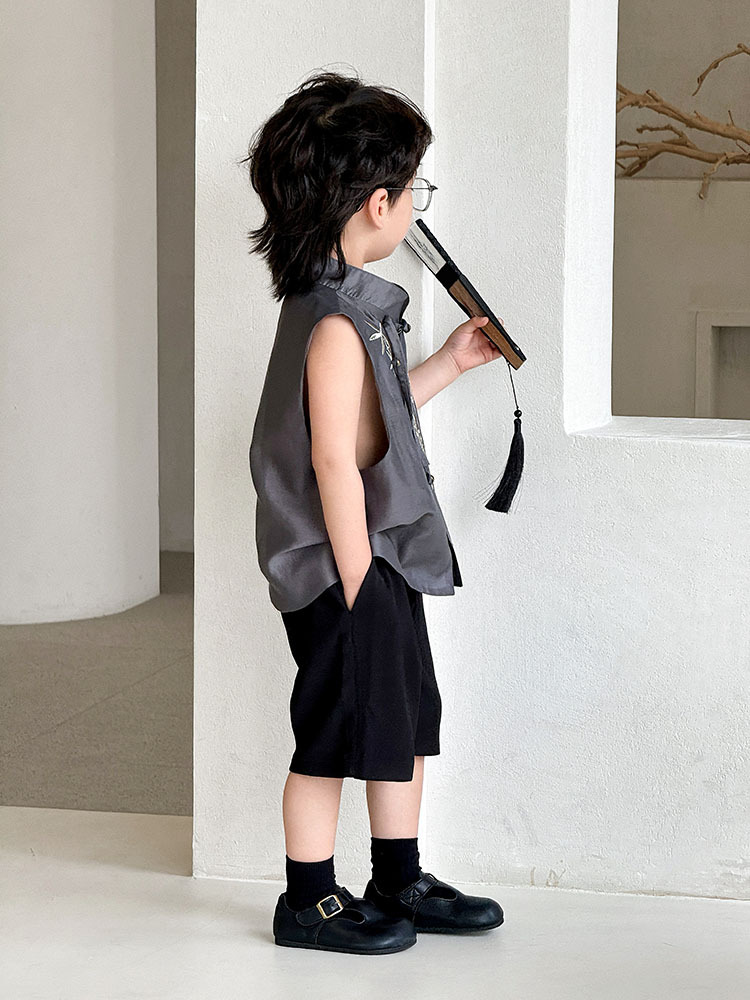 소년 바지 2024 여름 새로운 중국 어린이 검은 자수 리본 반바지 느슨한 얇은 아동복 도매스토어 가기