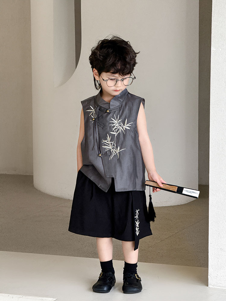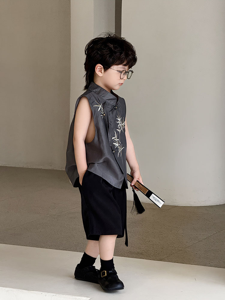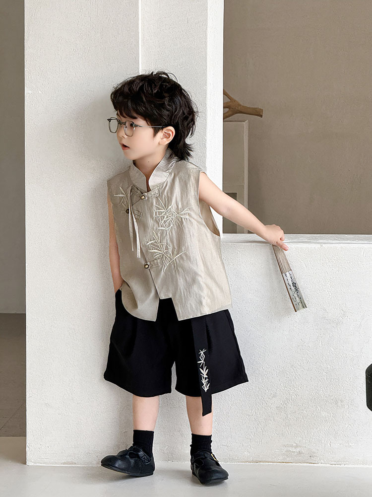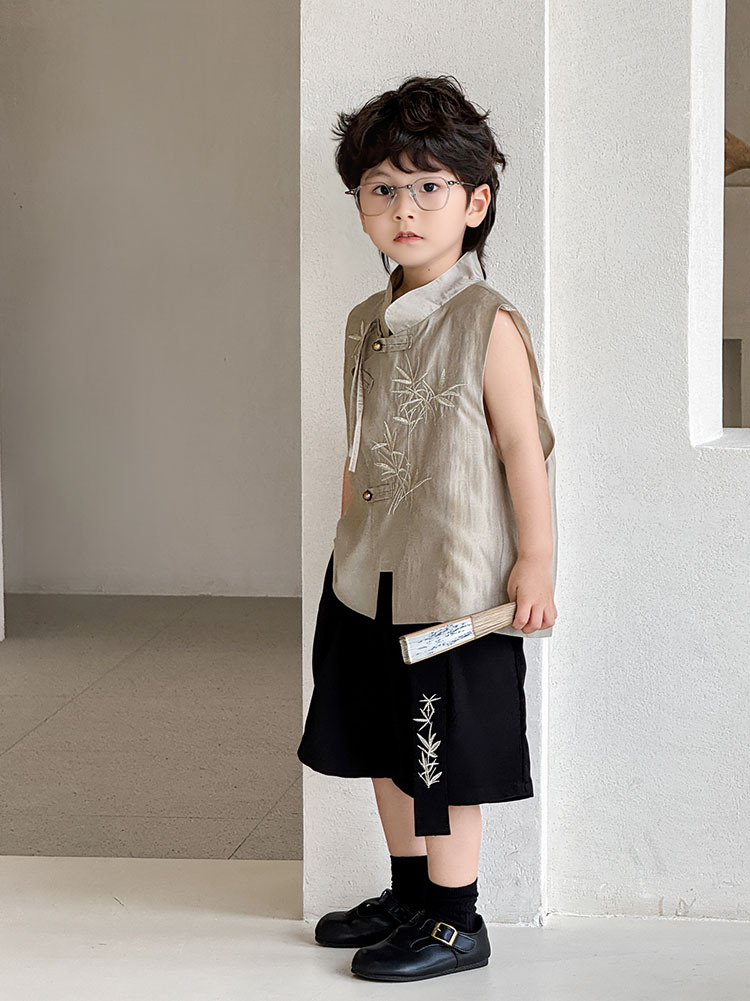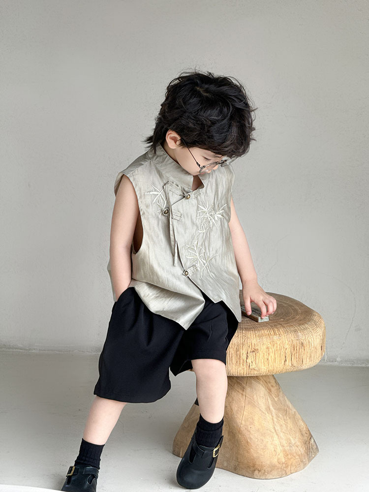 소년 바지 2024 여름 새로운 중국 어린이 검은 자수 리본 반바지 느슨한 얇은 아동복 도매스토어 가기