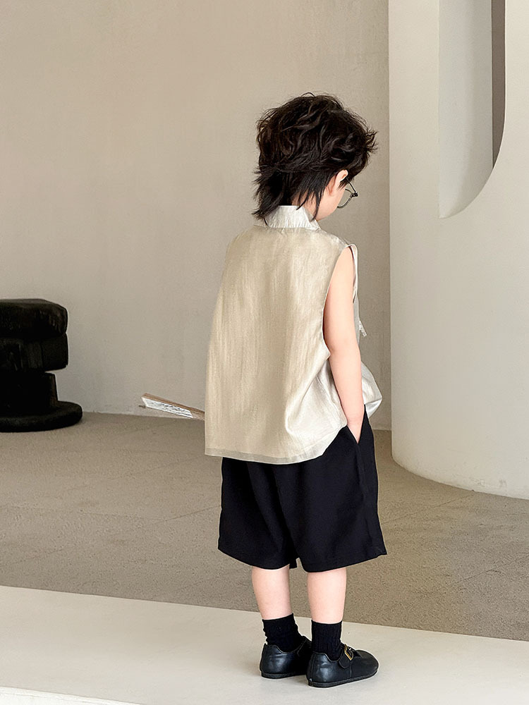 소년 바지 2024 여름 새로운 중국 어린이 검은 자수 리본 반바지 느슨한 얇은 아동복 도매