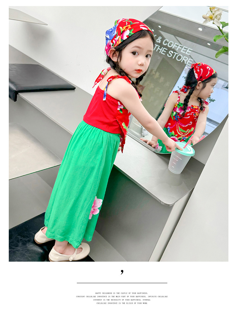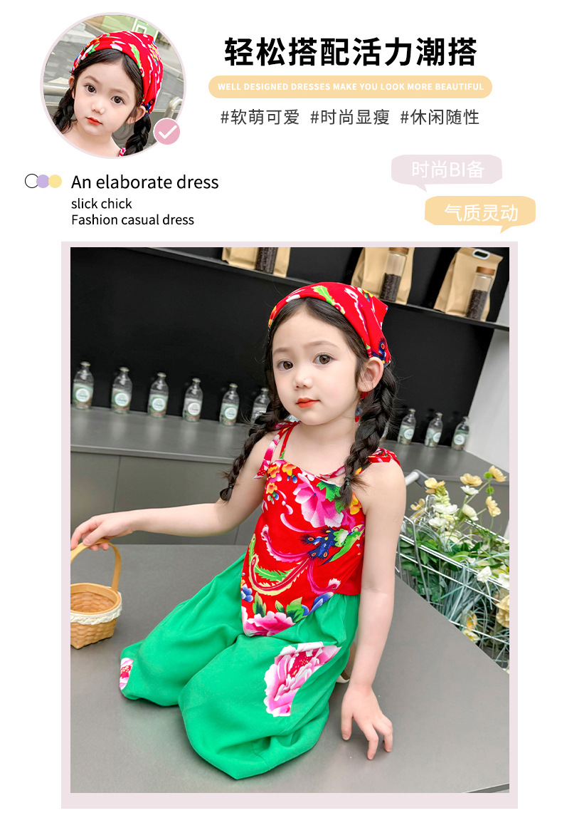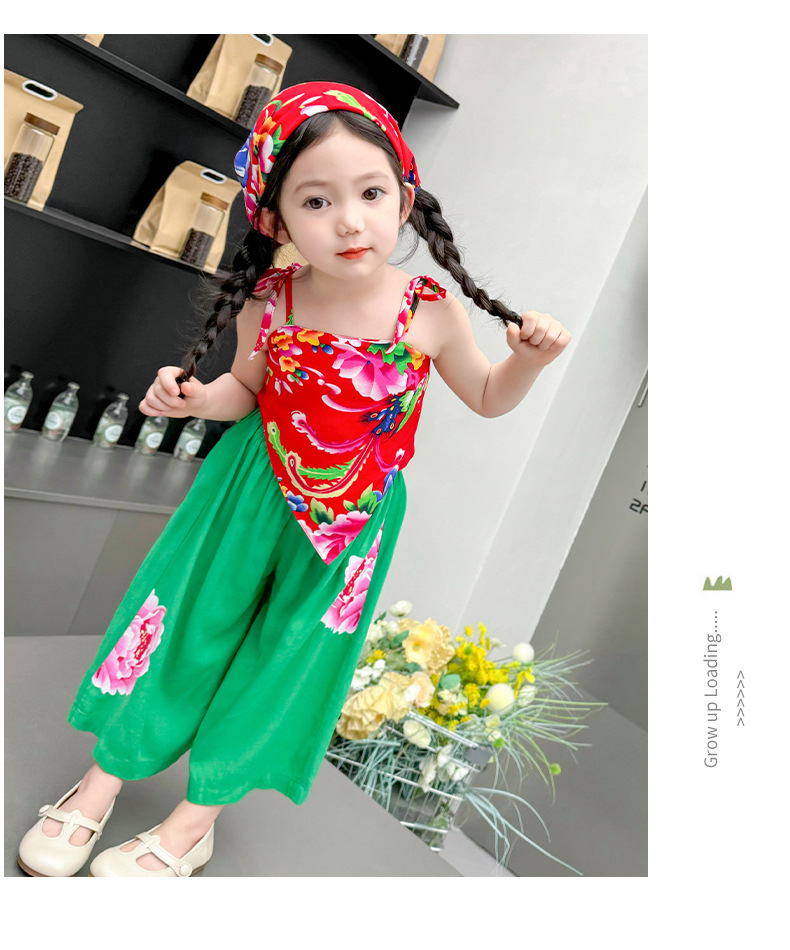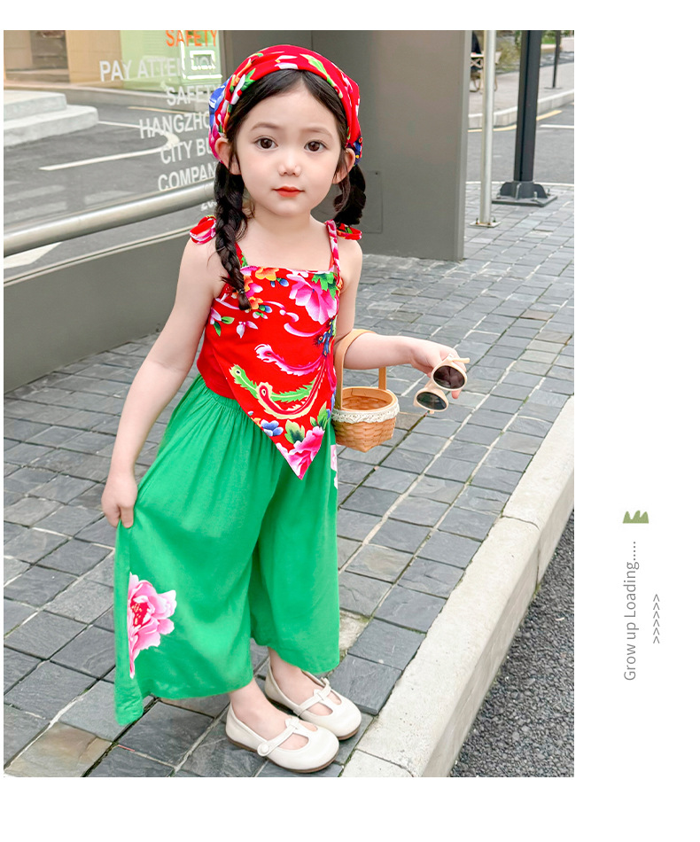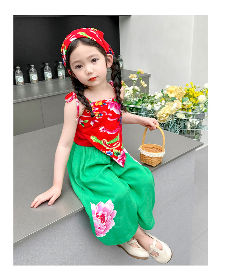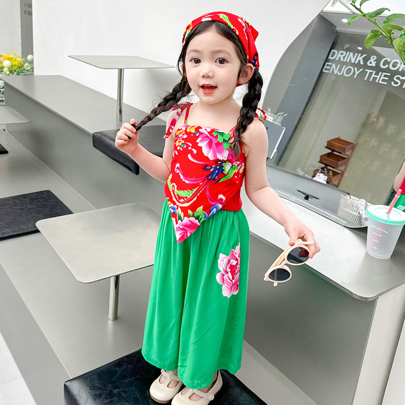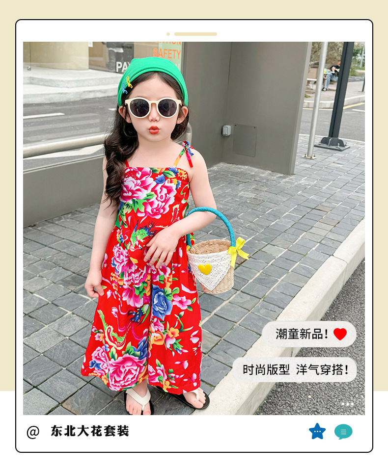 여자 여름 민소매 세트 2024 새로운 유행 어린이 면 실크 동북 큰 꽃 조끼 아기 인터넷 인기 패션스토어 가기