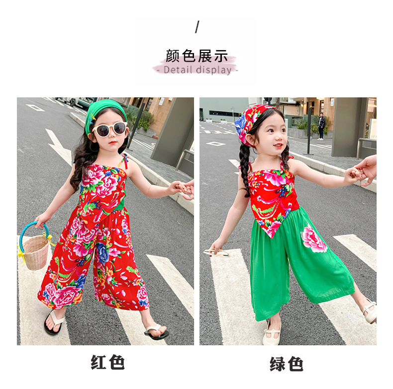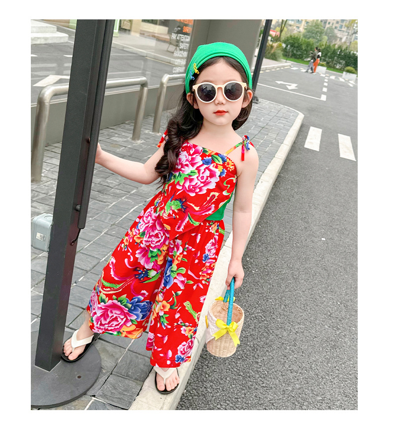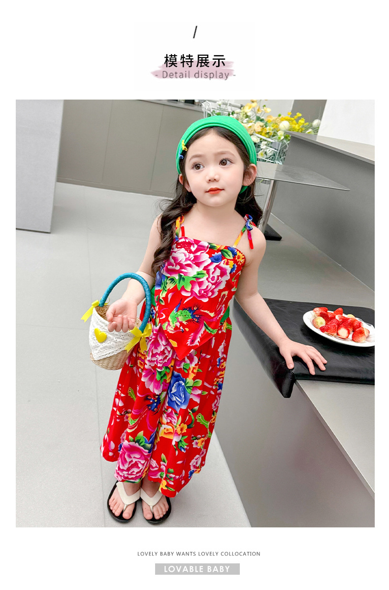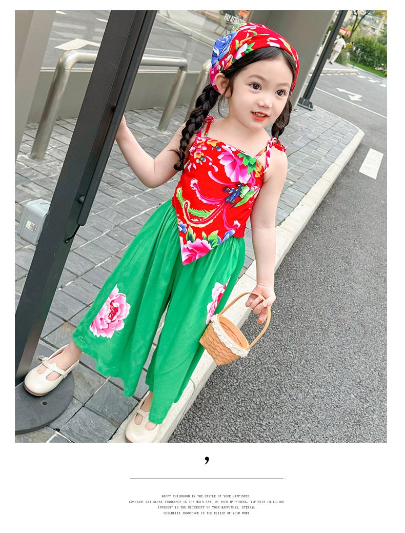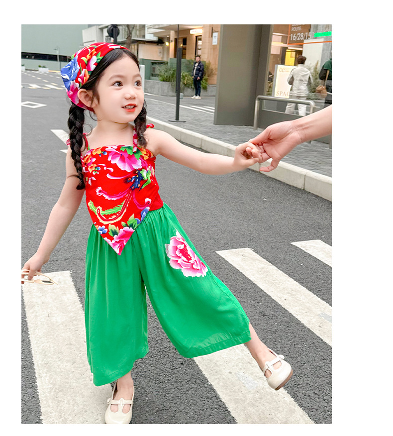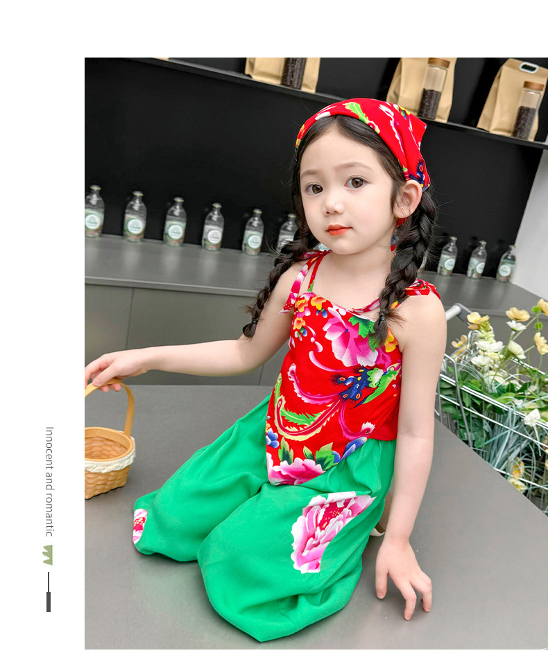 여자 여름 민소매 세트 2024 새로운 유행 어린이 면 실크 동북 큰 꽃 조끼 아기 인터넷 인기 패션스토어 가기