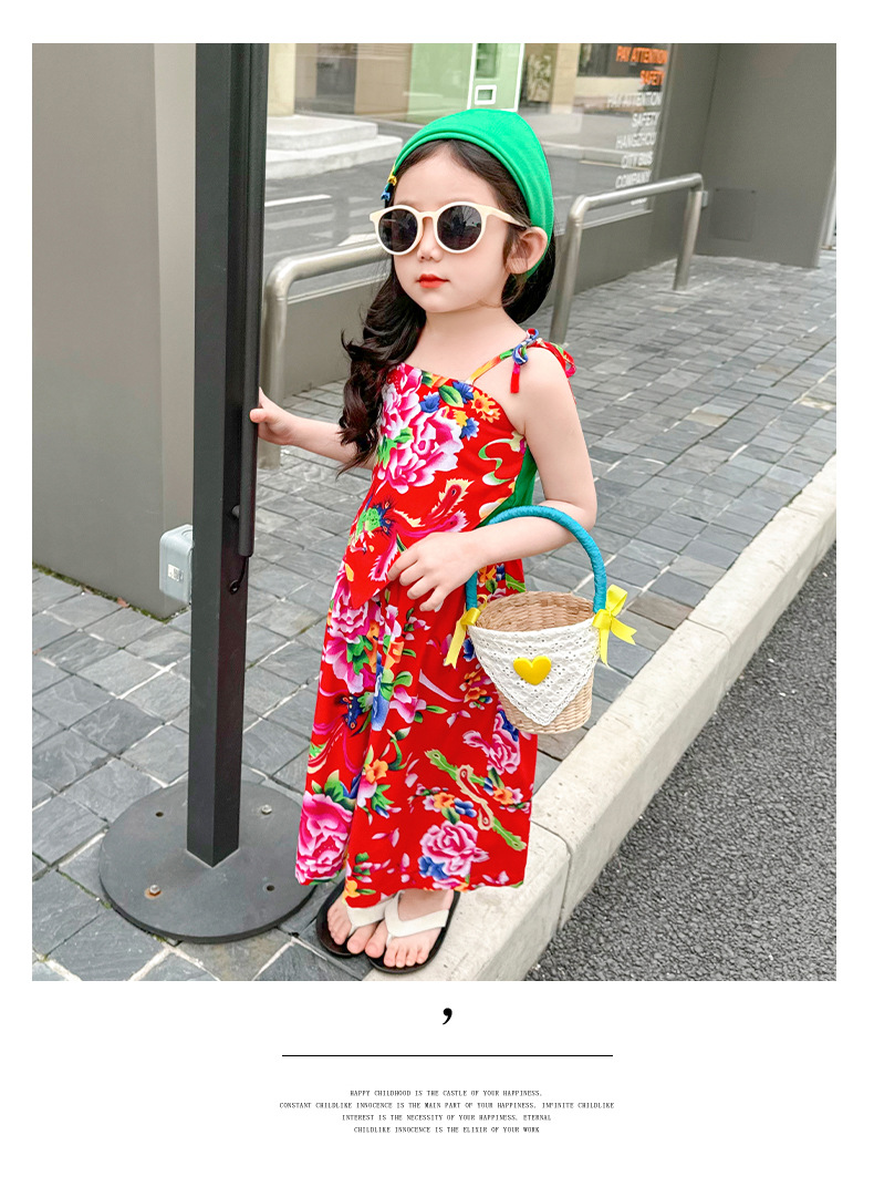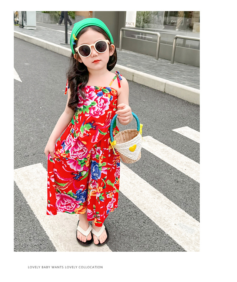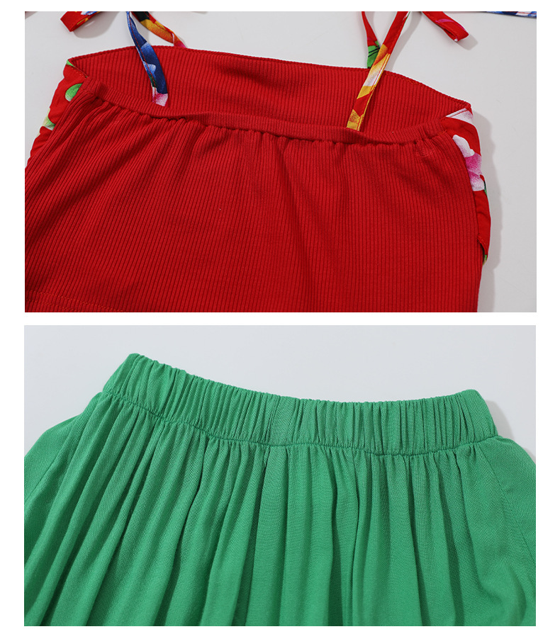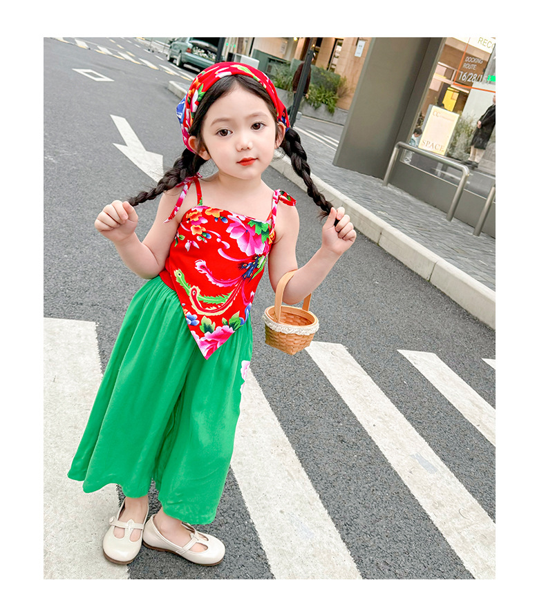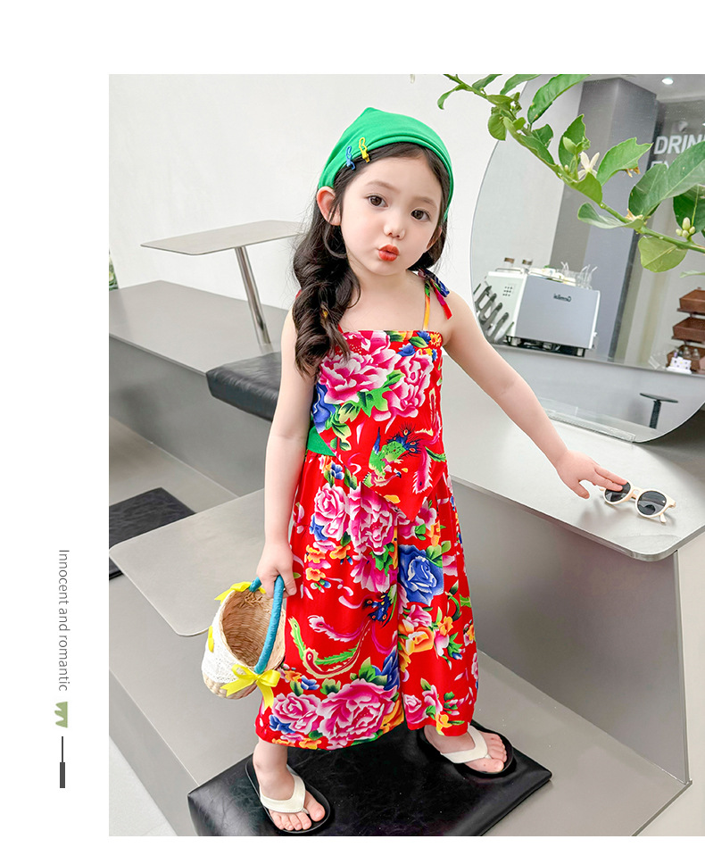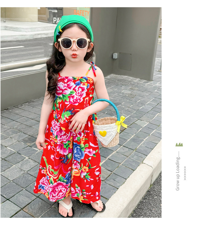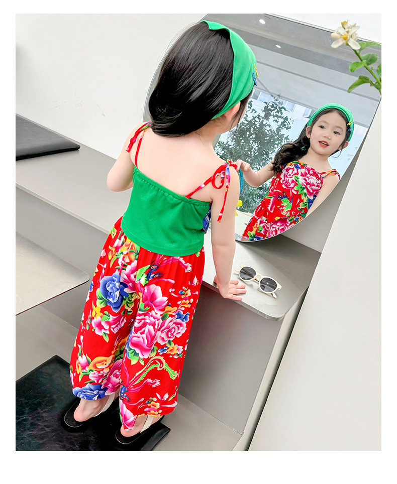 여자 여름 민소매 세트 2024 새로운 유행 어린이 면 실크 동북 큰 꽃 조끼 아기 인터넷 인기 패션스토어 가기