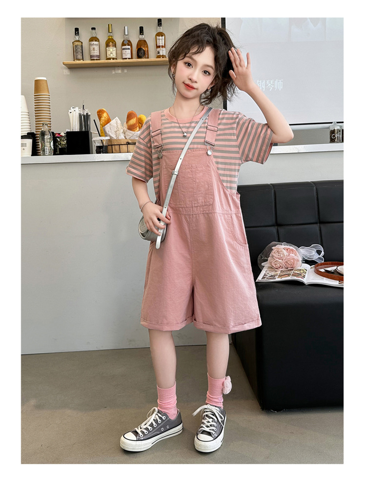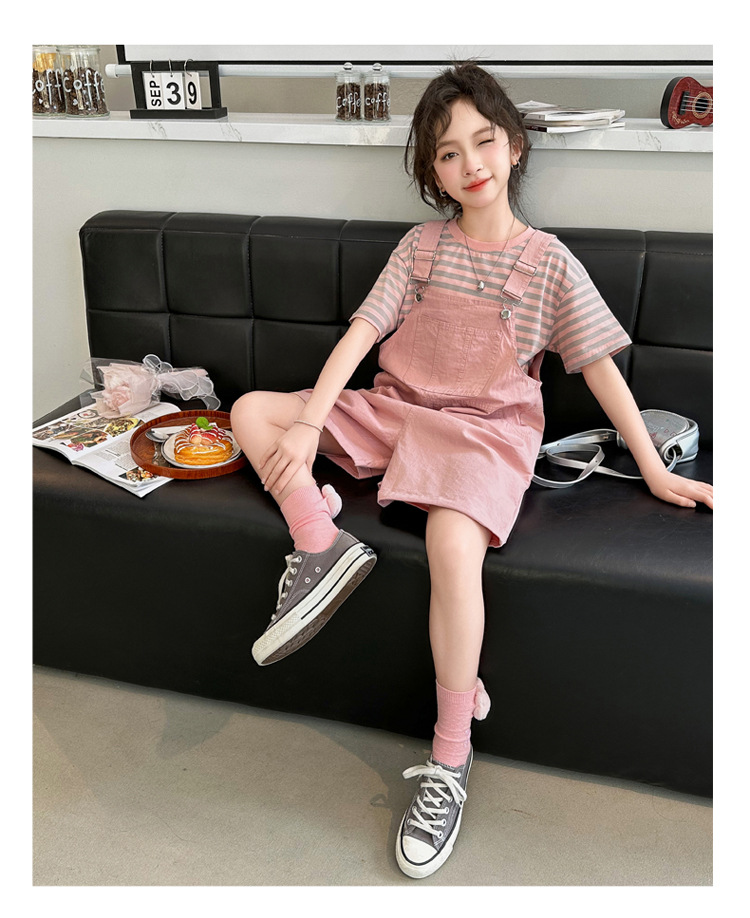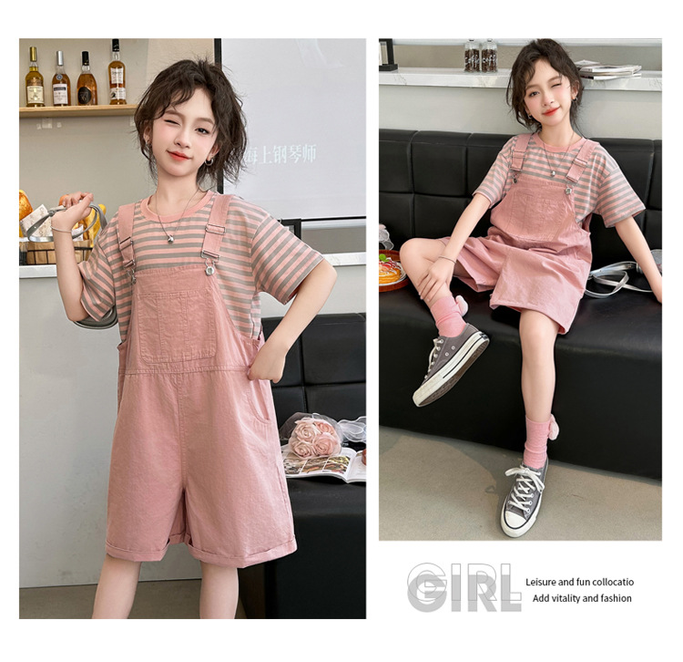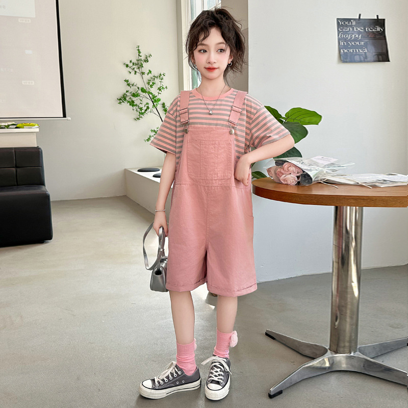 소녀 세트 여름 2024 새로운 어린이 여름 트렌디 쿨웨어 소녀 큰 어린이 여름 투피스 세트