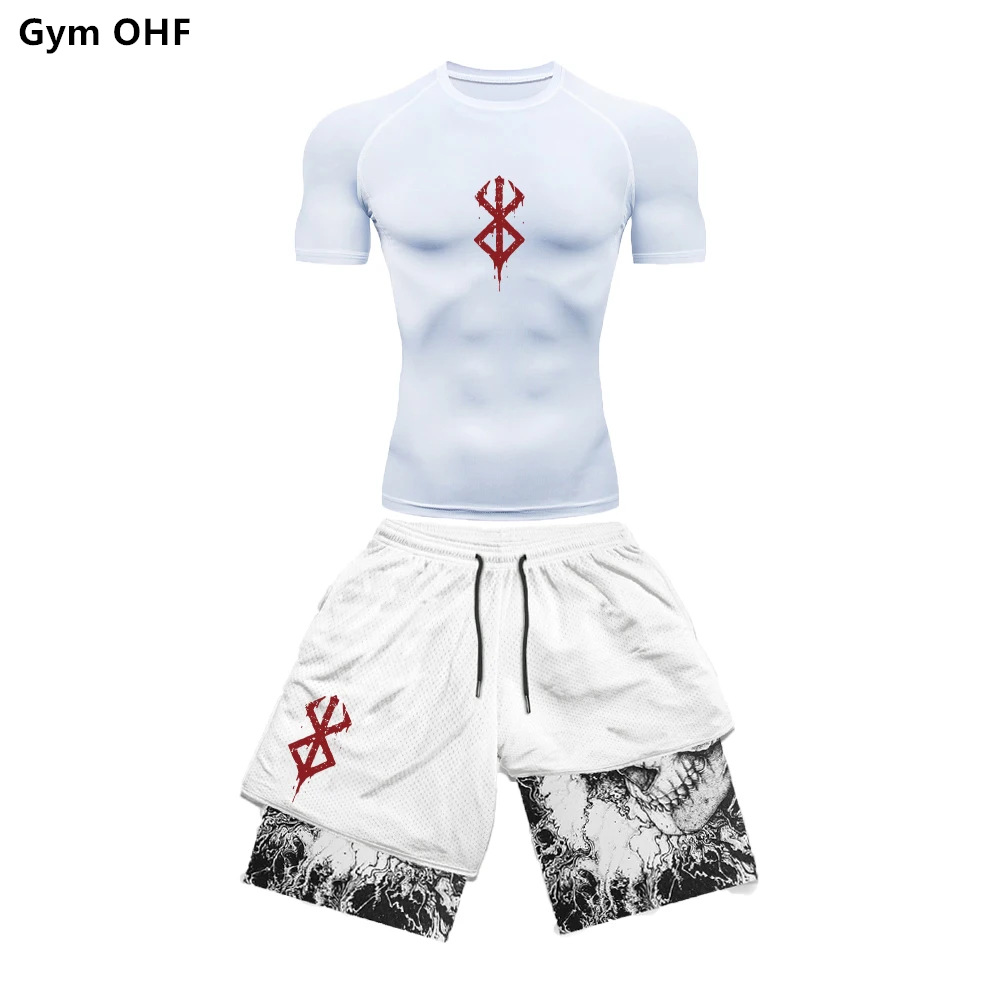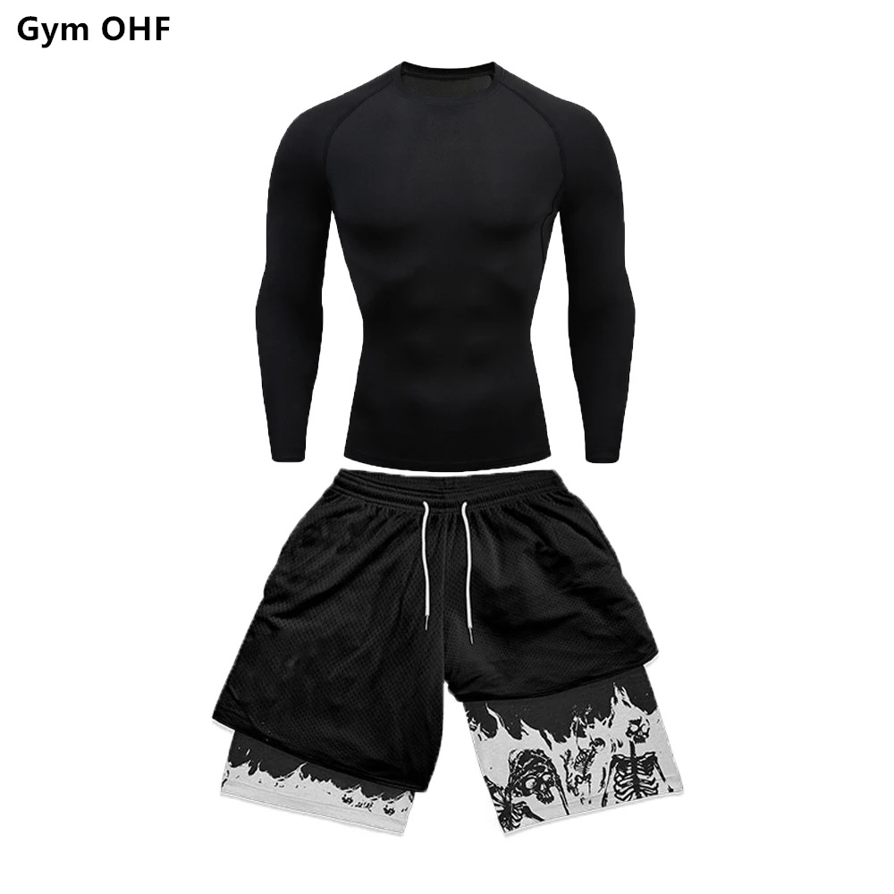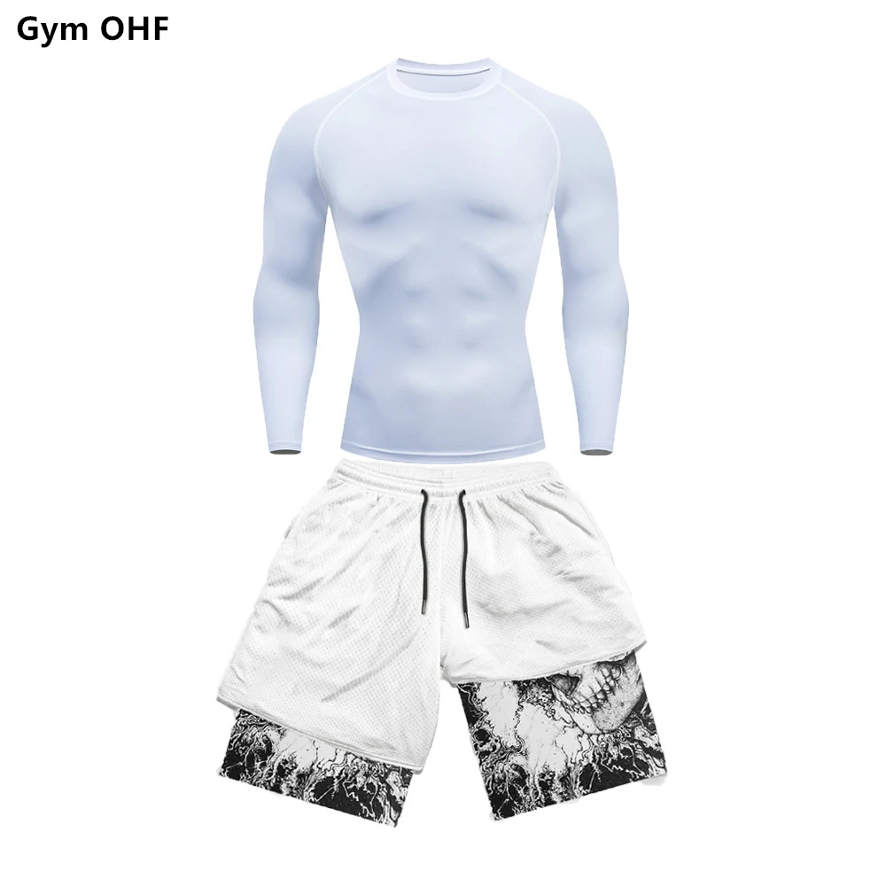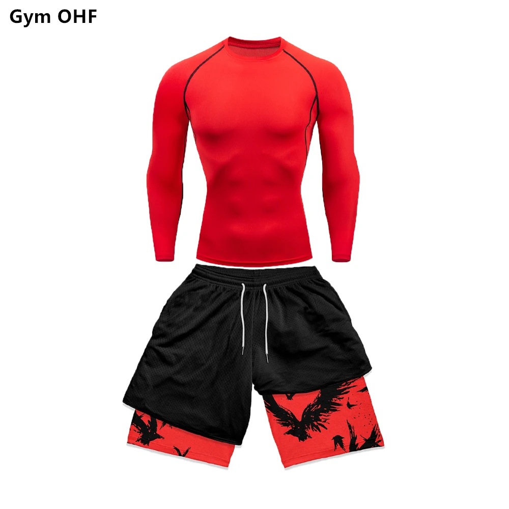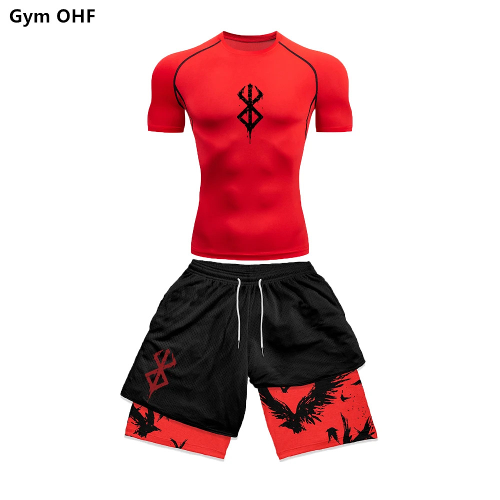 AliExpress 국경 남성 티셔츠 3D 디지털 인쇄 더블 레이어 반바지 2 피스 빠른 건조 러닝 트레이닝 세트